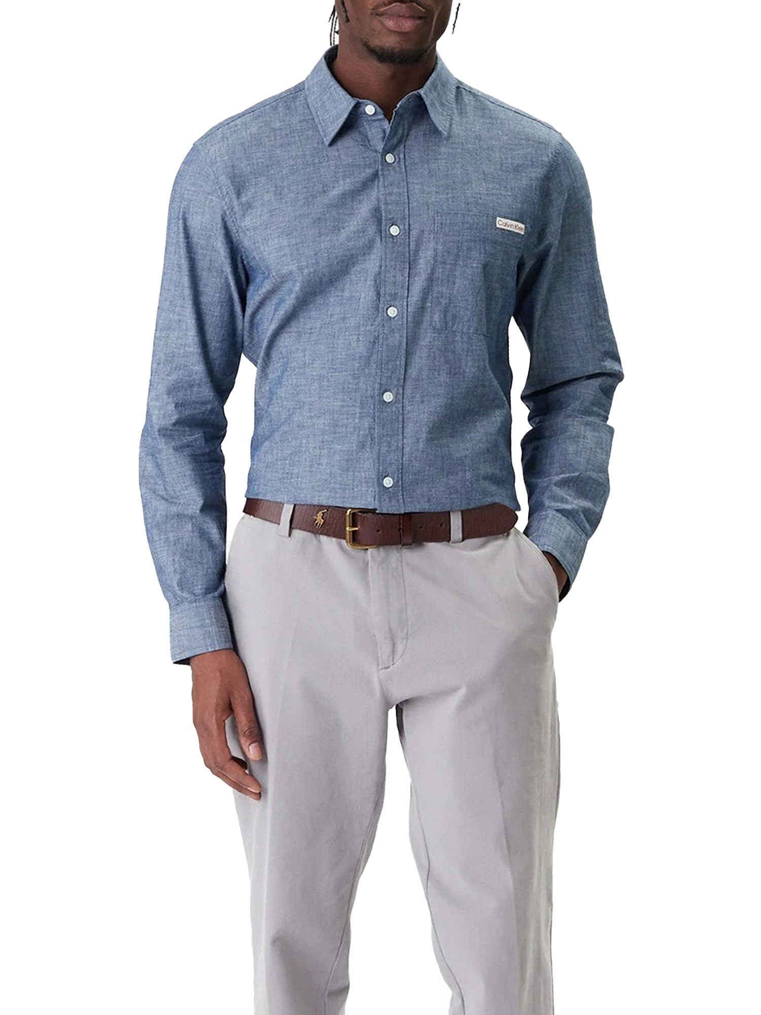 Camicia Calkin Klein uomo manica lunga classic Chambray blu chiaro