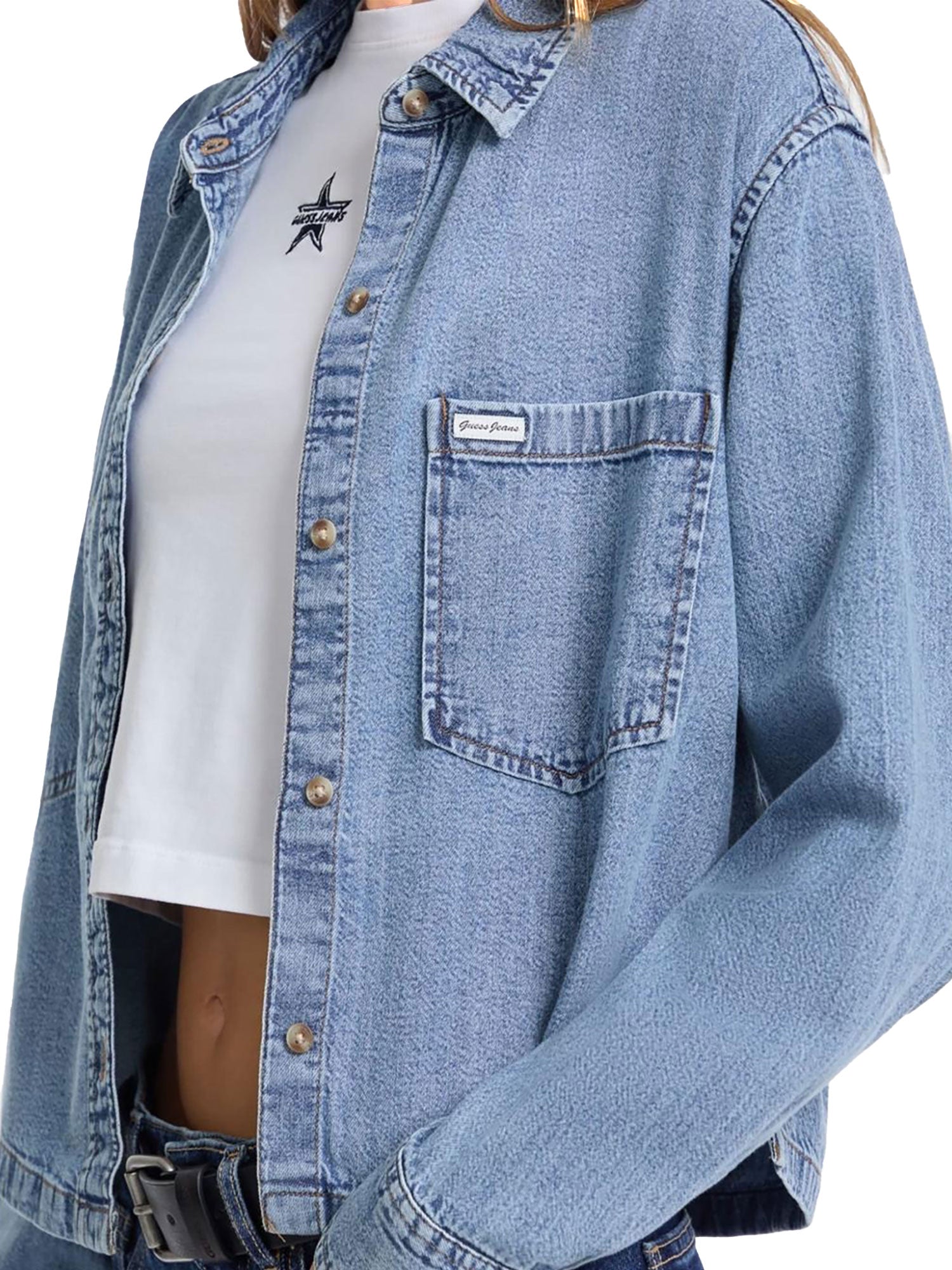 Camicia Guess jeans manica lunga gj cropped denim chiaro