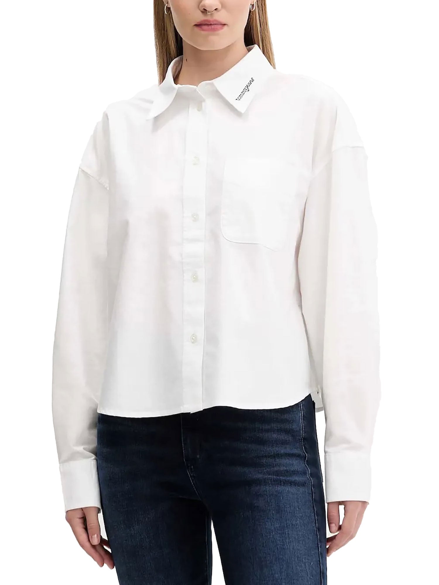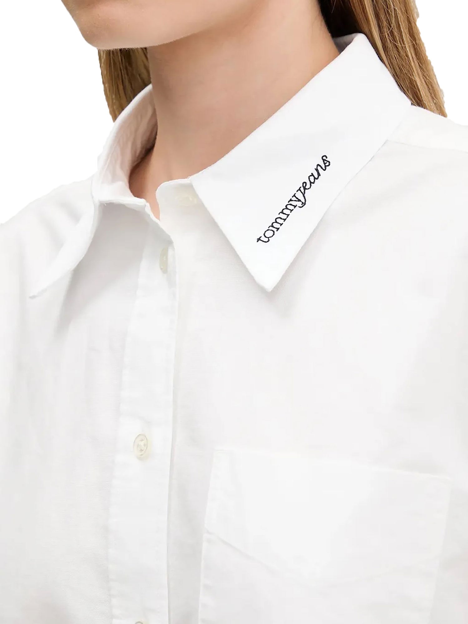 Camicia Tommy Jeans donna ovs crop Oxford logo ricamato sul colletto bianco