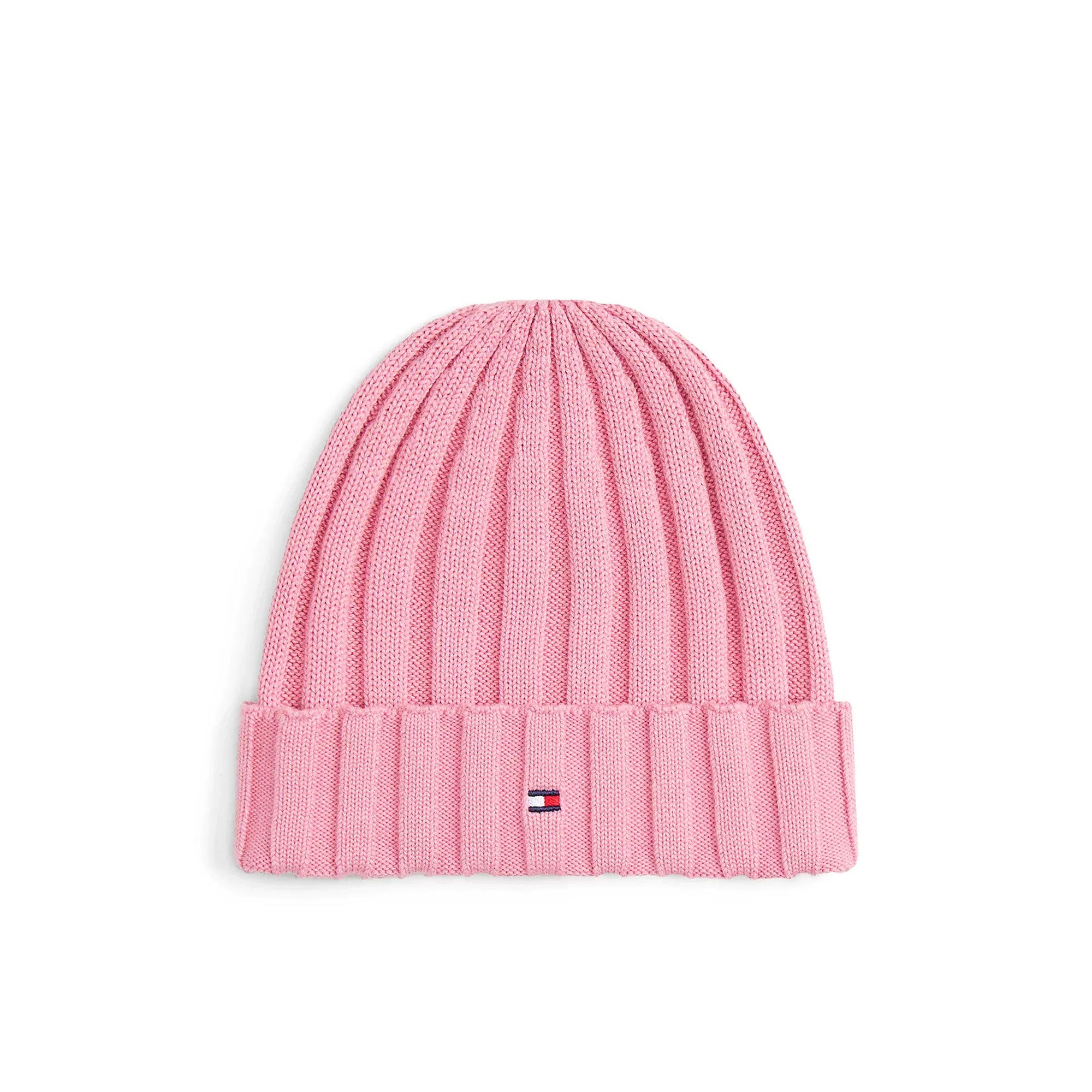 Cappello beanie Tommy Hilfiger bambina a coste larghe small flag rosa