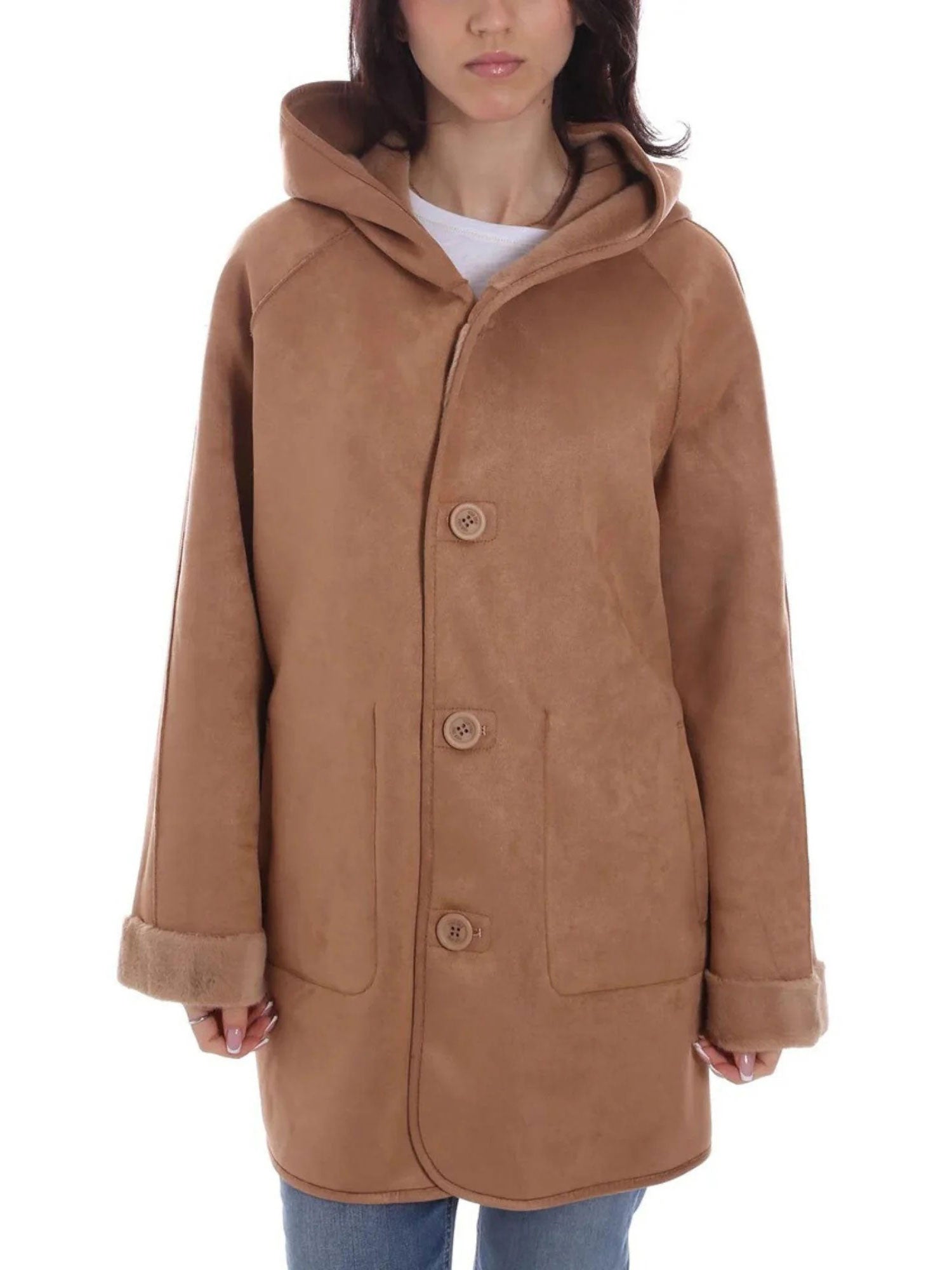 Cappotto Yes Zee donna reversibile teddy con cappuccio beige