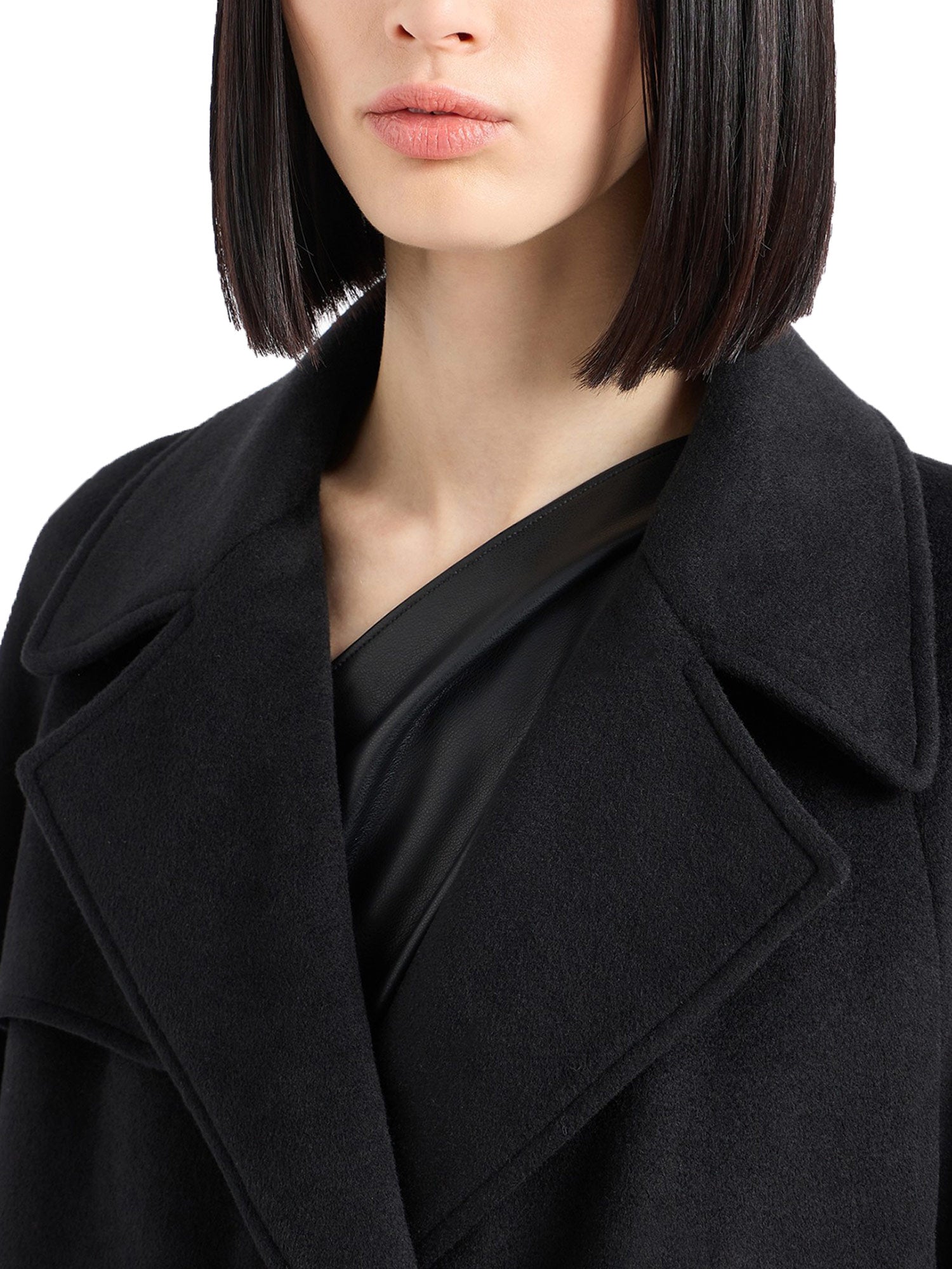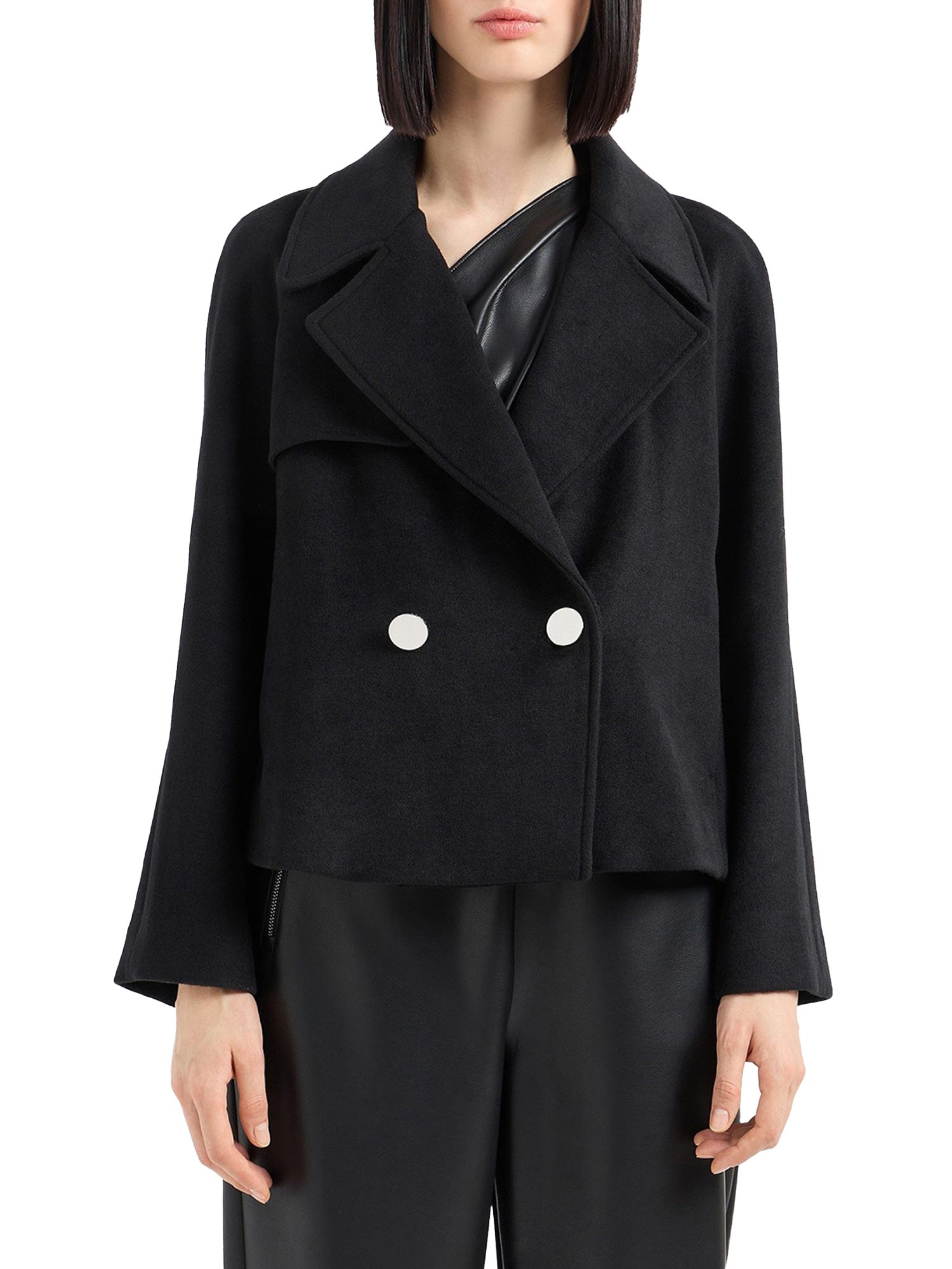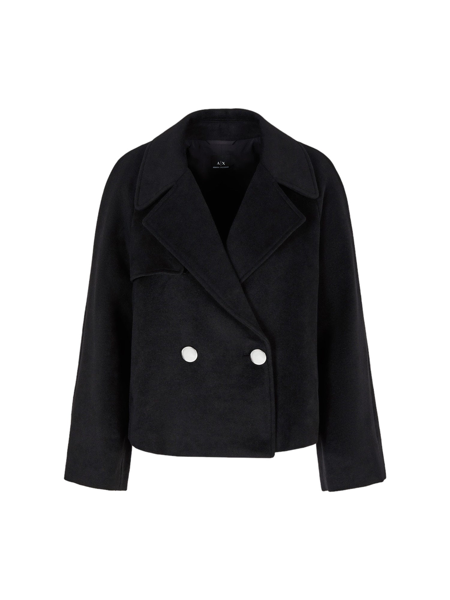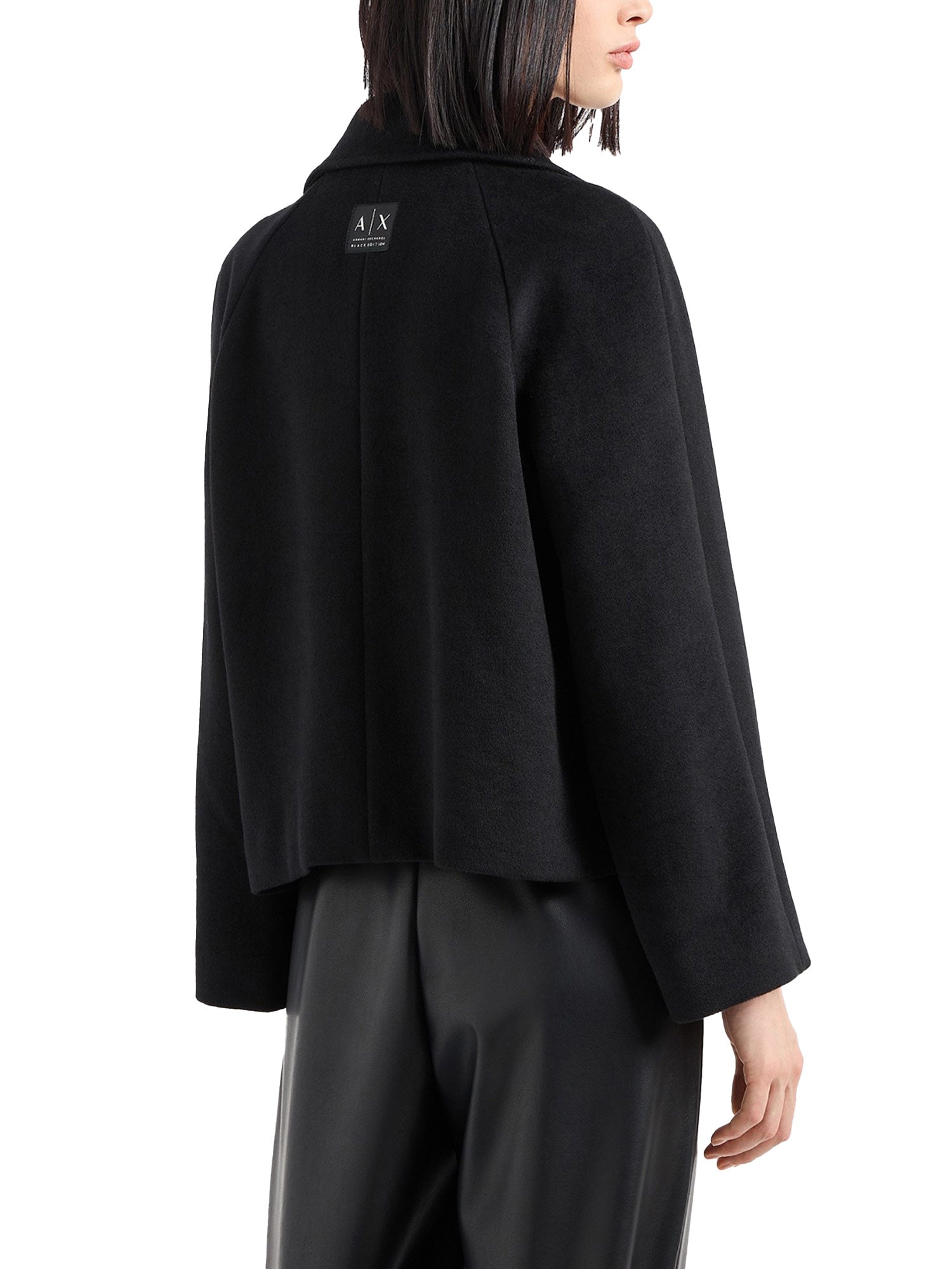 Cappotto Armani Exchange , modello corto, dal taglio morbido con doppia abbottonatura e bottoni a contrasto bianchi per un look minimal e sofisticato, dallo stile casual chic. Combinalo con jeans slim fit e stivaletti per un outfit rilassato ma curato, ideale per passeggiate in città o brunch con amici.