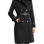 Cappotto doppiopetto con pelliccia e cintura logata nero
