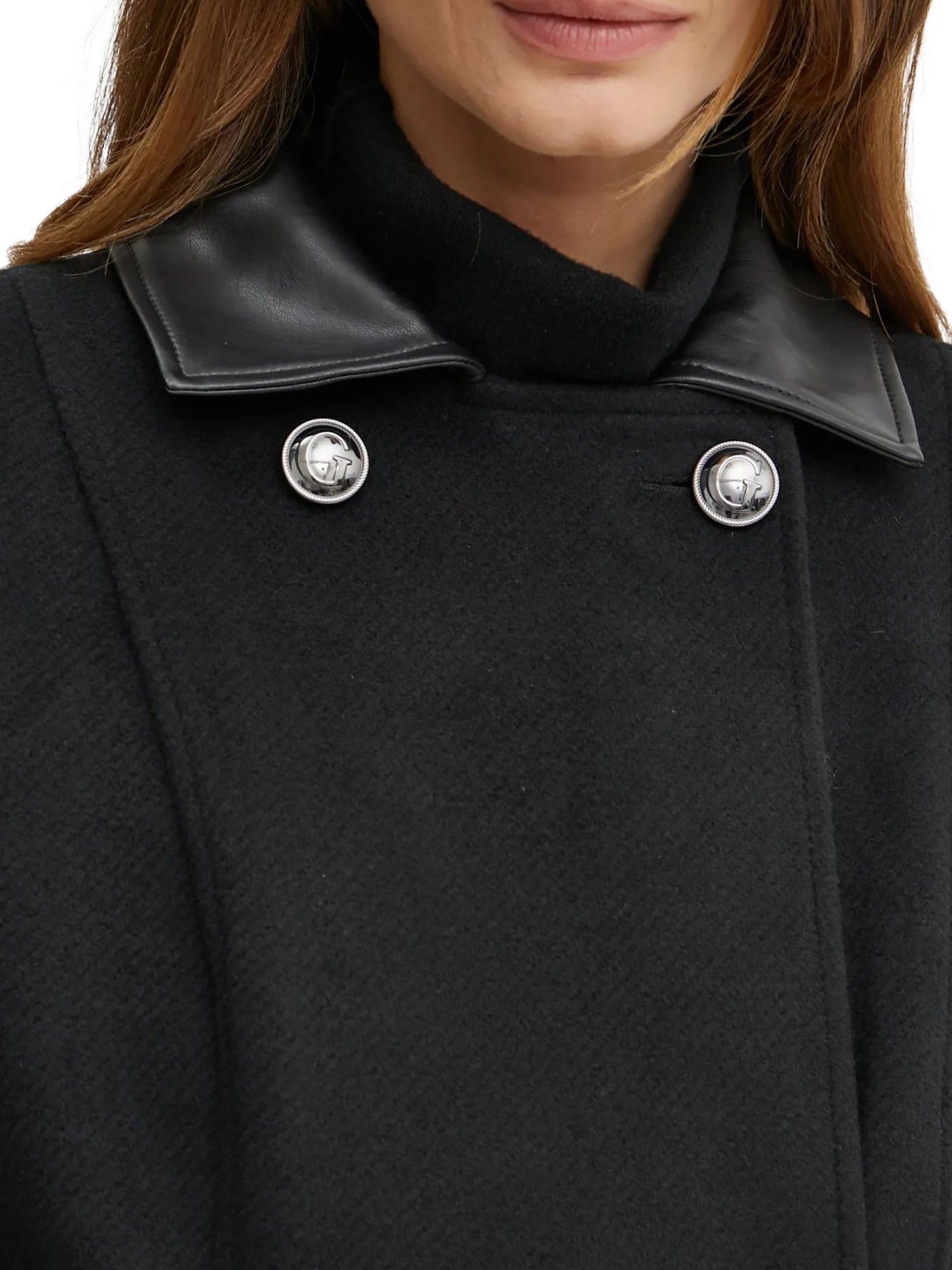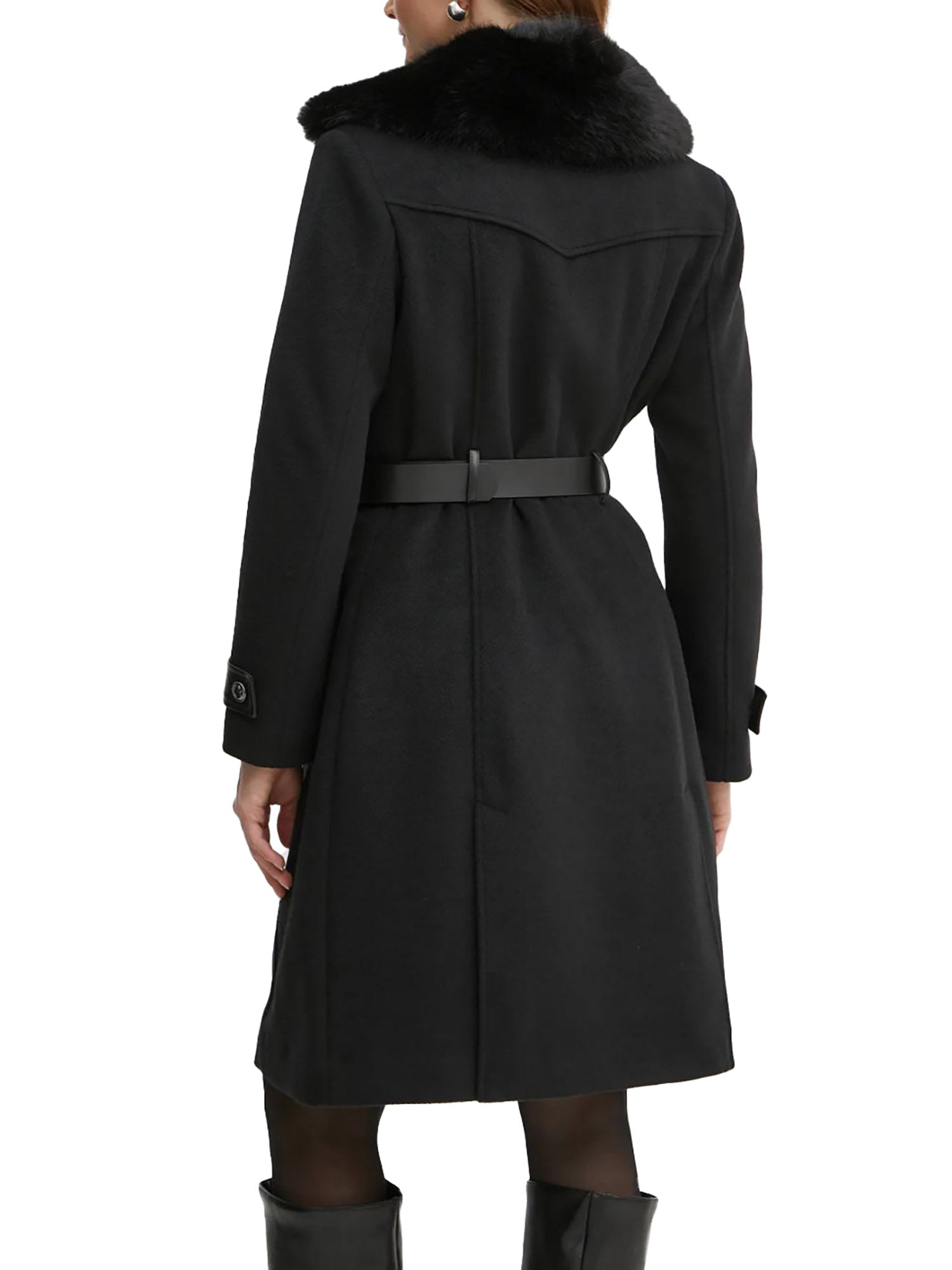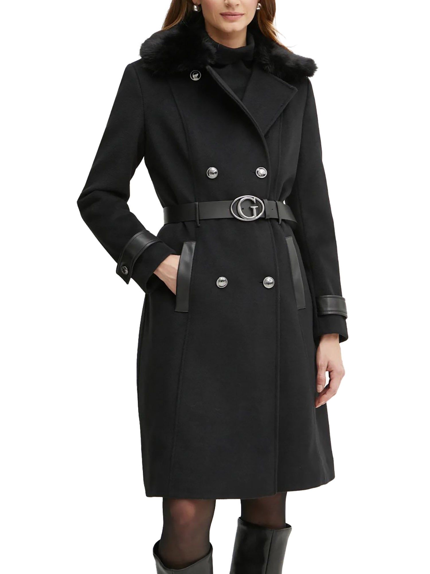 Cappotto Guess doppiopetto nero con collo in ecopelle e semipelliccia estraibile