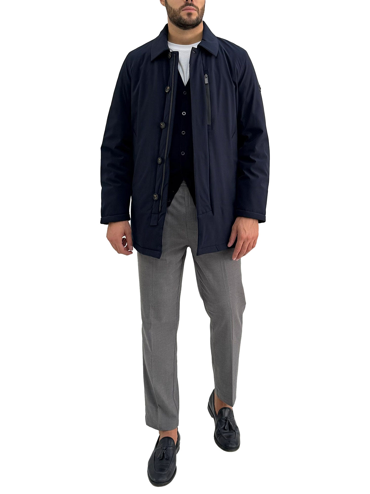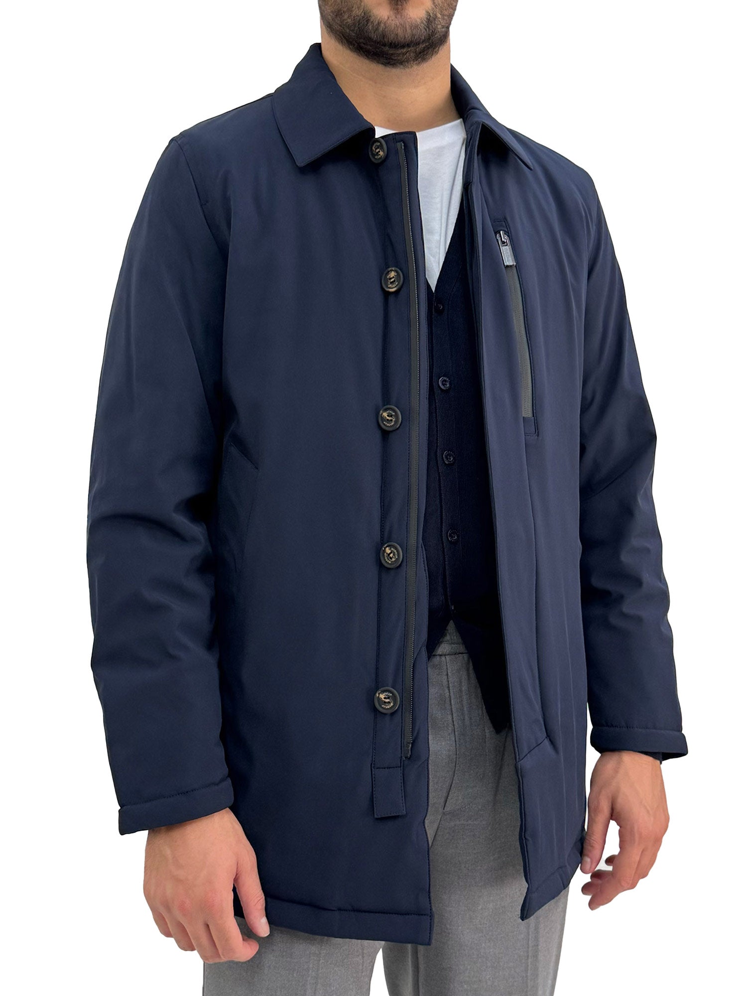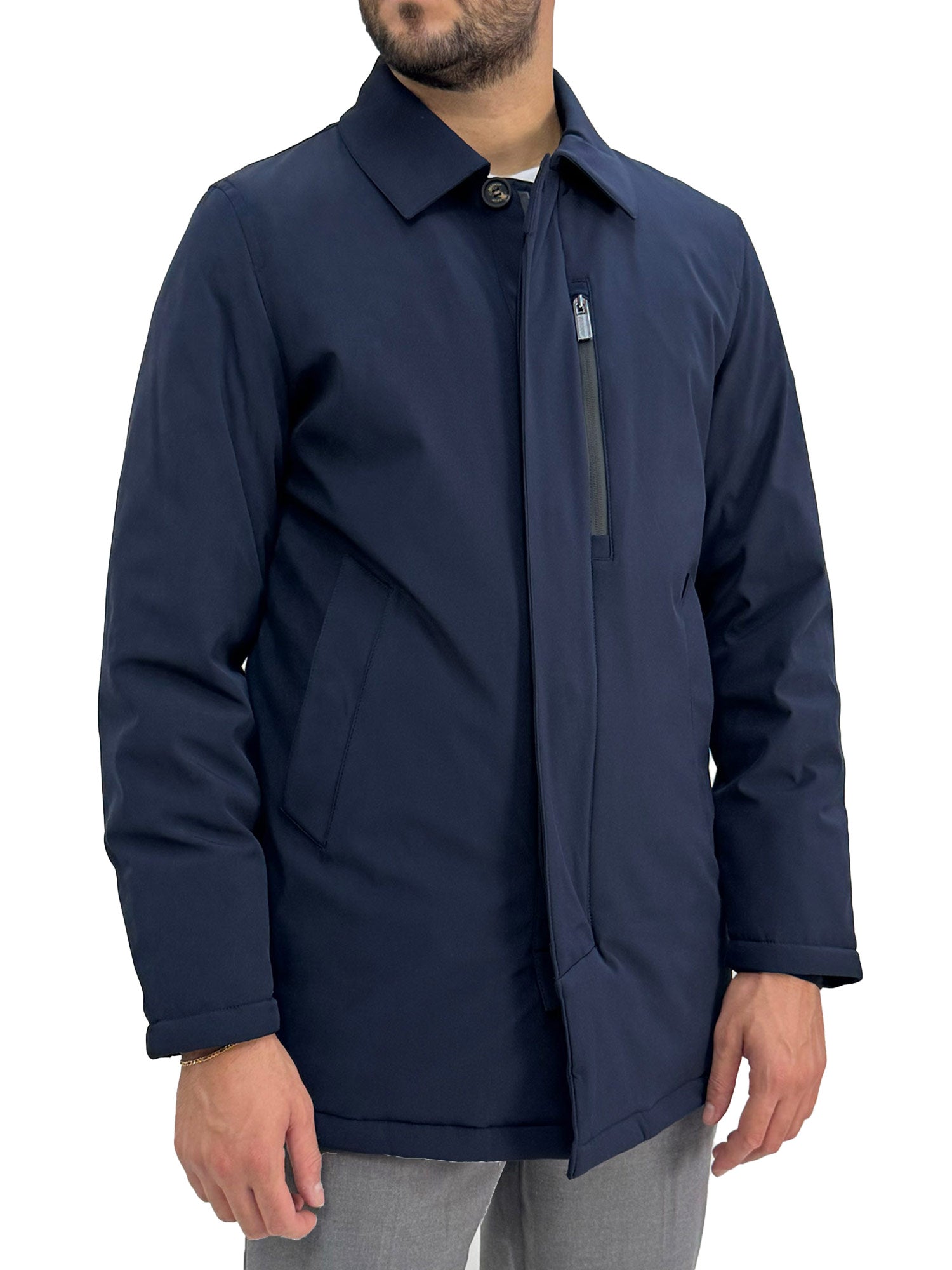 Cappotto trench in softshell blu