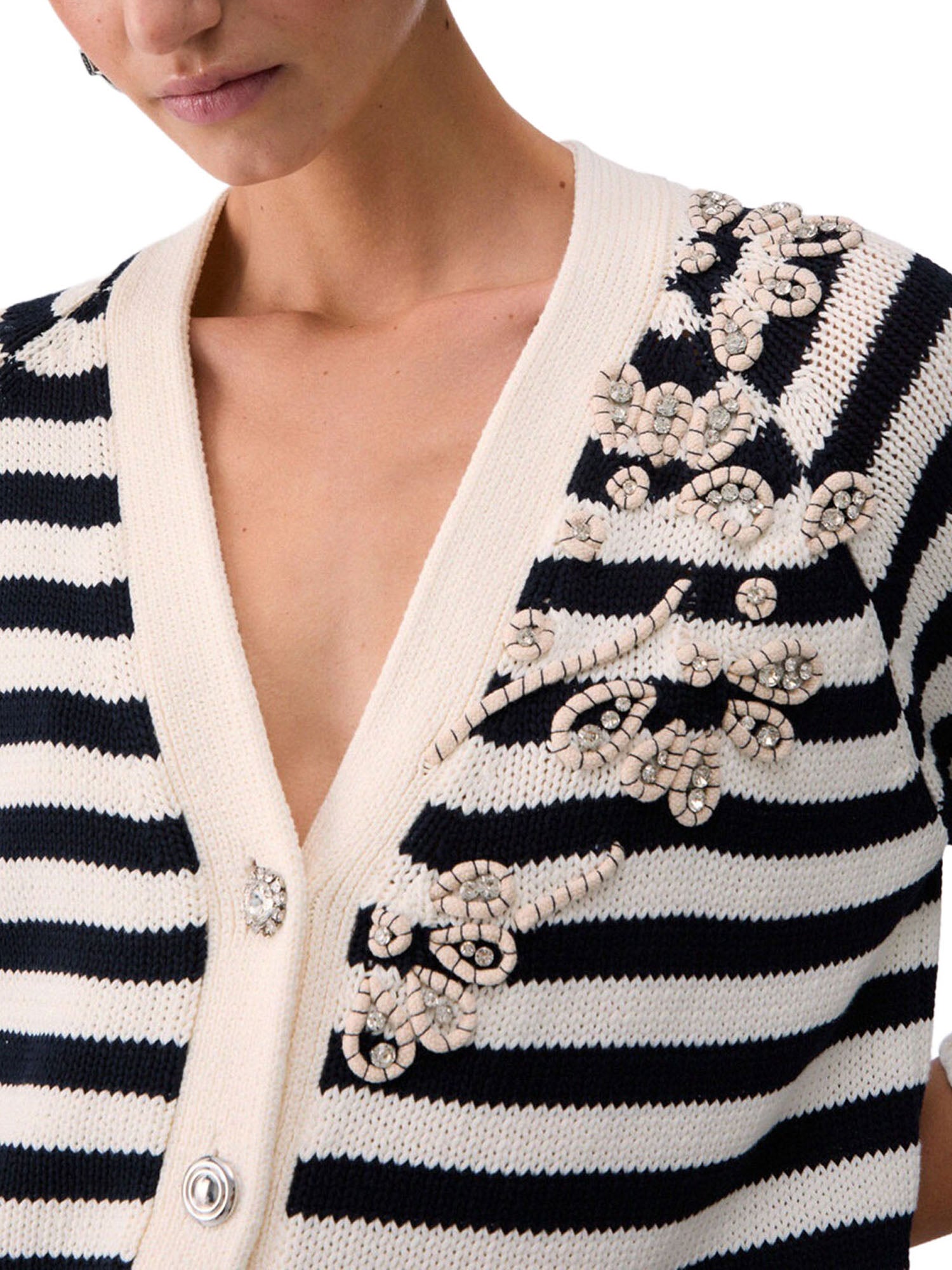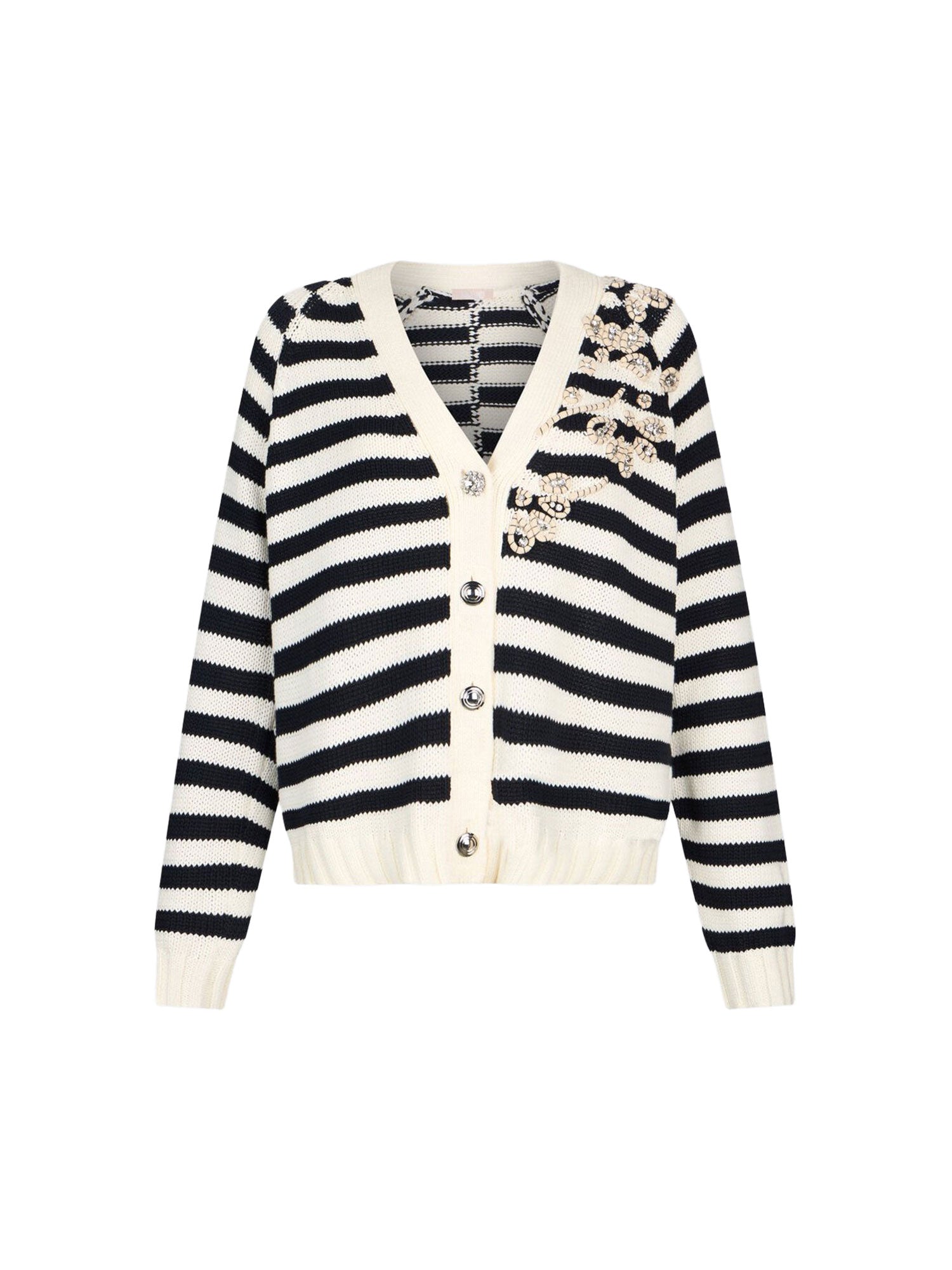 Cardigan Liu Jo donna dallo stile elegante e contemporaneo, impreziosito da dettagli ricamati che donano un tocco ricercato. Perfetto per completare look casual-chic con personalità.