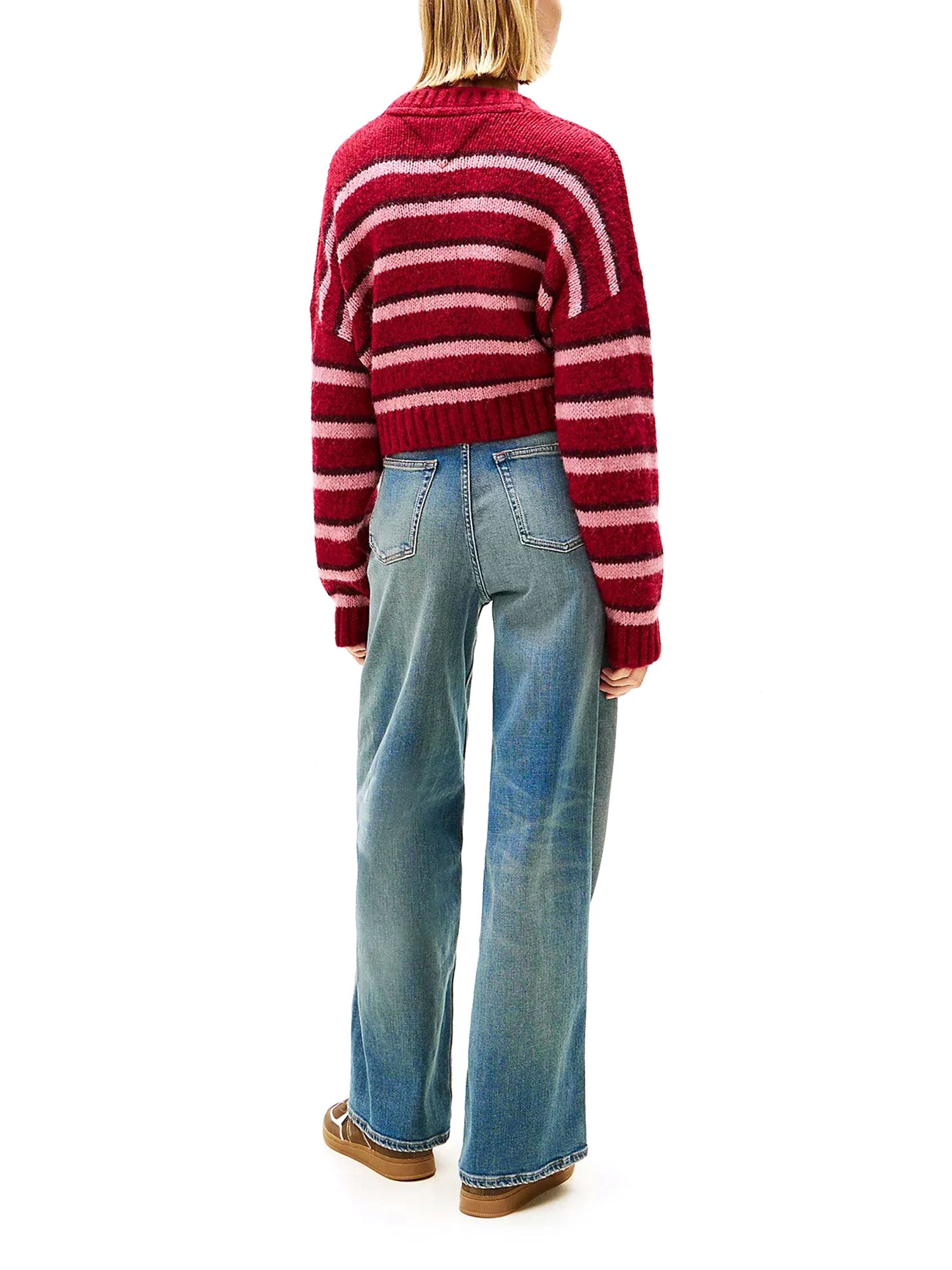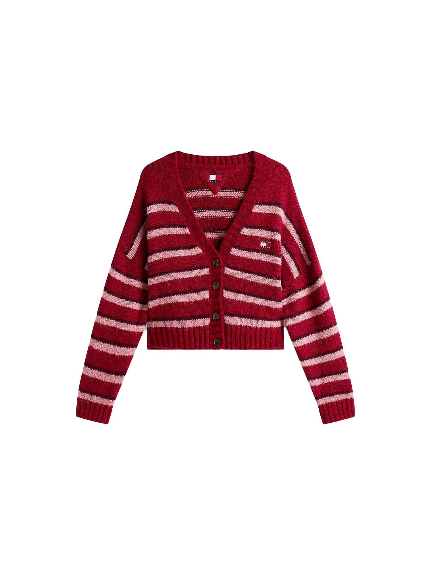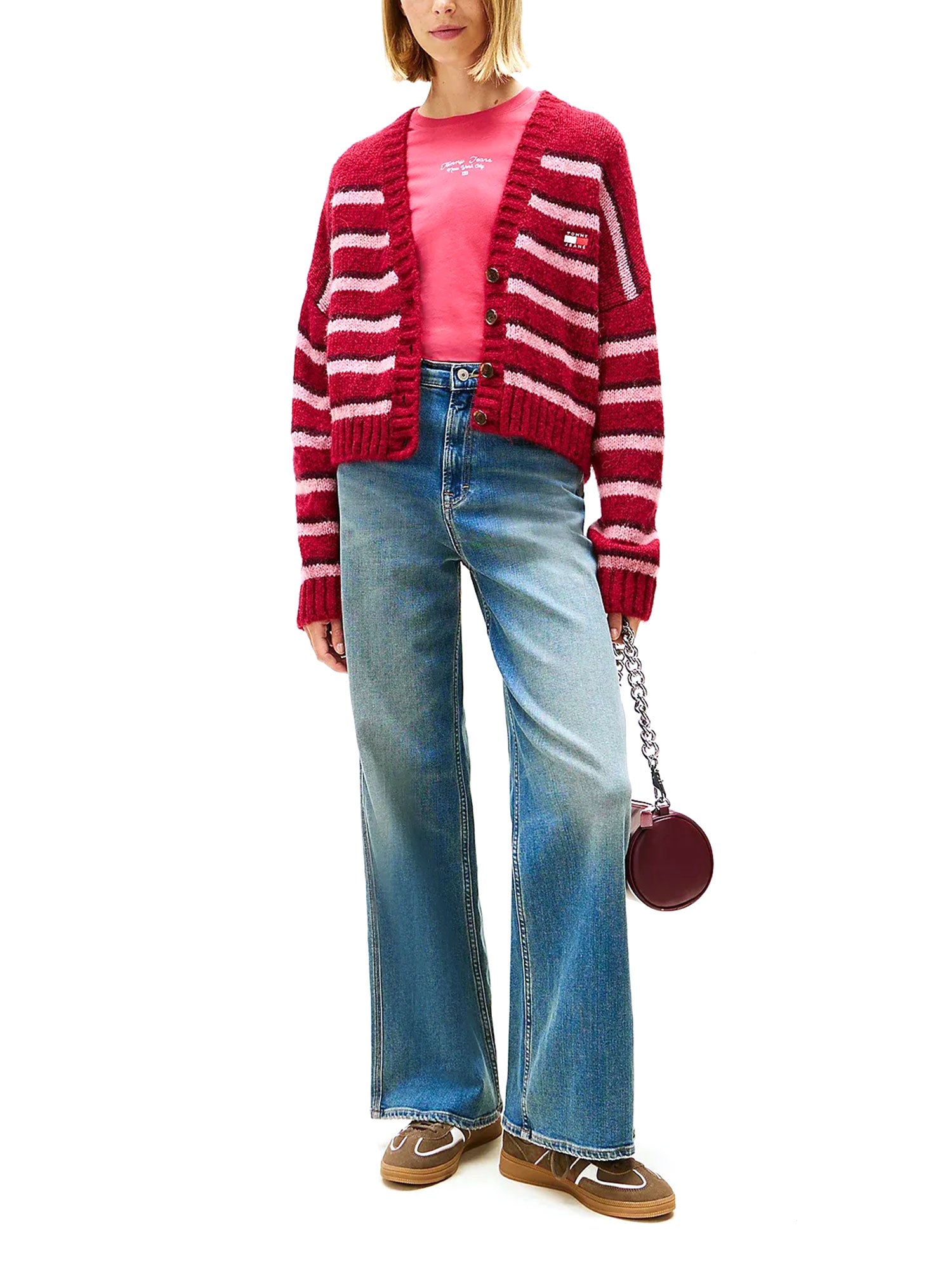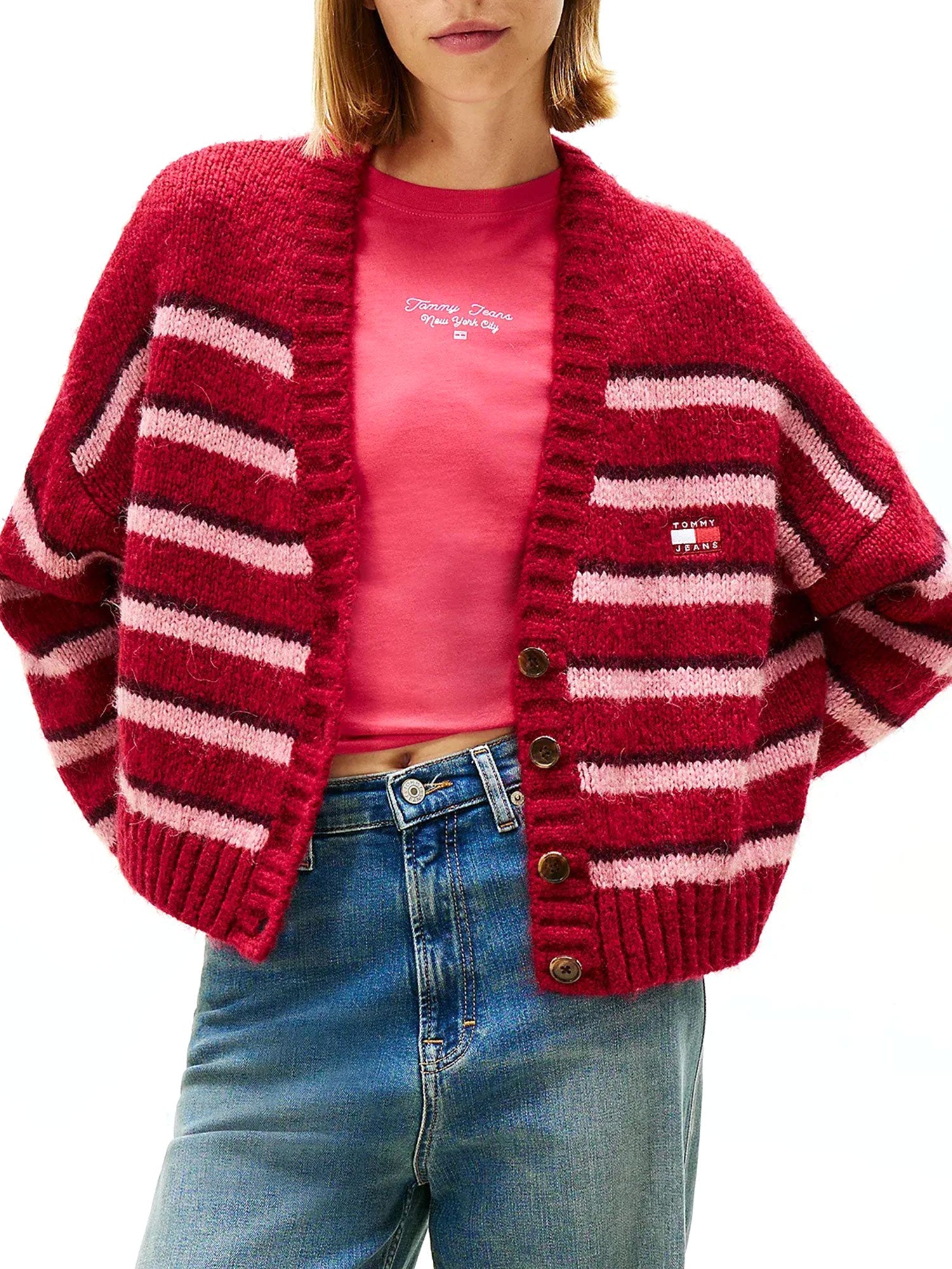 Cardigan relaxed fluffy Tommy Jeans donna con bottoni e badge logo stripe rosso/rosa