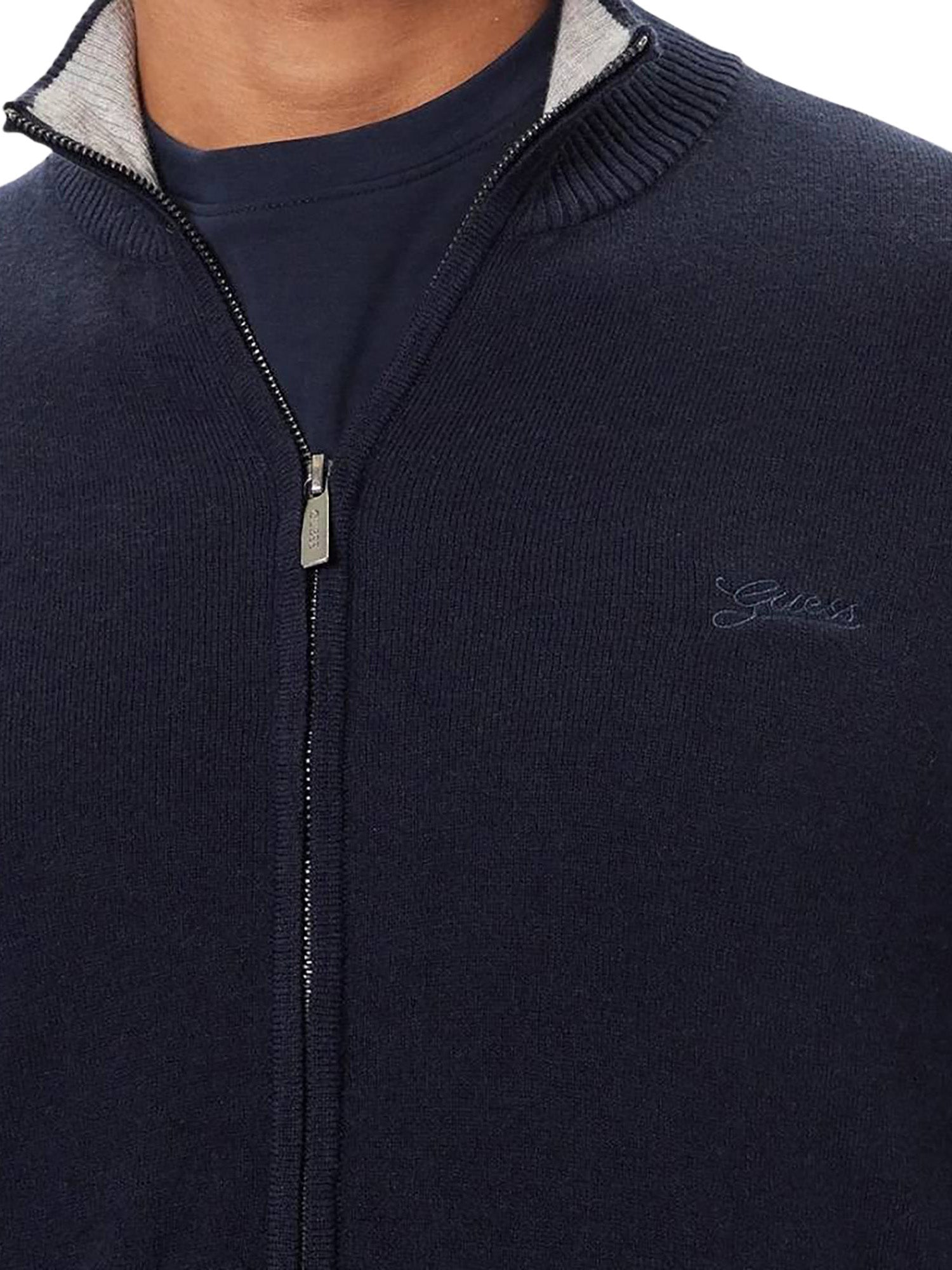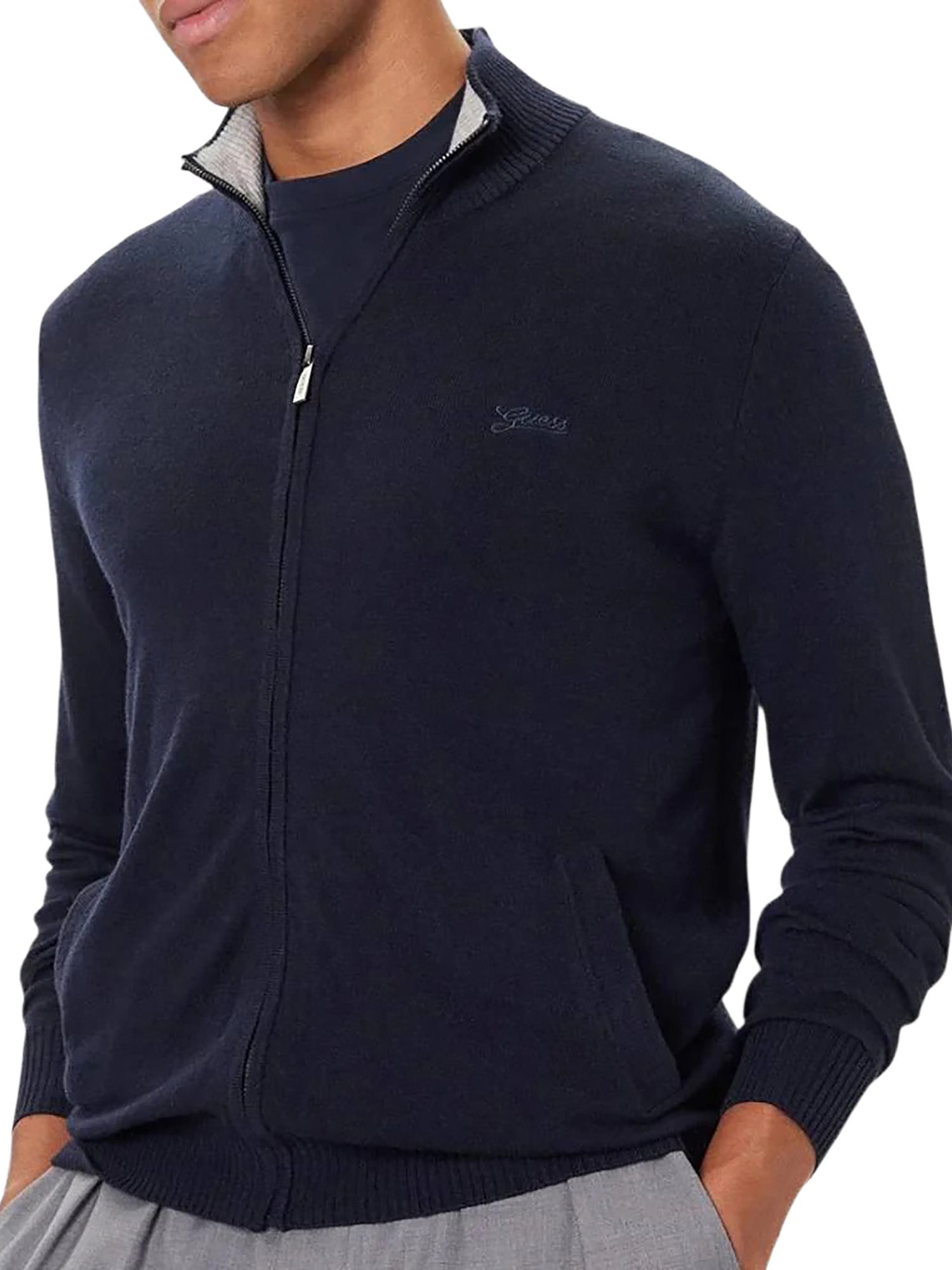 Cardigan collo alto e zip Guess uomo basic darrel blu