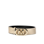 Cintura Marc Ellis, un dettaglio iconico per valorizzare ogni look. Design essenziale e raffinato, impreziosito dalla maxi fibbia dorata con logo “M” in rilievo: questa cintura in ecopelle lucida è l’accessorio perfetto per definire il punto vita con carattere.