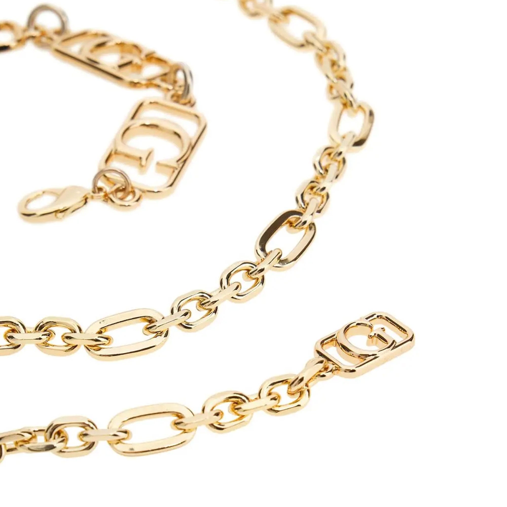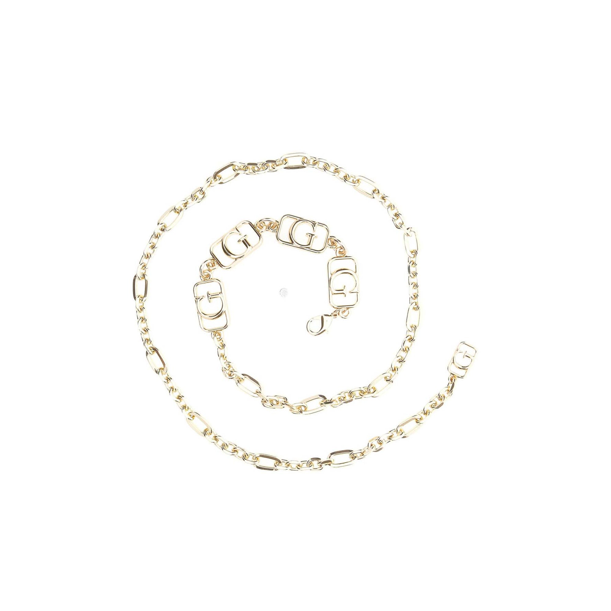 Cinta Guess H20 , modello in catena dorata, con dettagli distintivi logo, ideale per look da giorno casual chic, serate eleganti o eventi formali. Perfetto per arricchire abiti, pantaloni a vita alta o gonne midi.