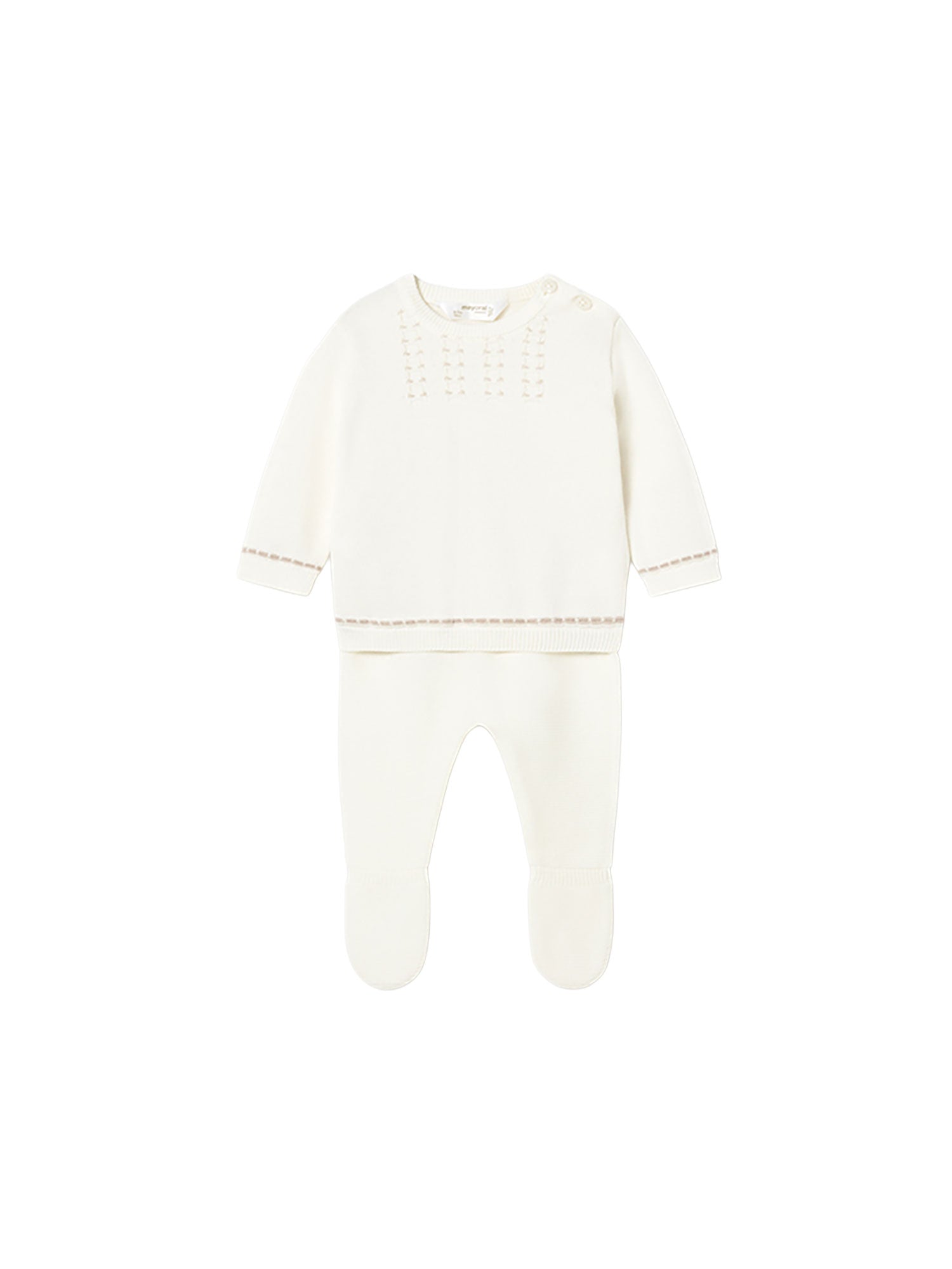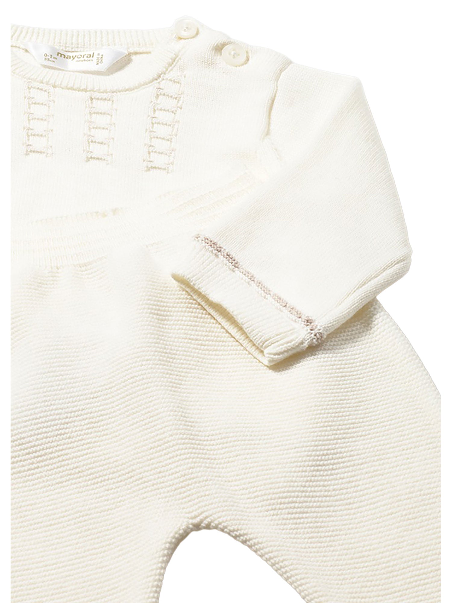 Completo in maglia Mayoral dal design elegante e delicato, pensato per garantire comfort e praticità nei primi mesi del neonato. Ideale per un look curato e confortevole nelle occasioni speciali o nella quotidianità.