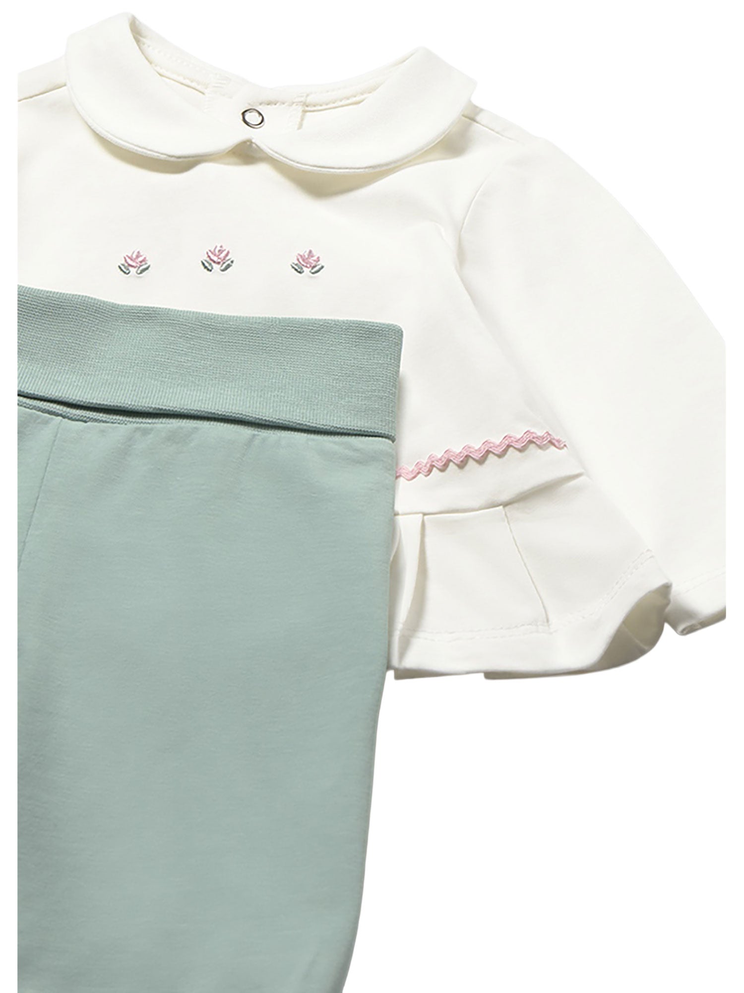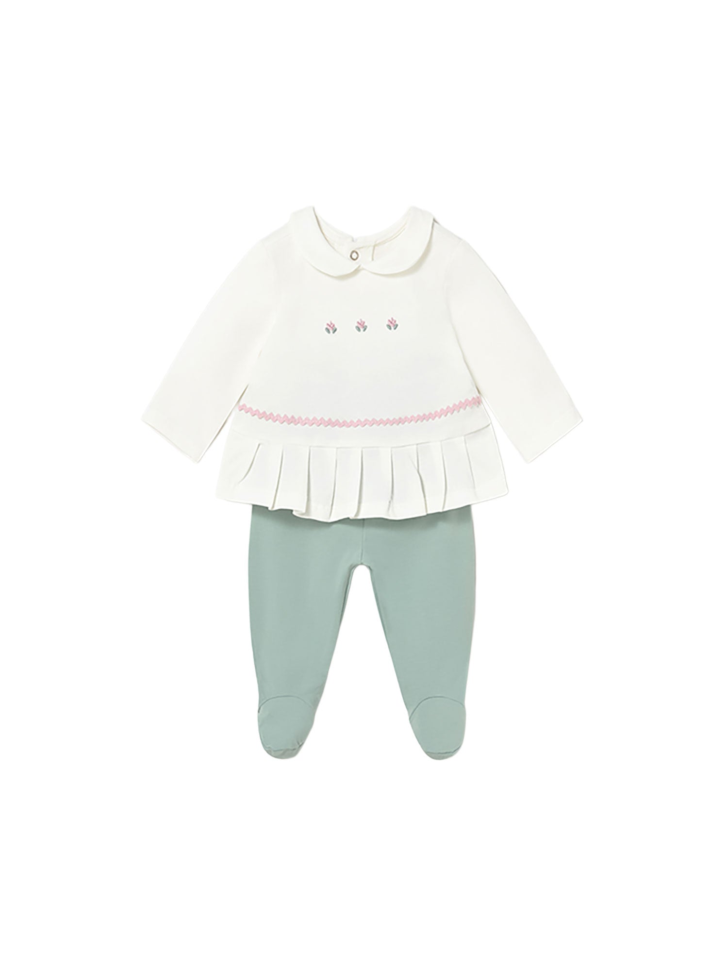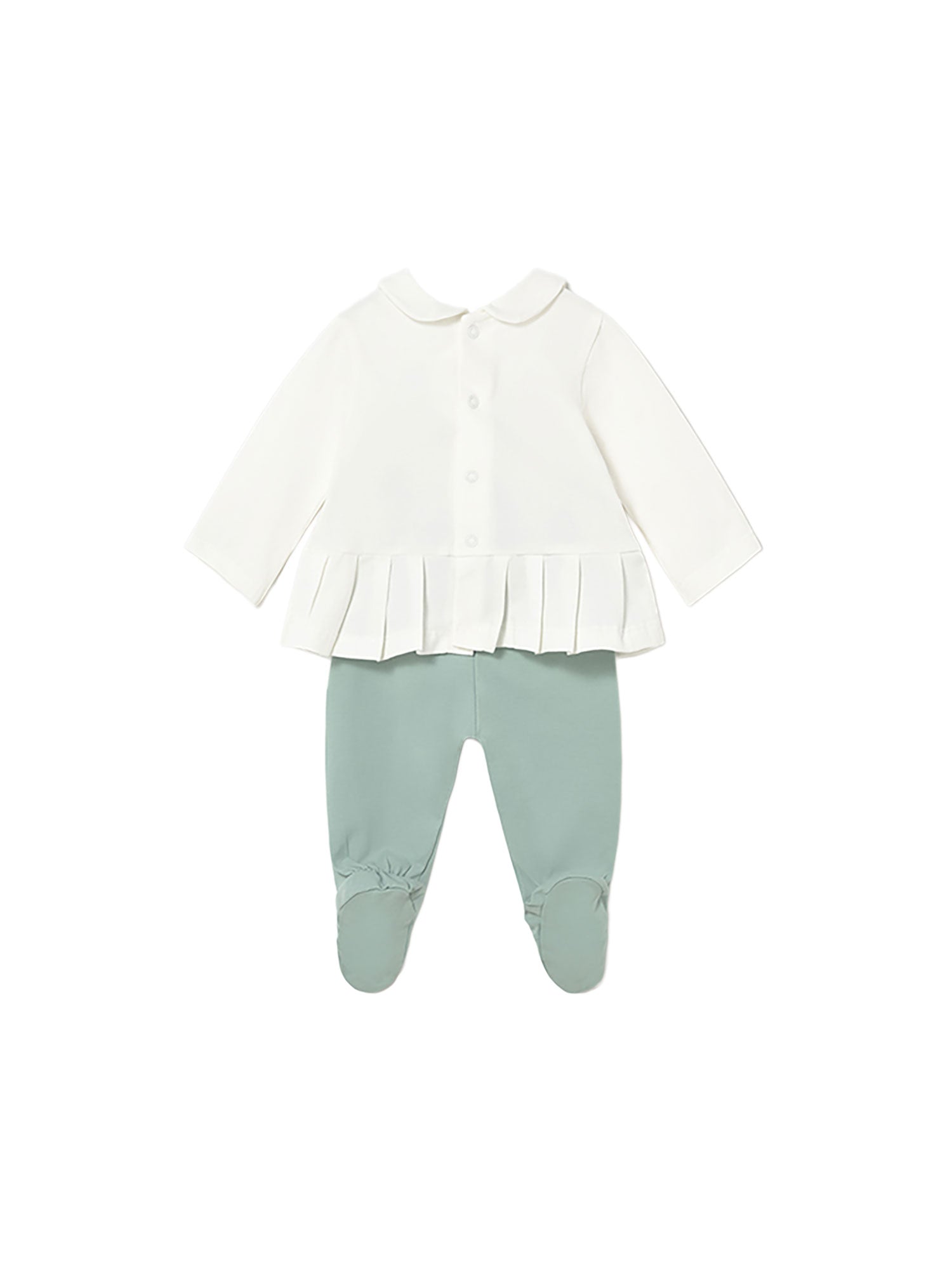 Completo Mayoral delicato e confortevole, pensato per garantire praticità e dolcezza nei primi mesi della neonata. Ideale per un look elegante e comodo nella quotidianità.