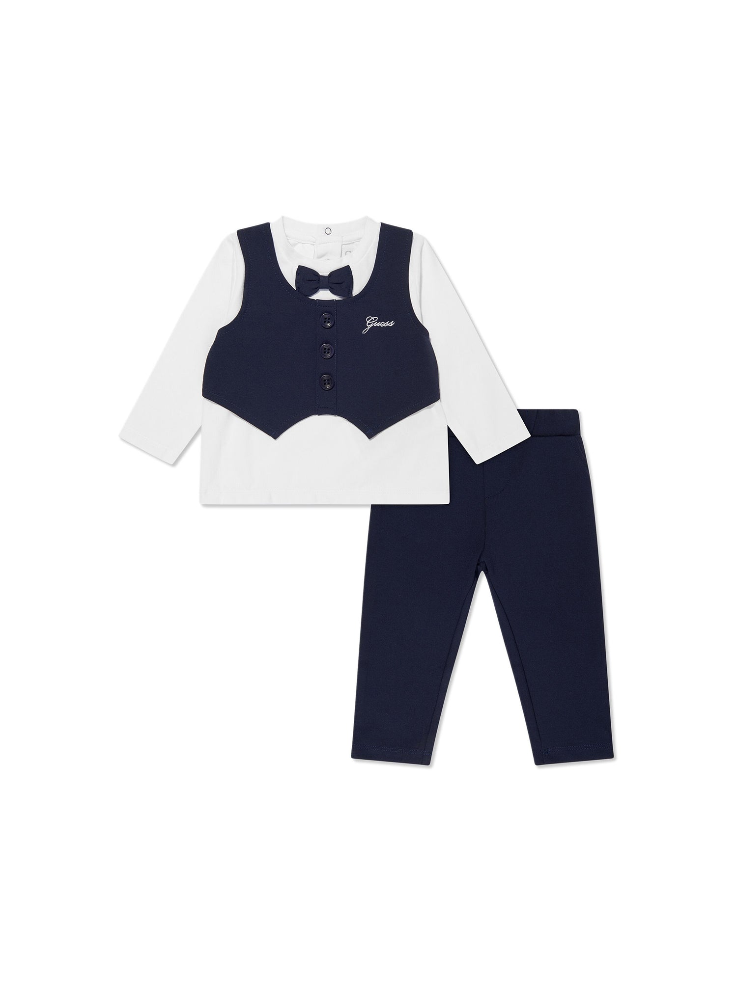Completo 2 pz da Cerimonia per neonato Guess. Elegante completo coordinato per bambino, perfetto per occasioni speciali e cerimonie e per un look sofisticato e alla moda.