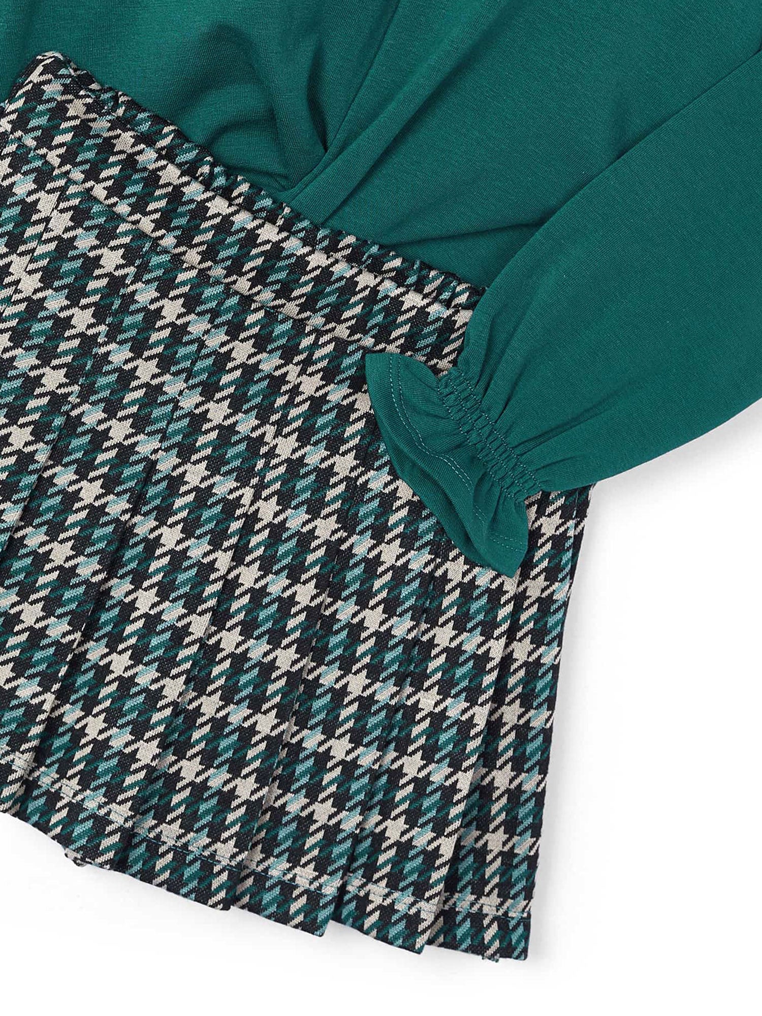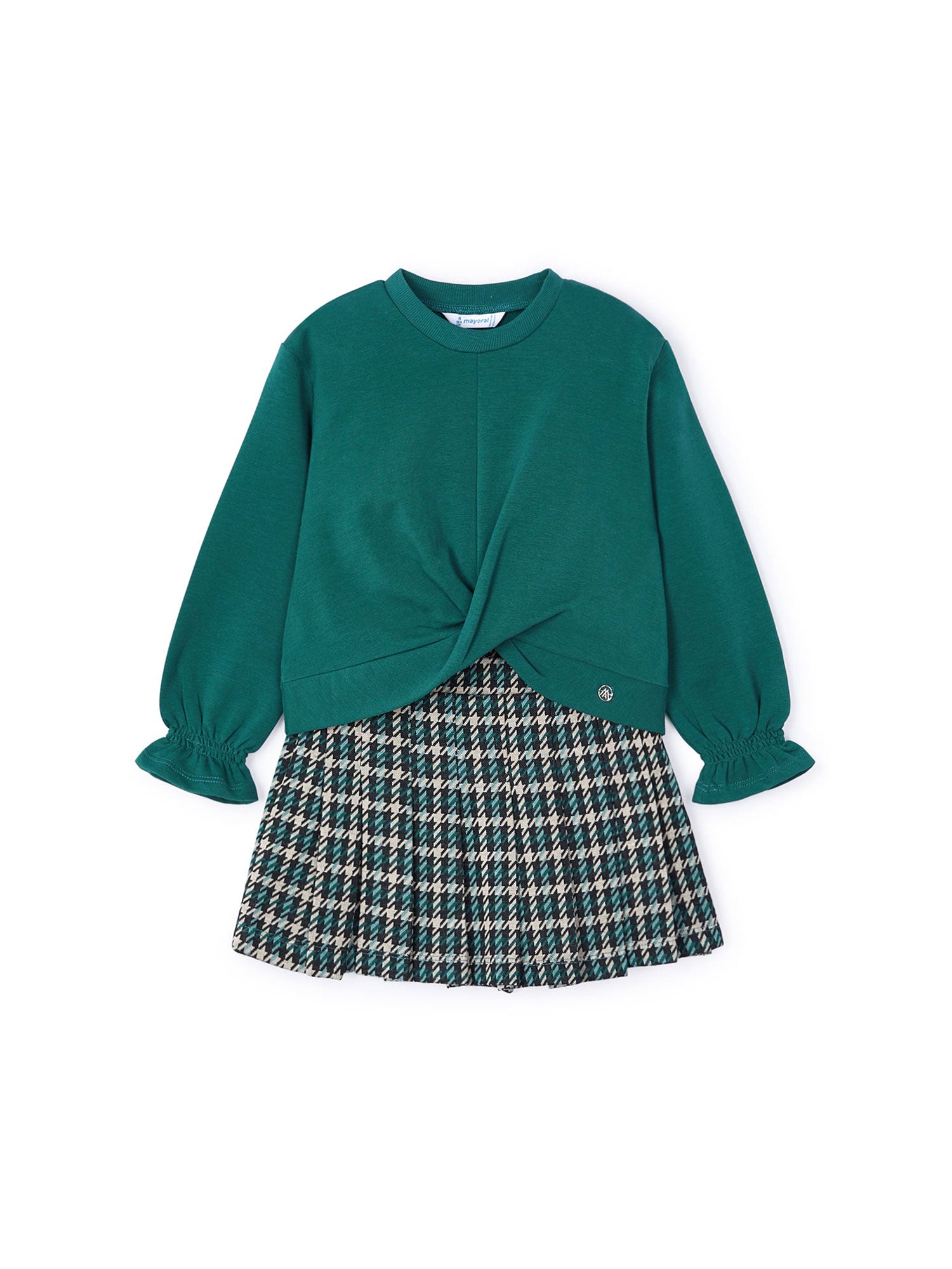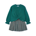Completo da bambina composto da maglioncino verde bottiglia e short punto jacquard.