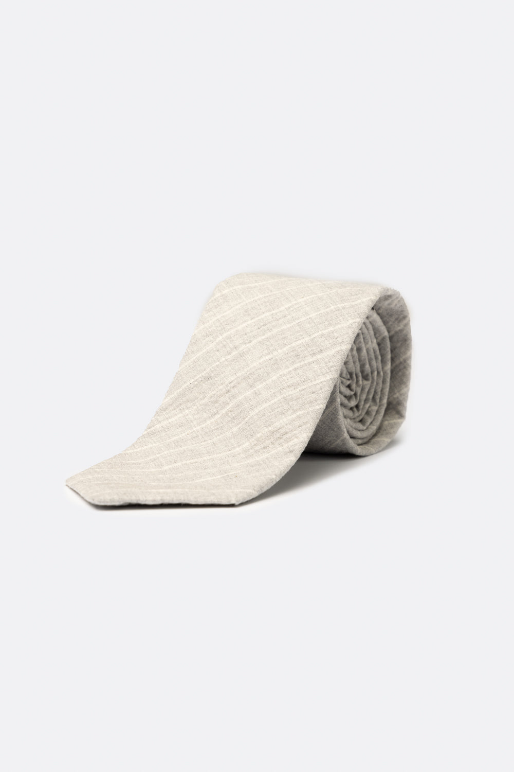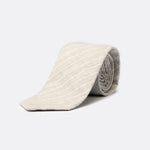 Cravatta realizzata in cotone goffrato. Il tessuto, leggero e fresco, è impreziosito da un motivo gessato che dona ritmo visivo e personalità al design. Un accessorio versatile e distintivo, perfetto per completare look sartoriali o spezzati contemporanei con eleganza disinvolta.