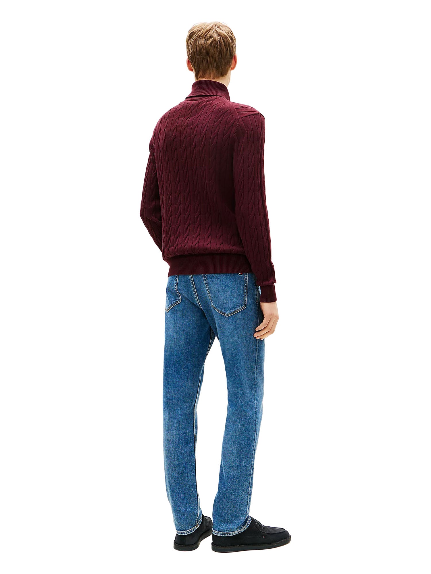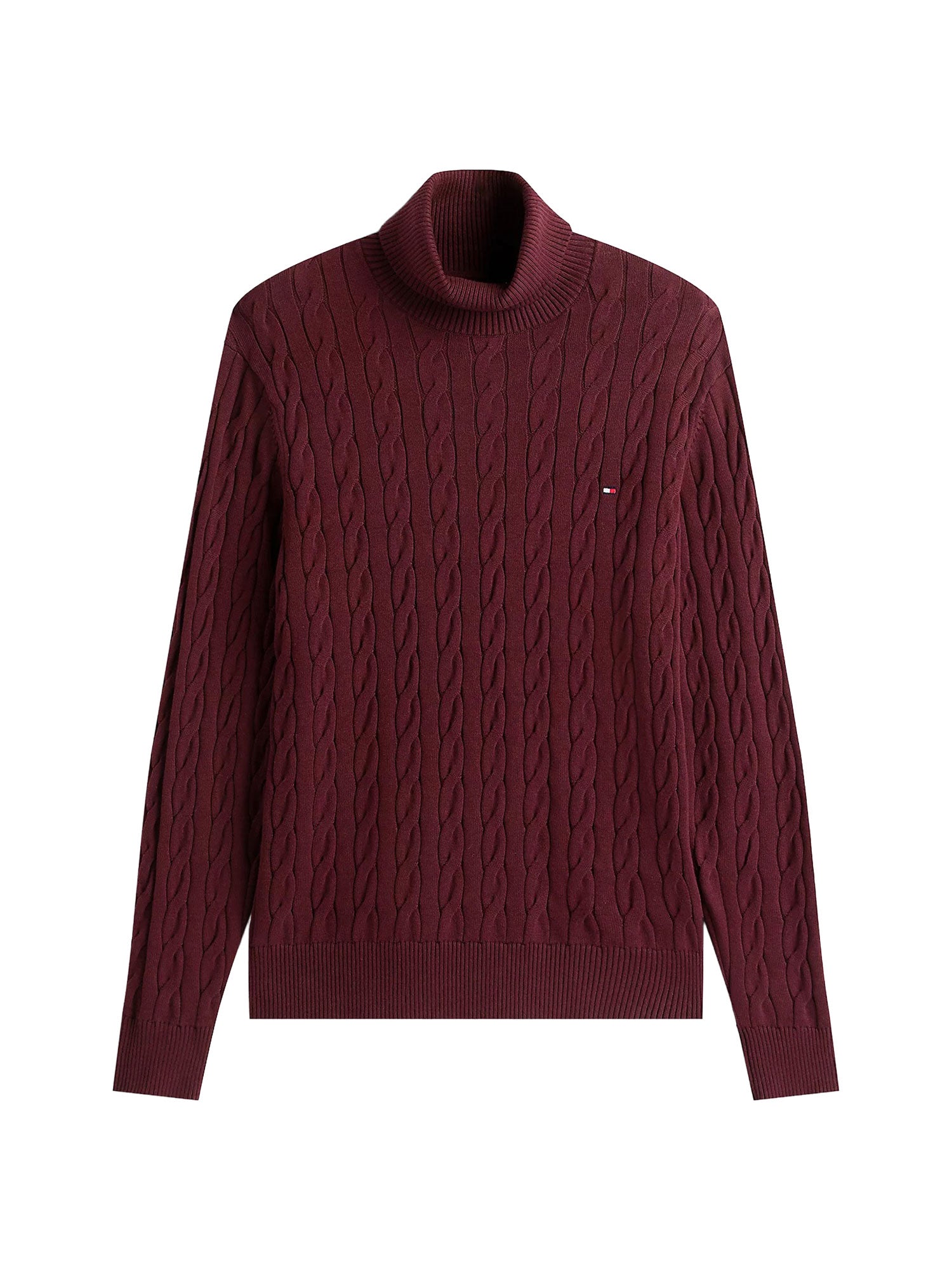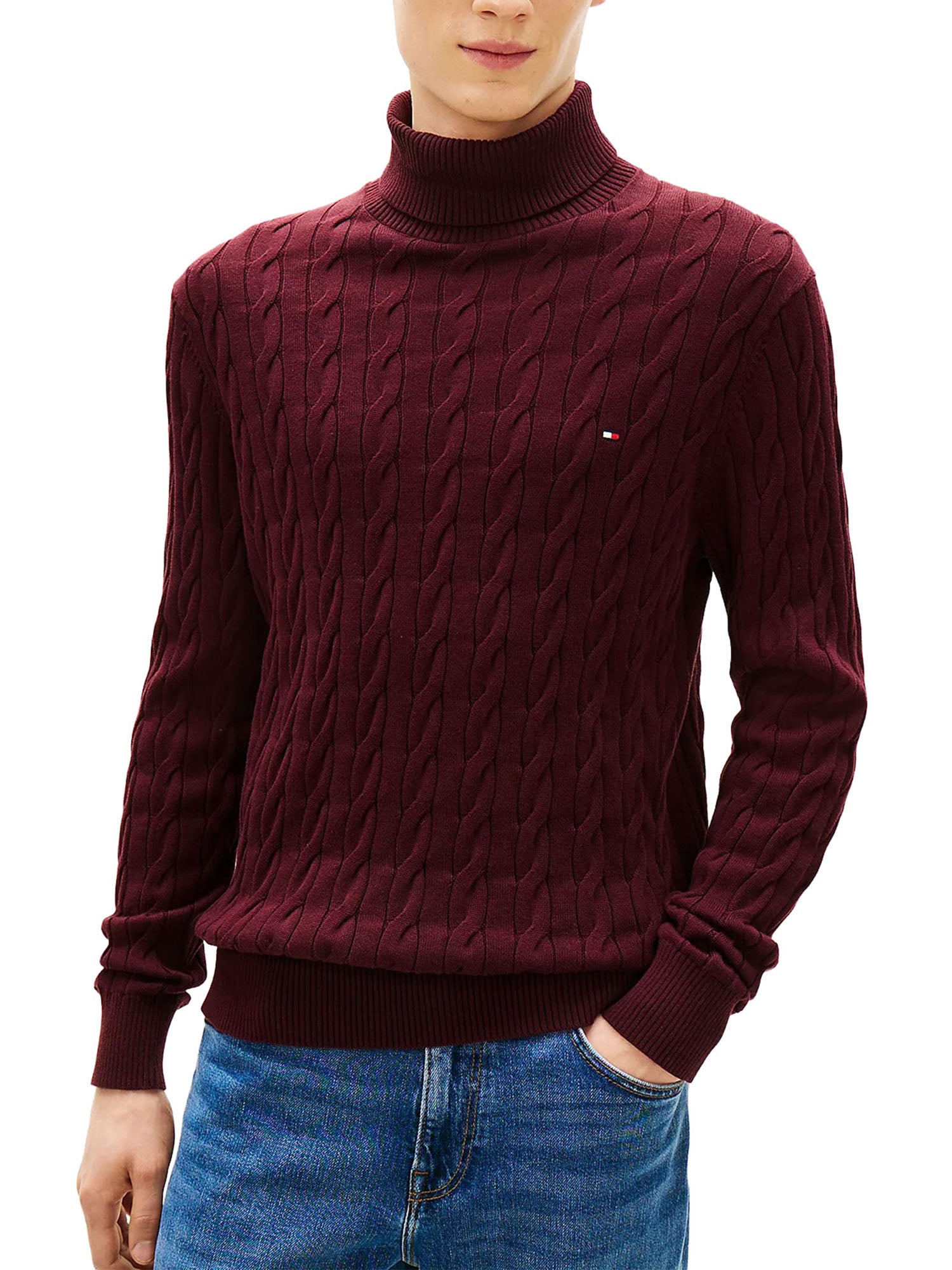 Dolcevita Tommy Hilfiger uomo cotton collo alto maglia intrecciata bordeaux