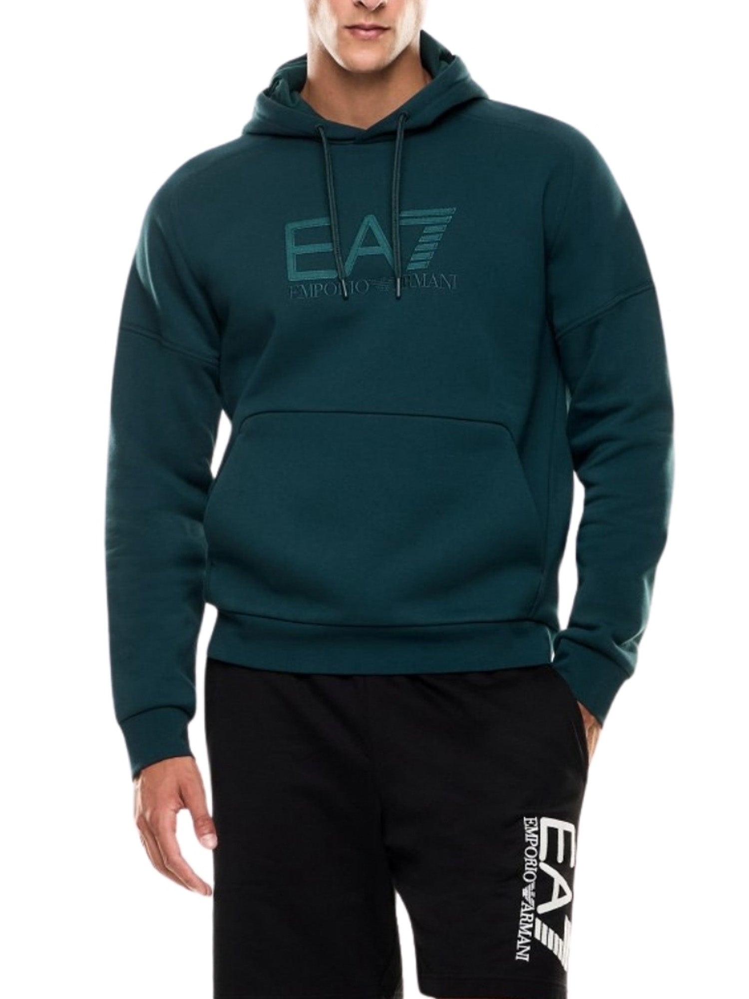 Felpa con cappuccio EA7 uomo con ricamo logo. Morbida e confrotevole, perfetta per outfit quitidiani e sportivi. - ricamo logo frontale - cappuccio regolabile - tasca frontale - polsi elasticizzati