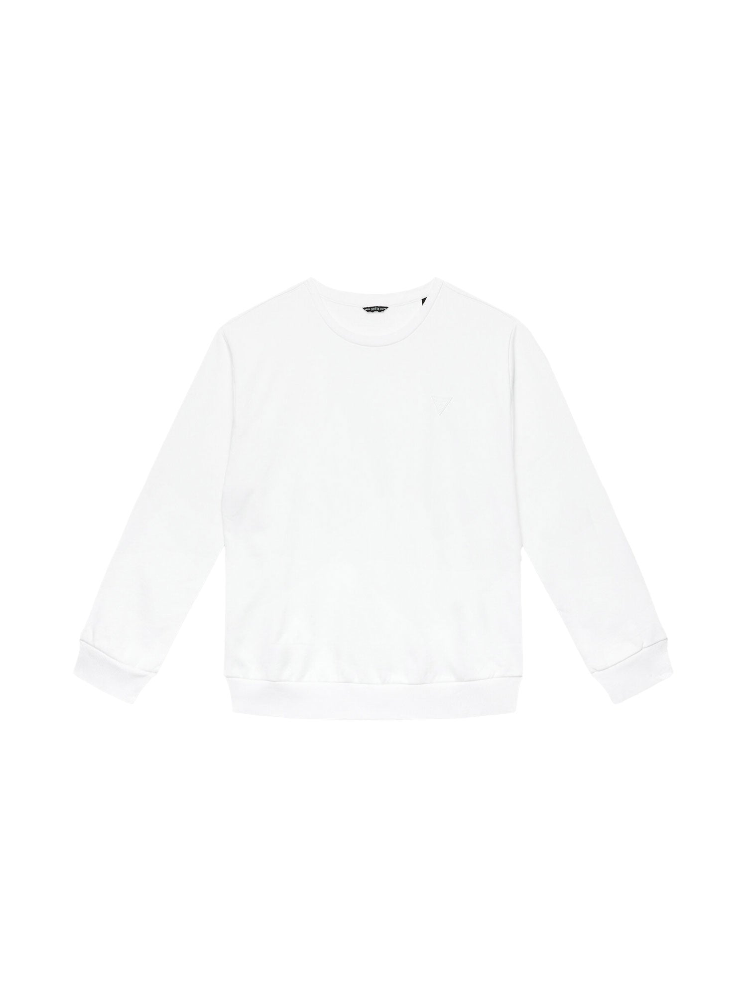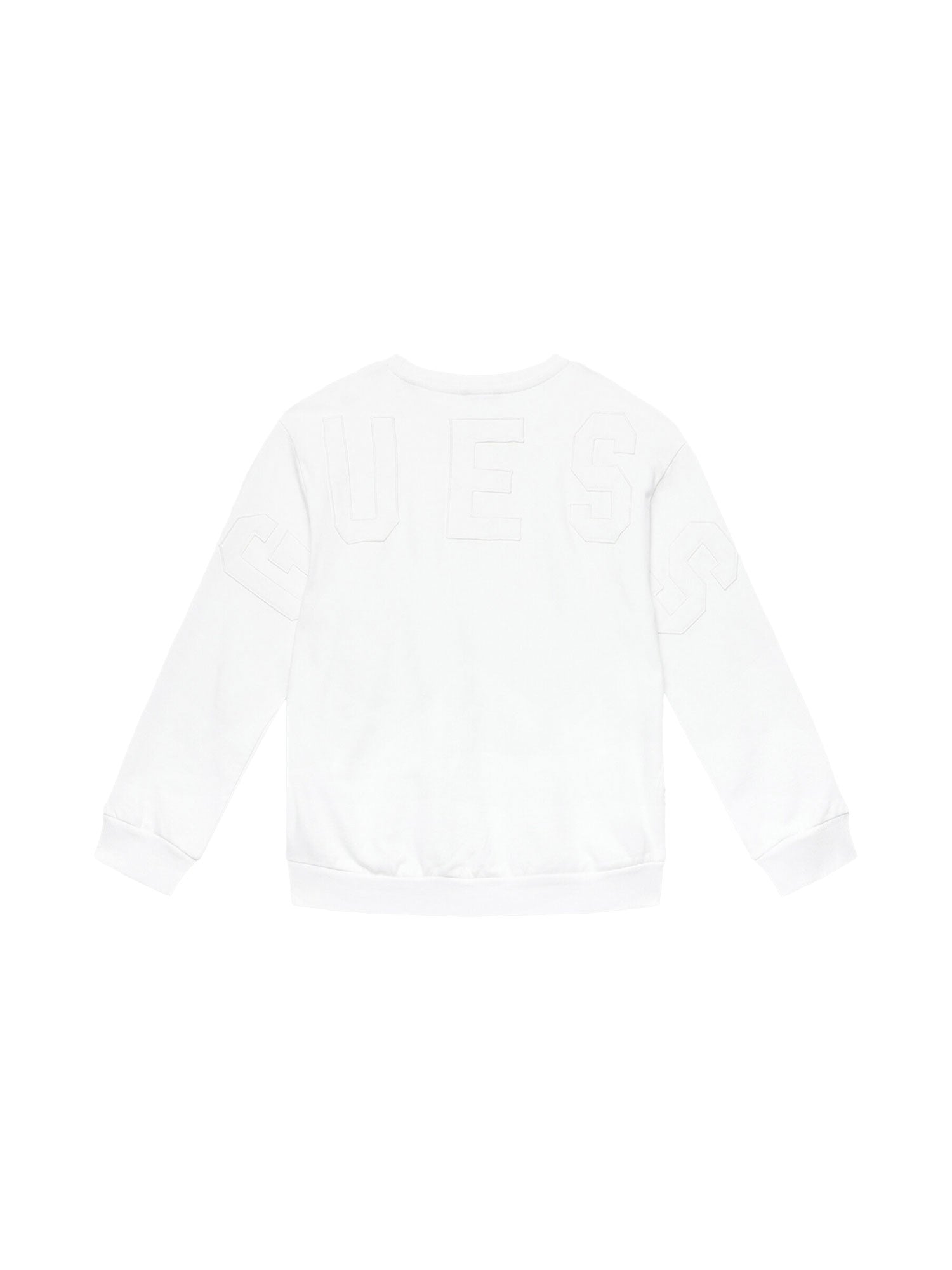 Felpa girocollo in cotone Guess per bambino. Dettaglio patch logo lettering posteriore, dalla vestibilità oversize.