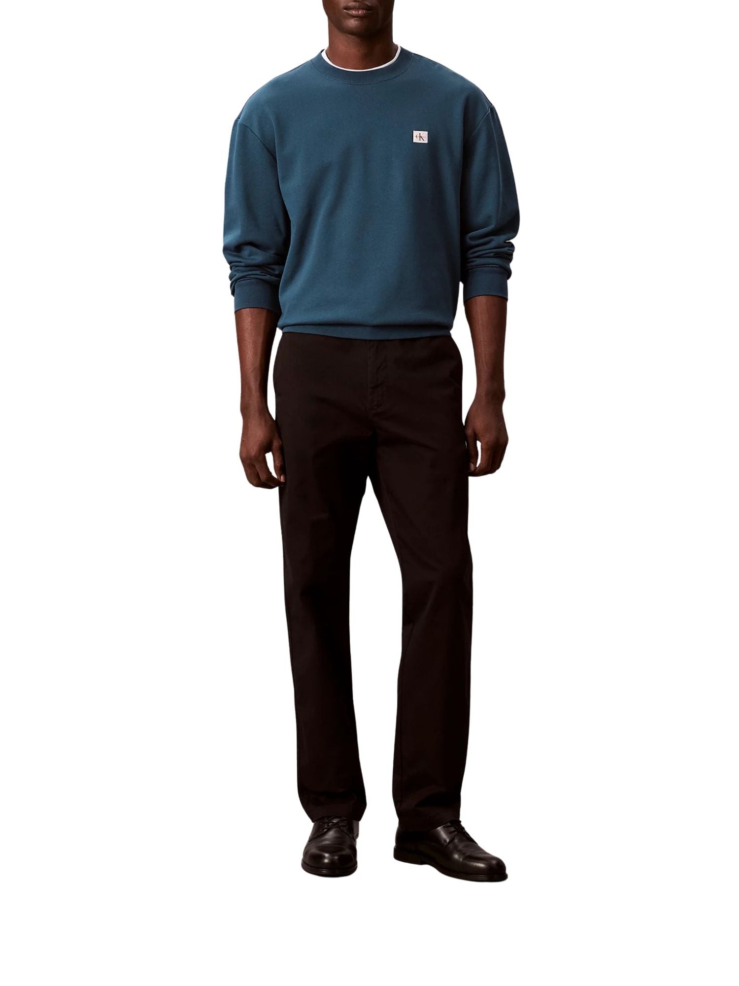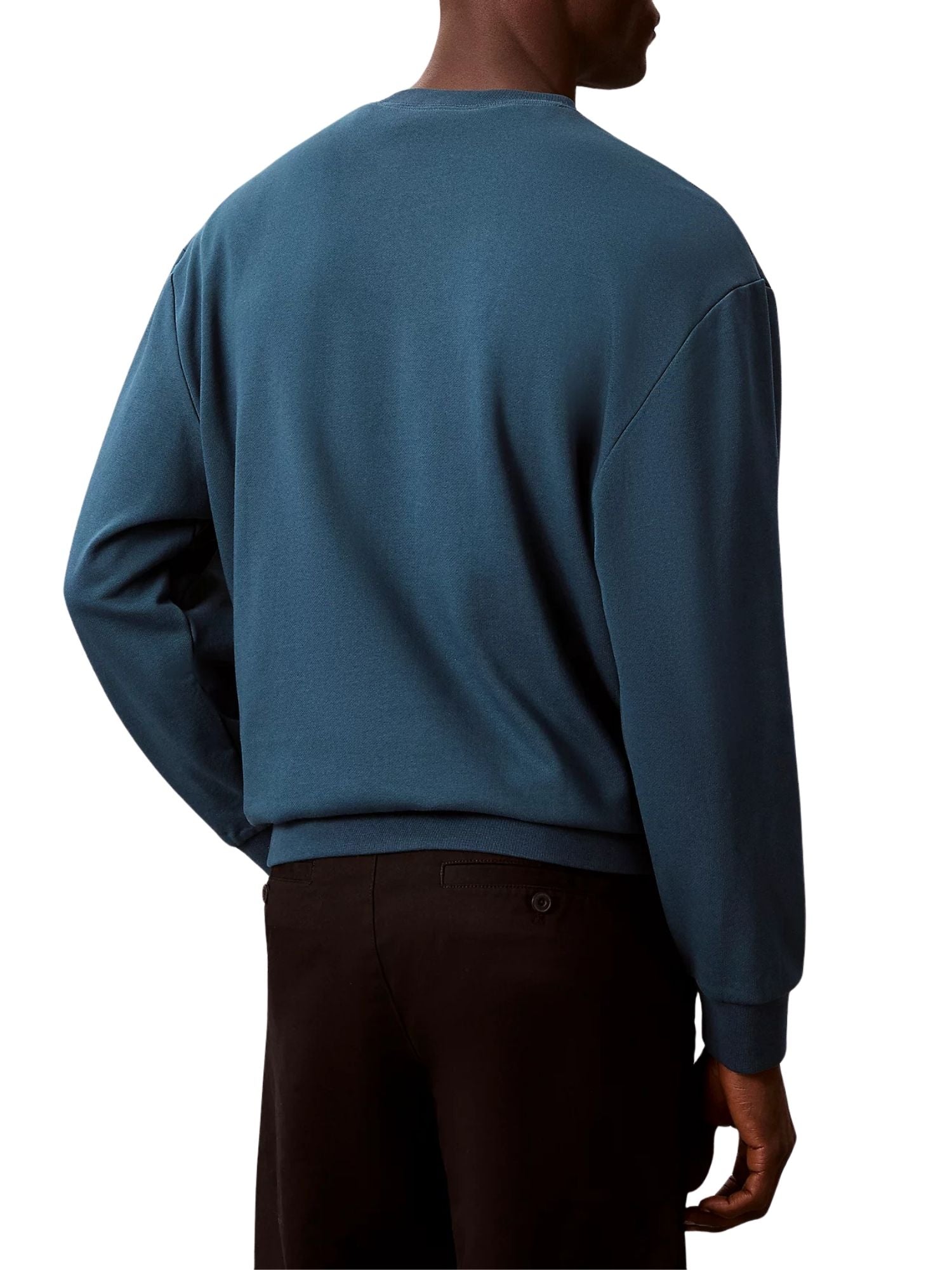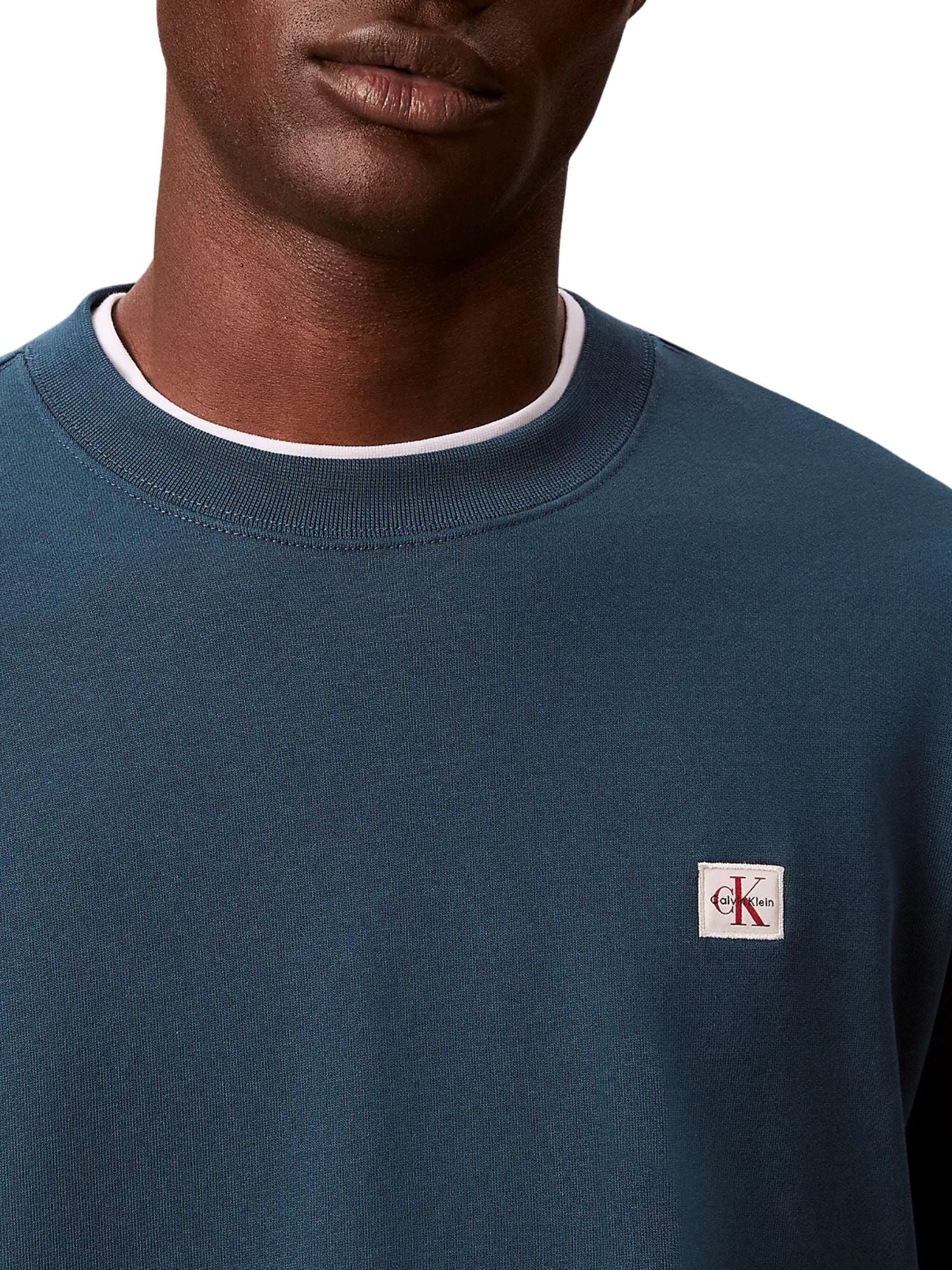 Felpa con maniche lunghe Calvin Klein Jeans modello badge 350terry blu Felpa a girocollo ideale per uno stile casual senza rinunciare all’eleganza, grazie ai dettagli minimalisti.