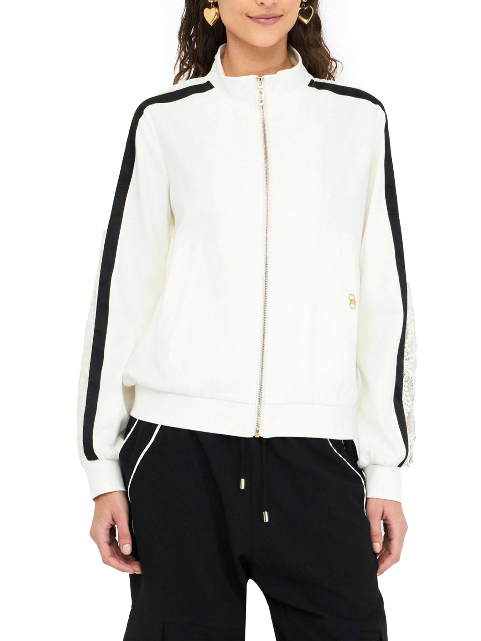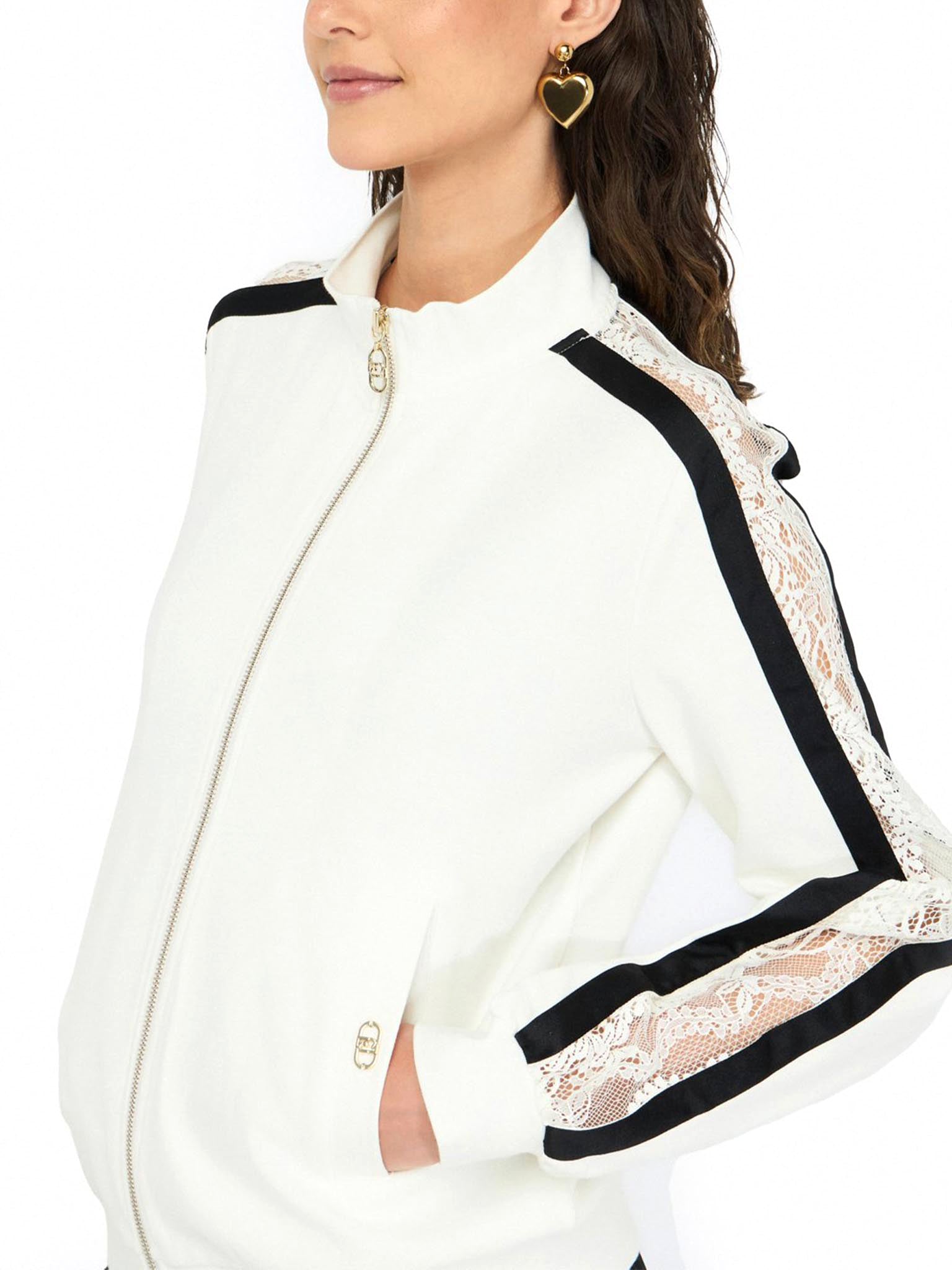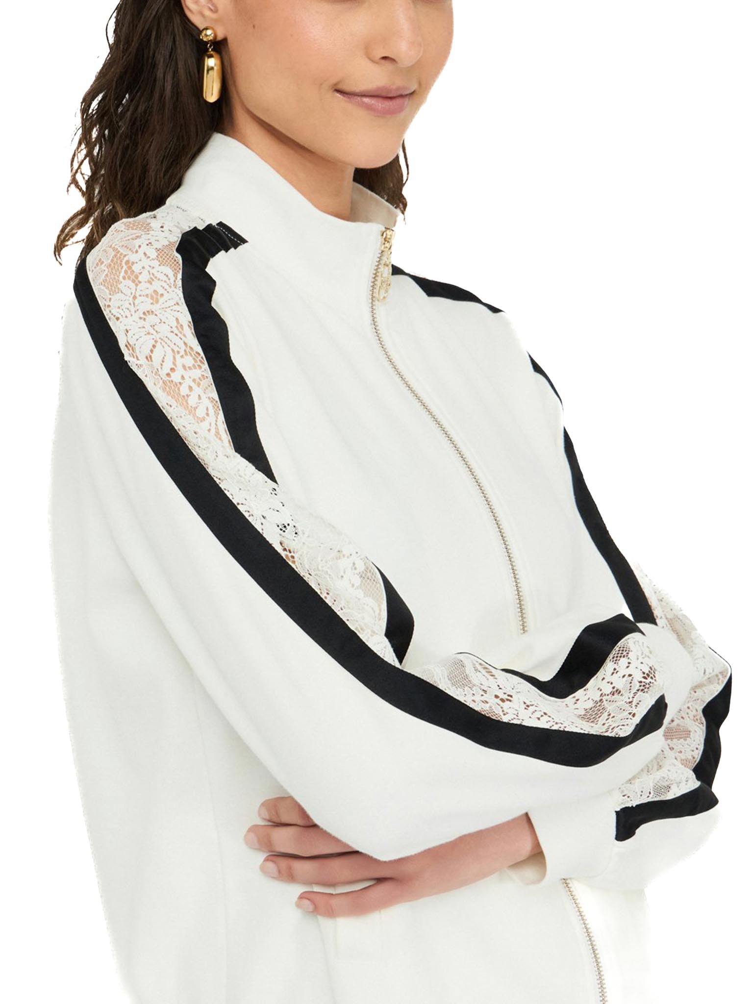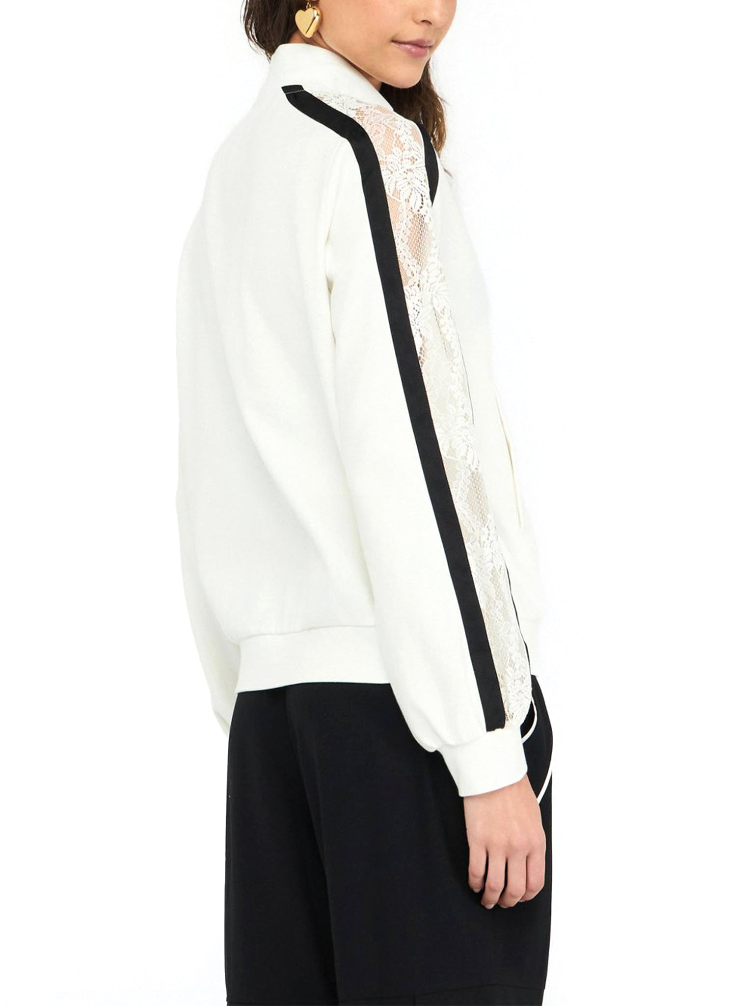 - Dettagli in pizzo laterale e strisce lungo le maniche