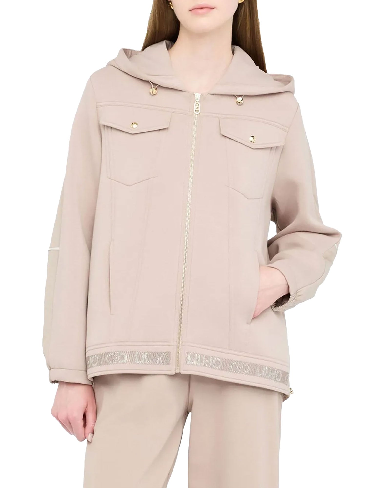 Felpa Liu Jo donna con cappuccio e banda con strass nero