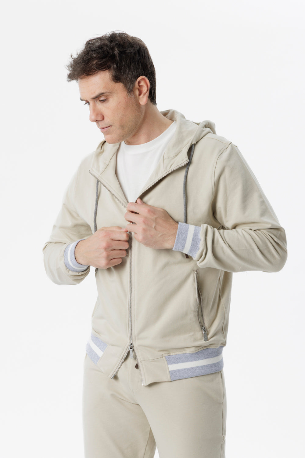 Felpa in cotone con cappuccio e zip sabbia