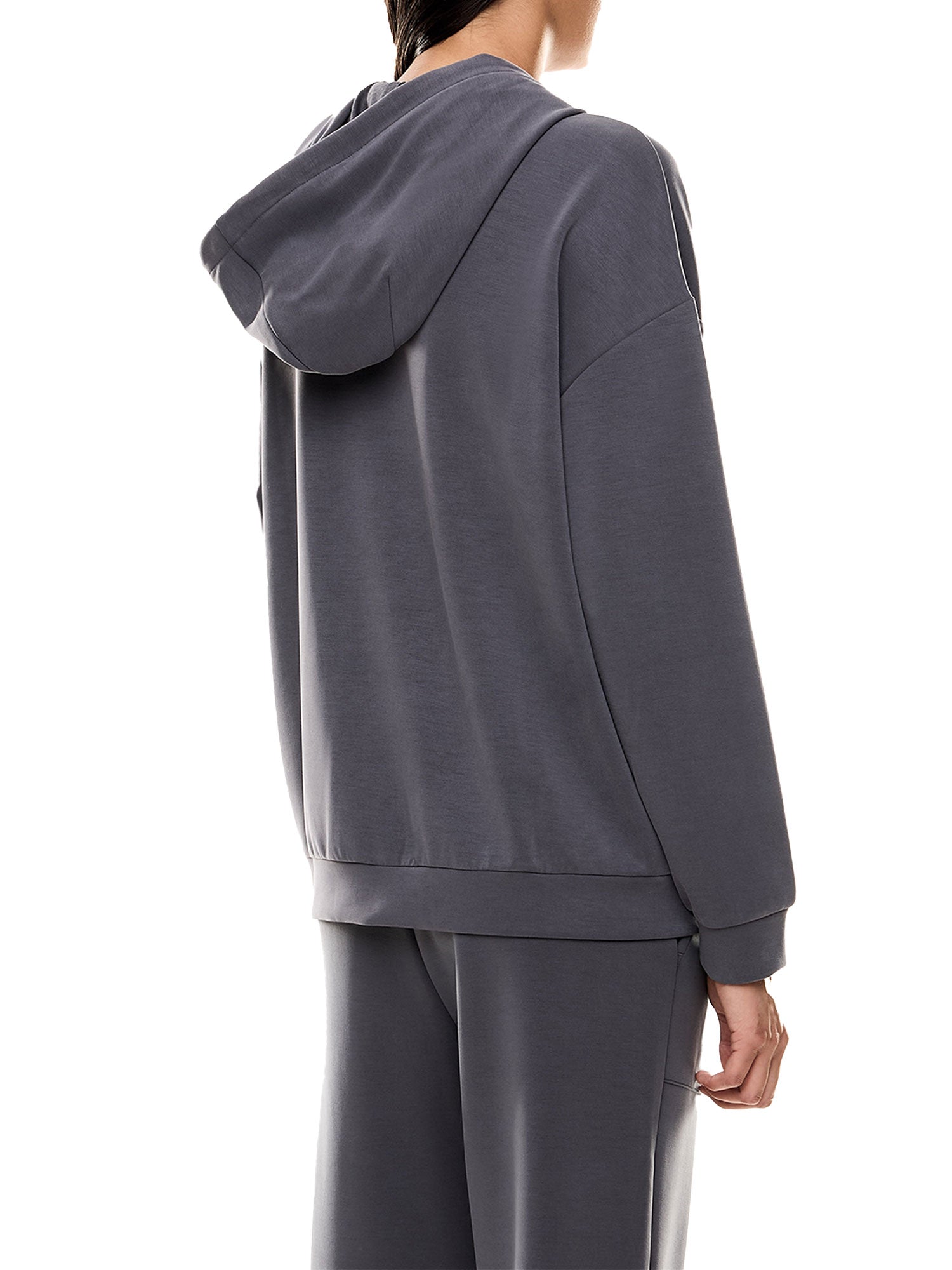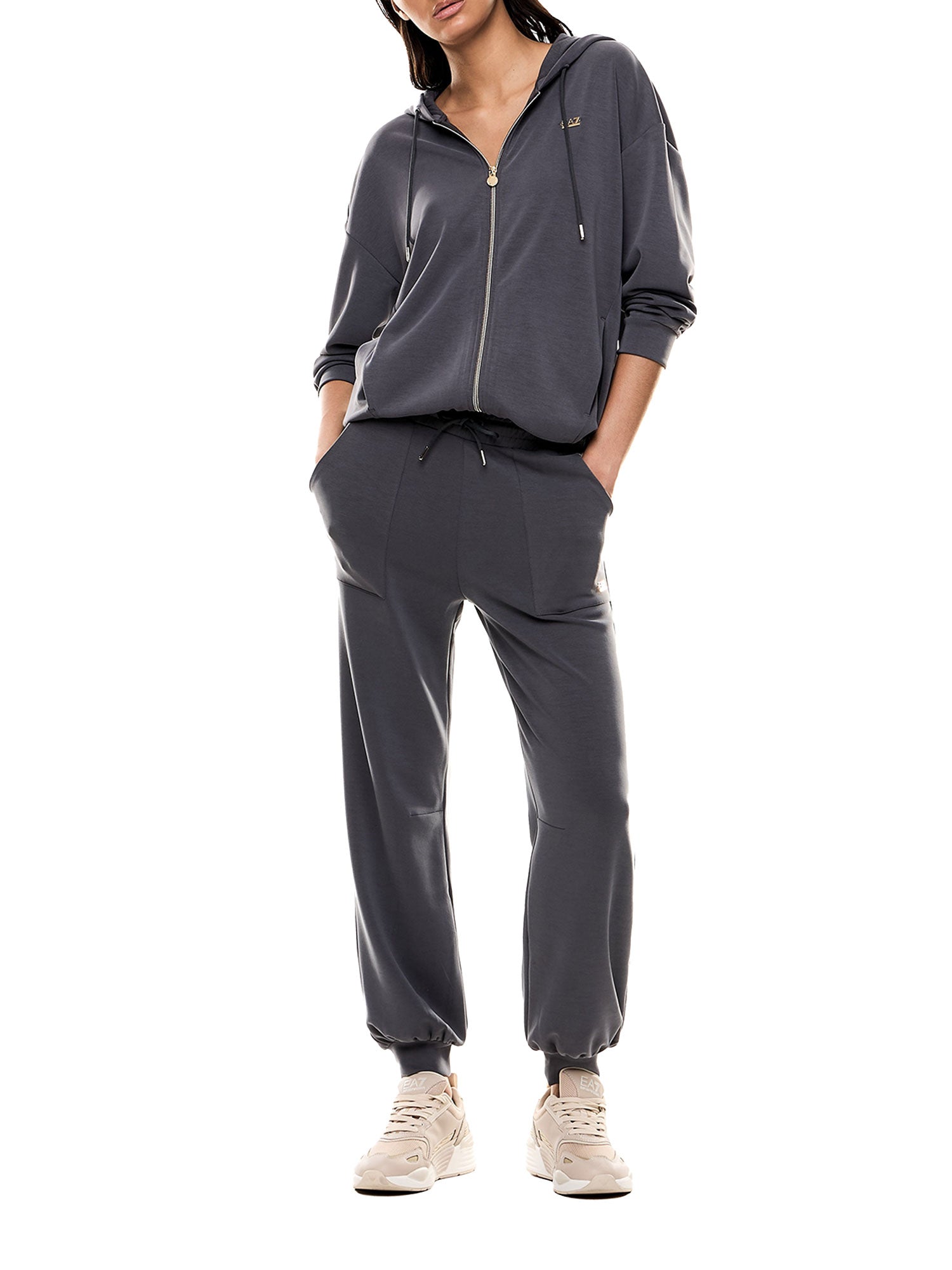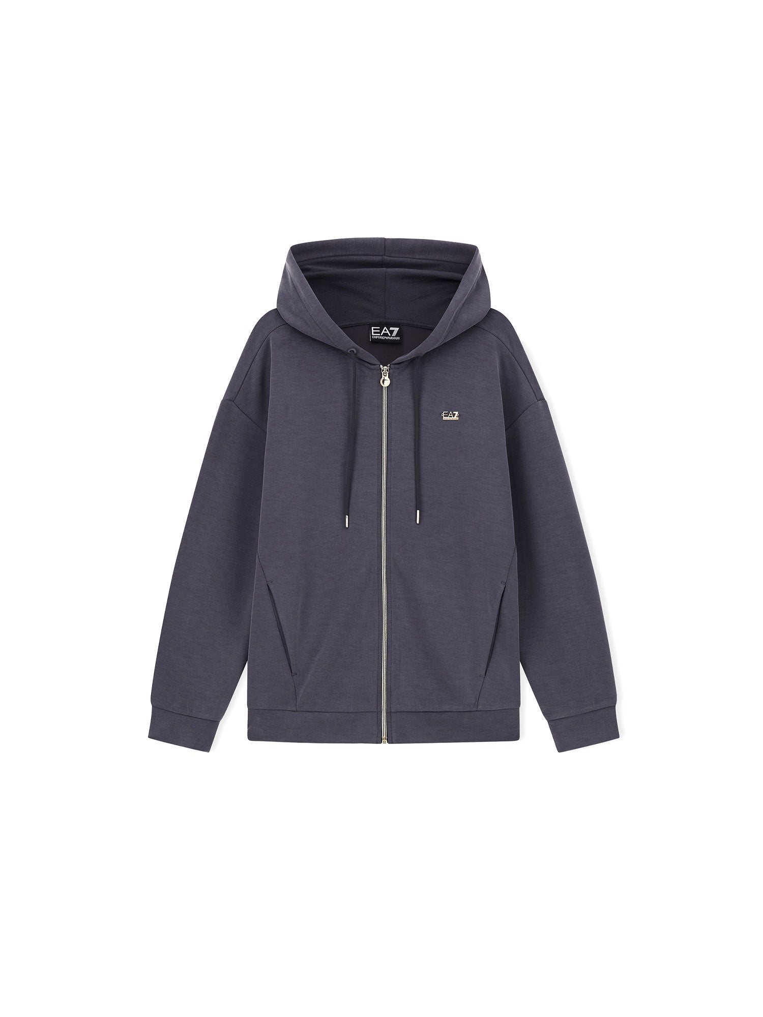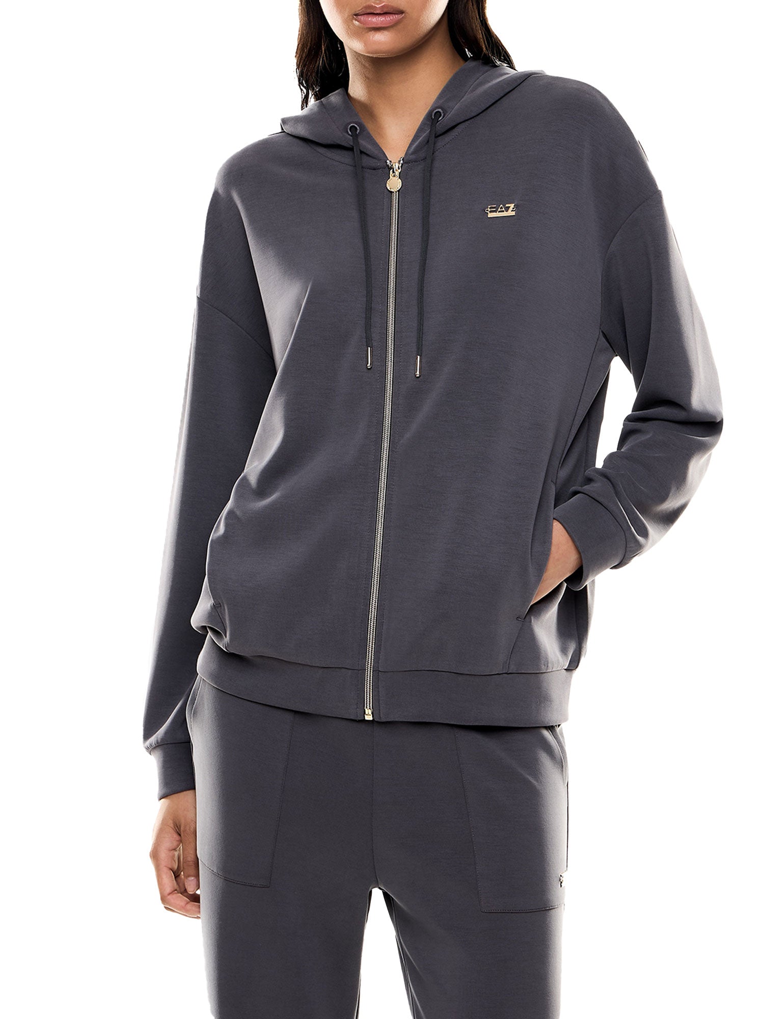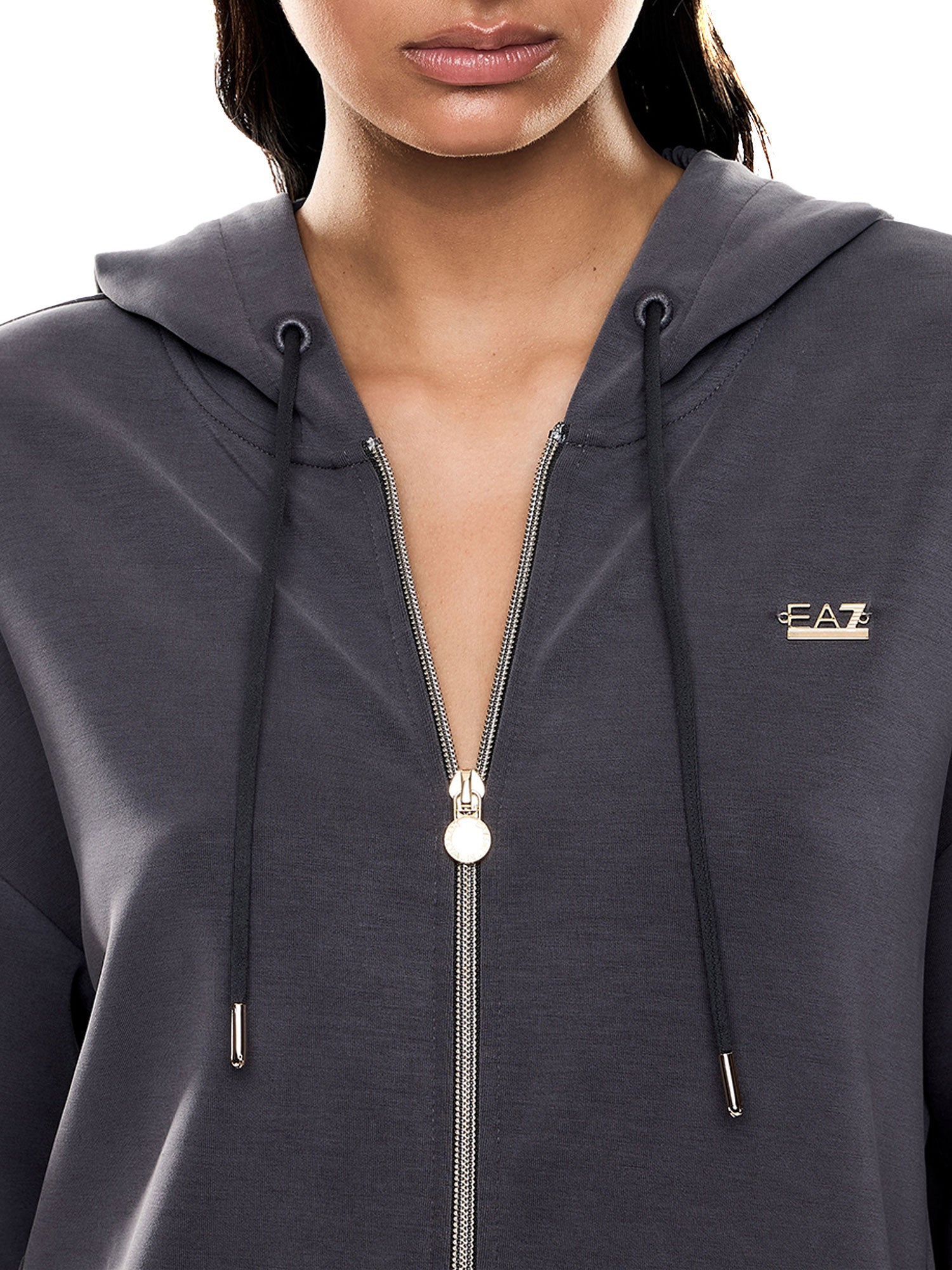 Felpa EA7 donna con cappuccio e zip logo applicato asfalto