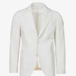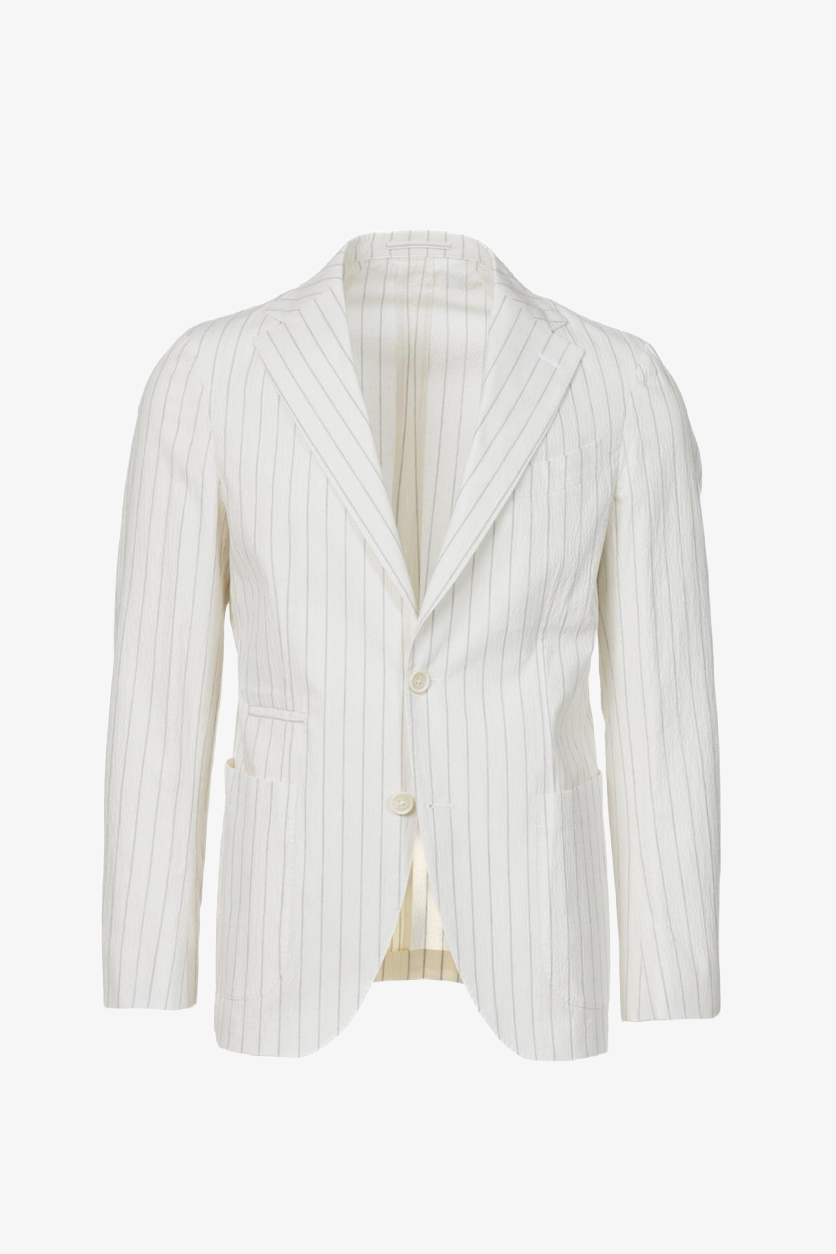 Giacca Napoli monopetto in cotone goffrato gessato bianco