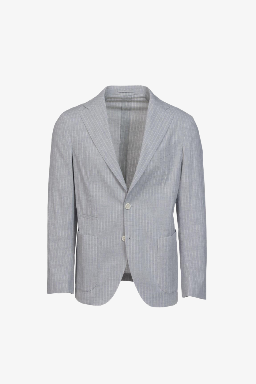 Home > > Giacca Napoli monopetto in cotone goffrato gessato grigio chiaro