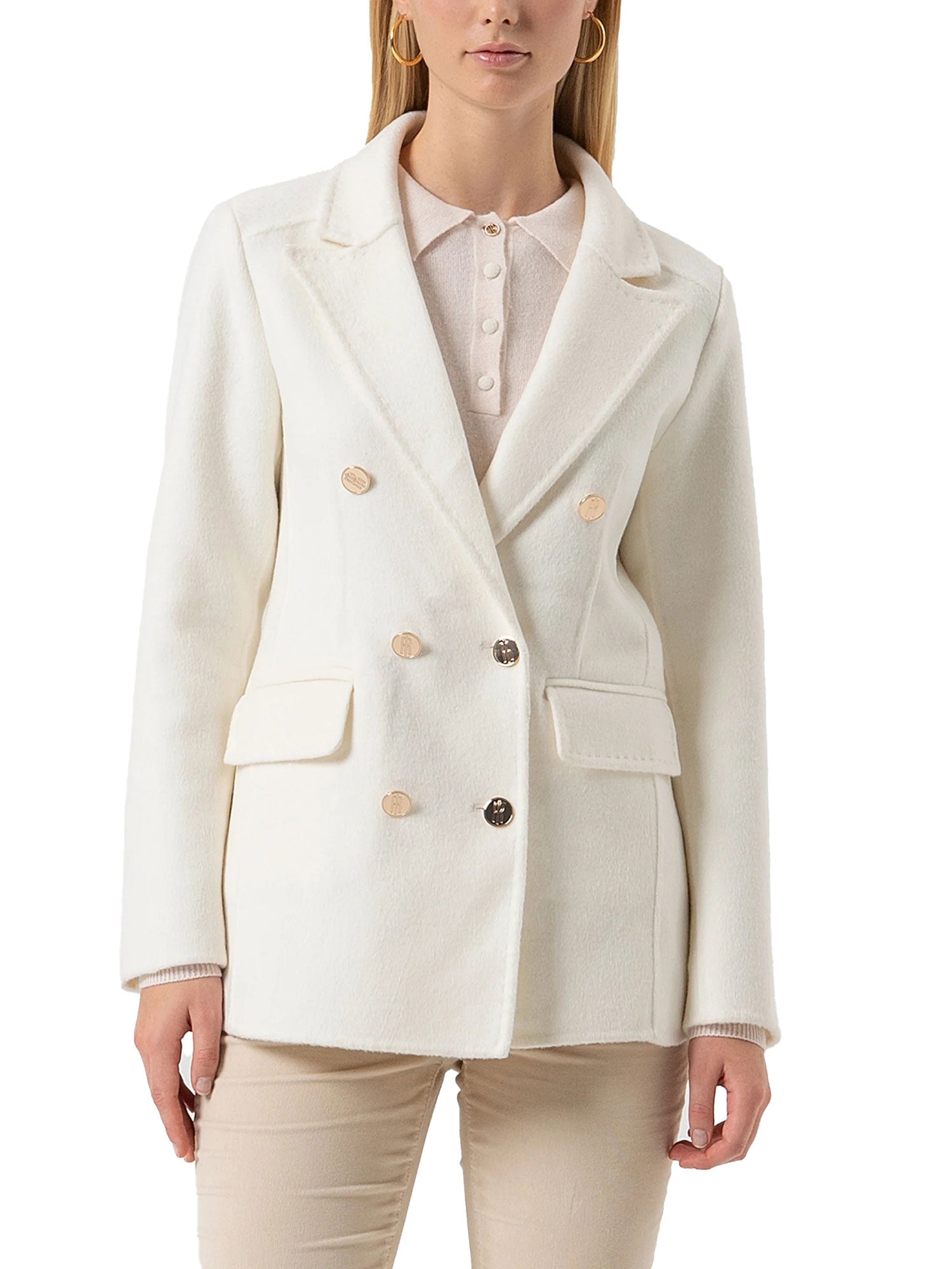 Giacca Fracomina donna doppiopetto lunga vaniglia