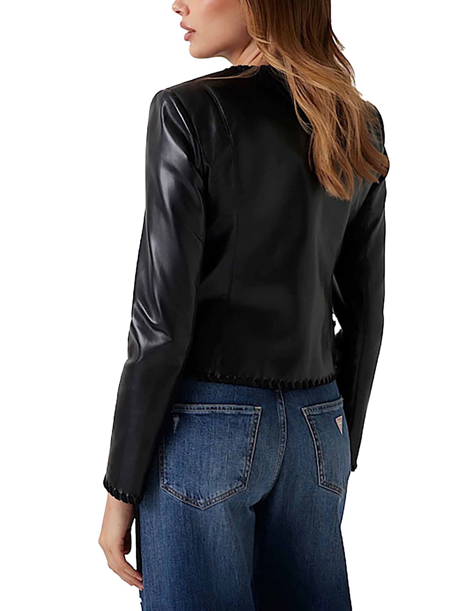 Giacca in ecopelle saffiano Guess donna Leontite embro stitch con laccetti e bottoni nero