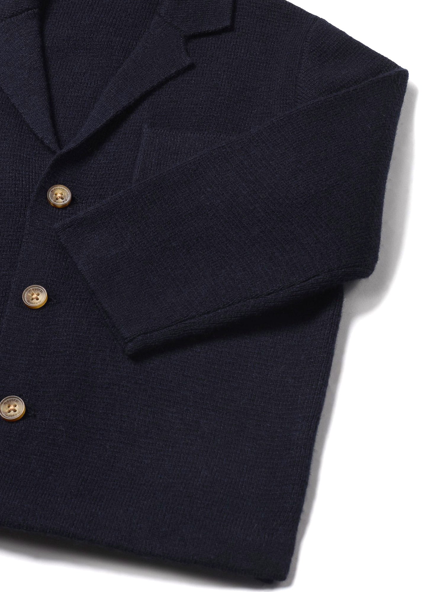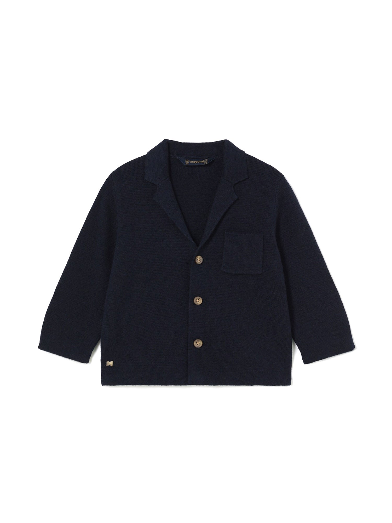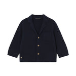 Blazer per neonati firmato Mayoral perfetto per aggiungere un tocco di eleganza e stile al guardaroba del tuo piccolo. Realizzato in un morbido tessuto blu scuro, è ideale per occasioni speciali e formali.