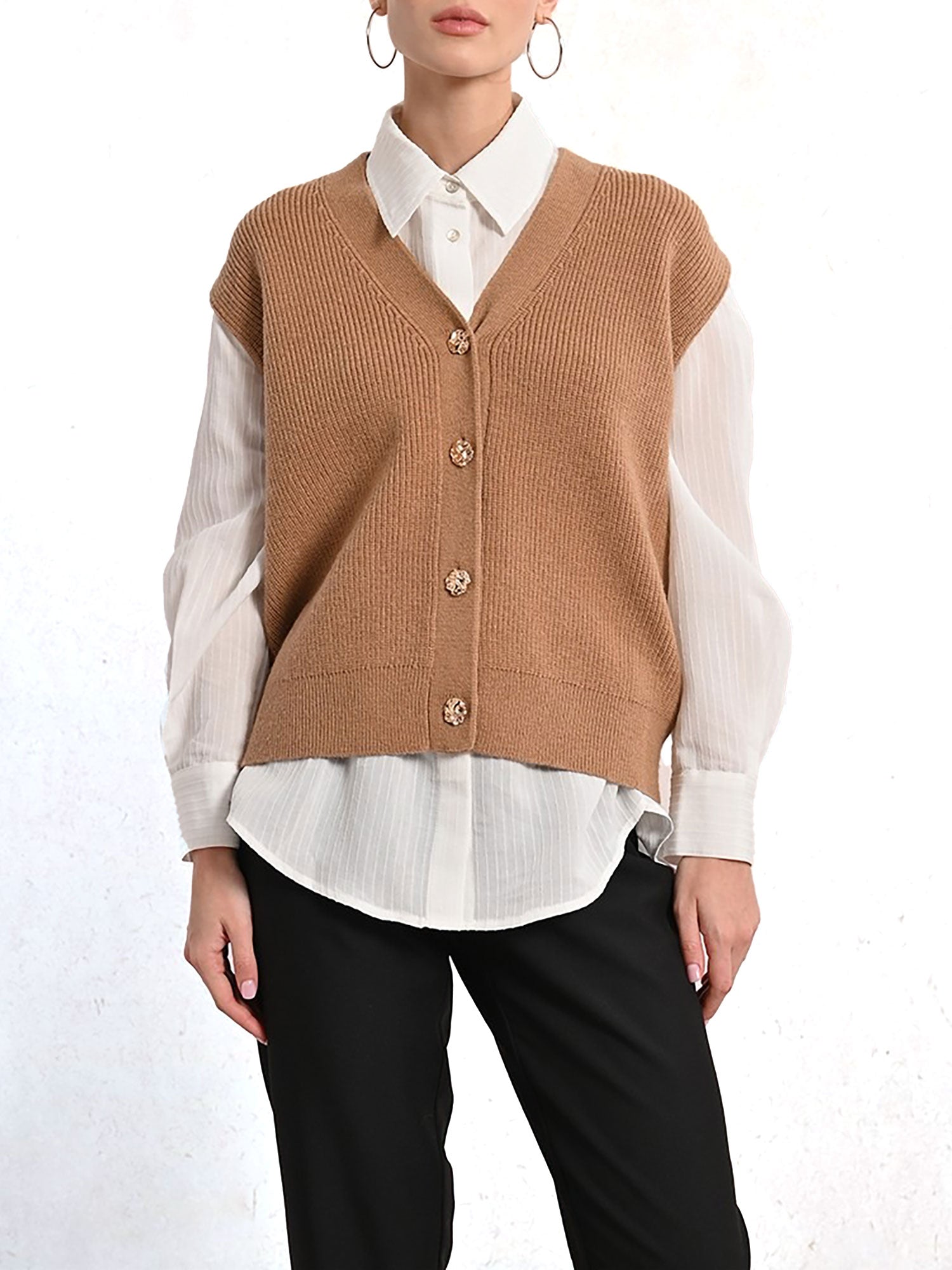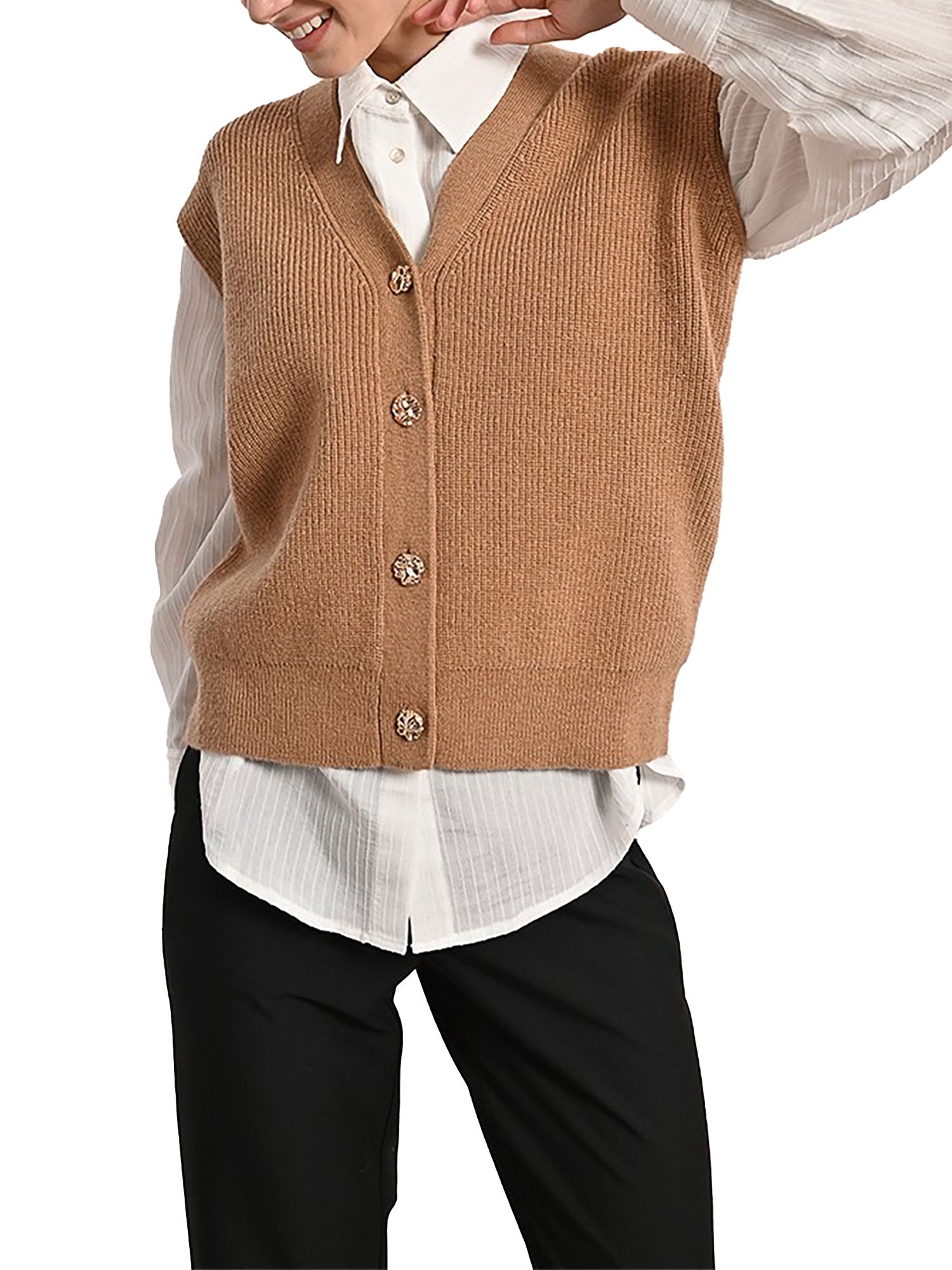 Gilet Molly Bracken donna con bottoni misto lana camel