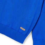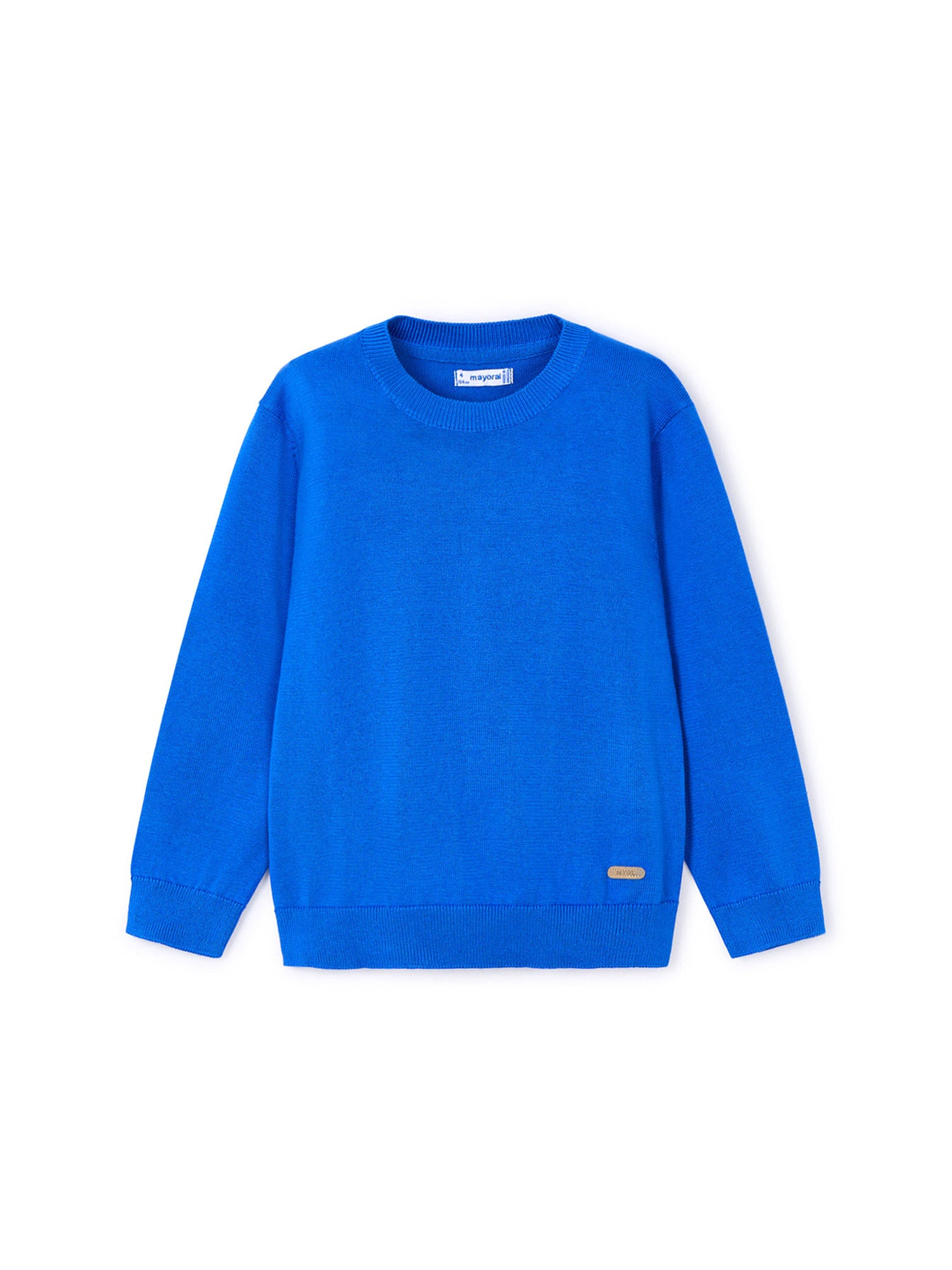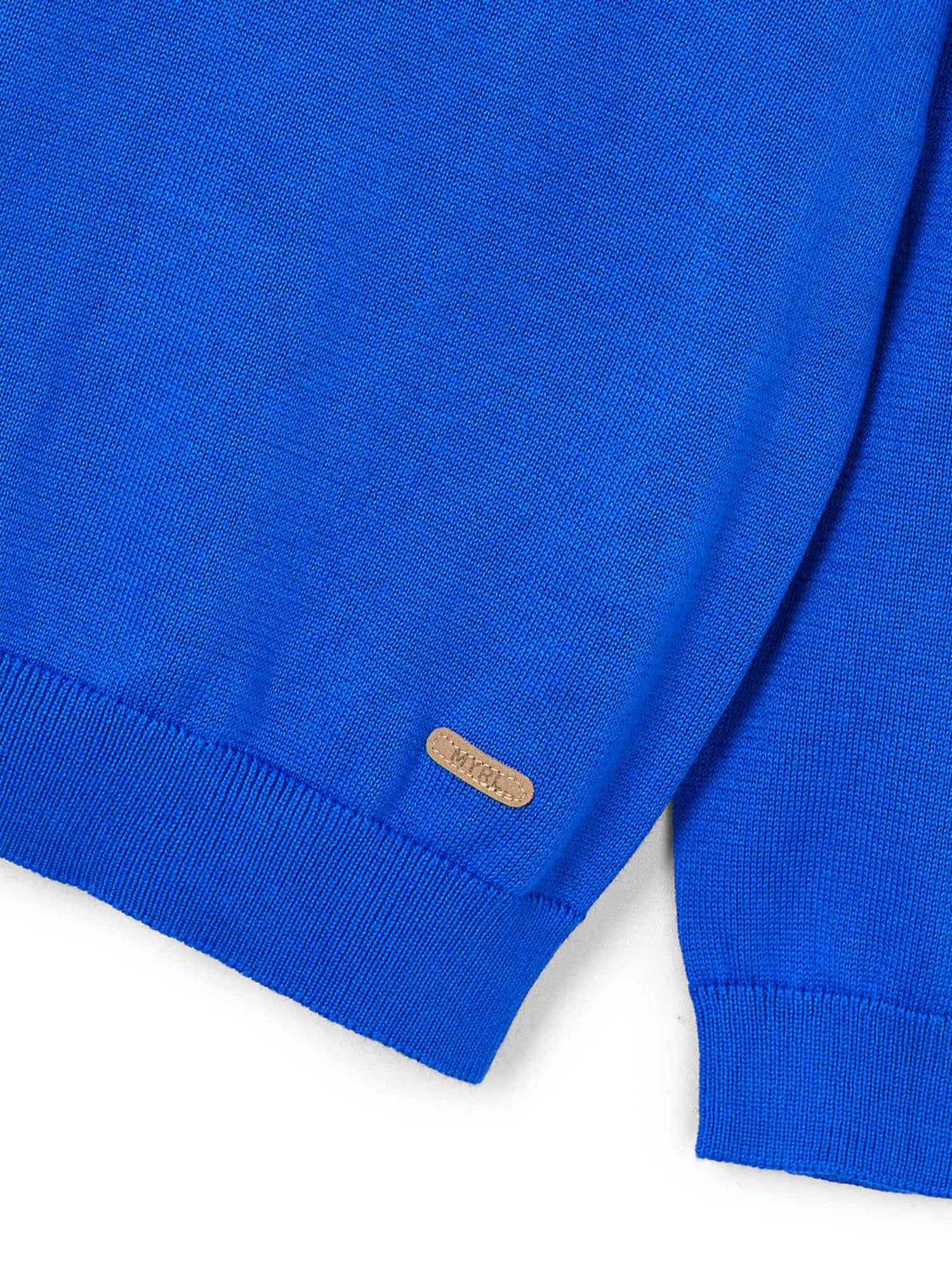 Maglione per bambino Mayoral caratterizzato da un vivace colore azzurro ceruleo, che aggiunge un tocco di allegria al guardaroba invernale. Realizzato in un tessuto morbido e caldo, è ideale per tenere al caldo durante i mesi più freddi, pur mantenendo uno stile casual e versatile. Sul lato inferiore sinistro è presente una piccola etichetta decorativa che aggiunge un dettaglio discreto al look.