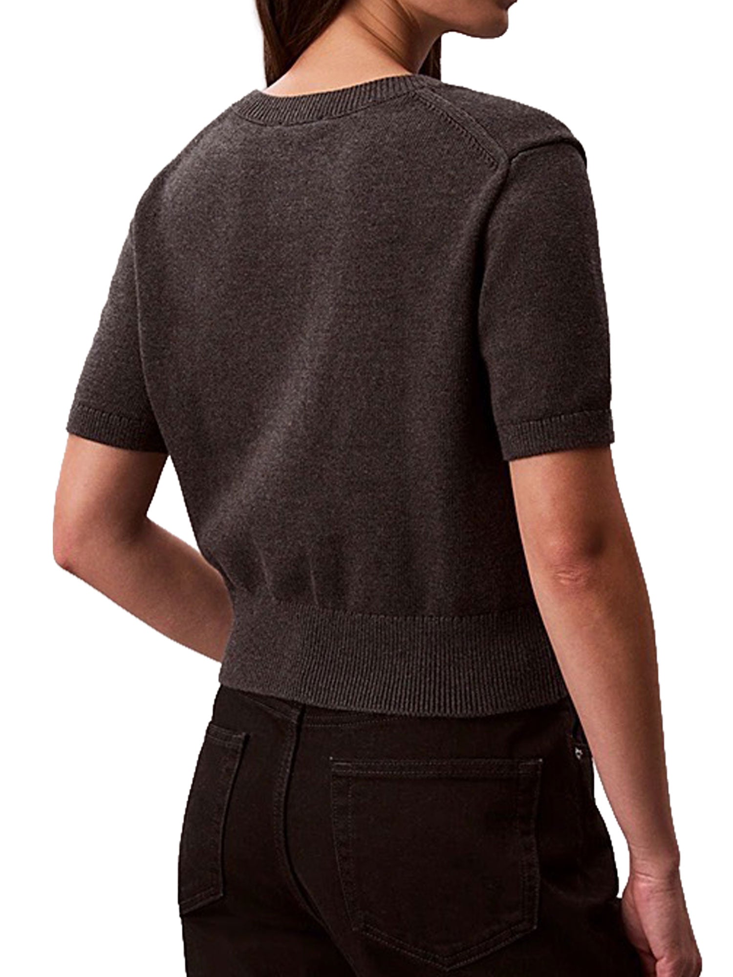 Maglia girocollo Calvin Klein Donna, modello a manica corta con logo monogram Calvin Klein ricamato.