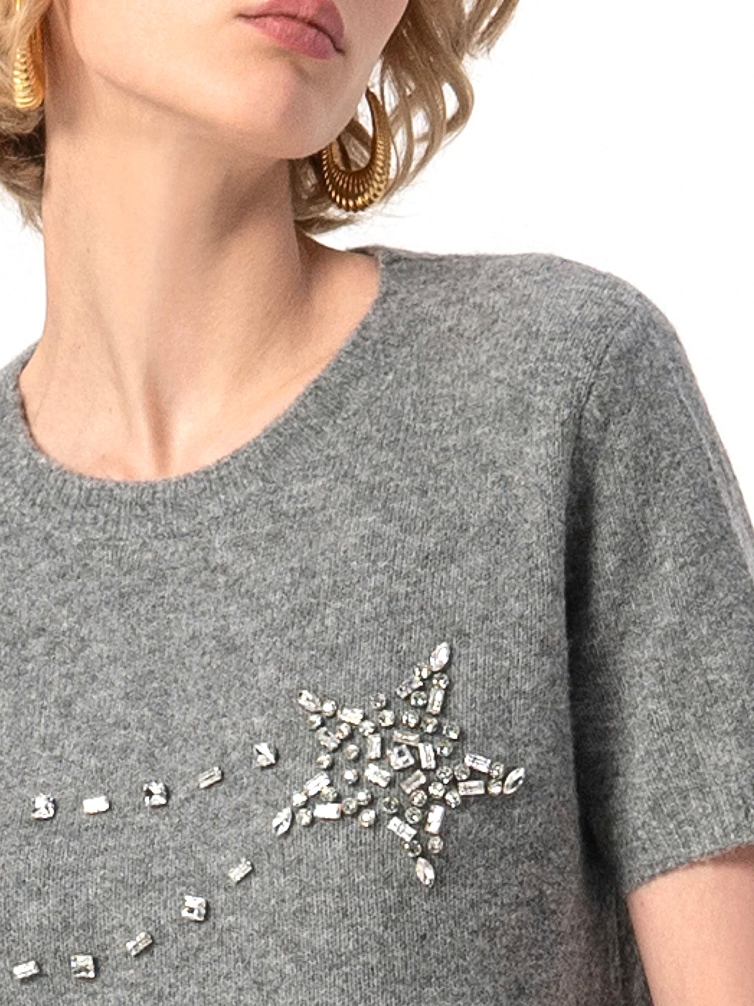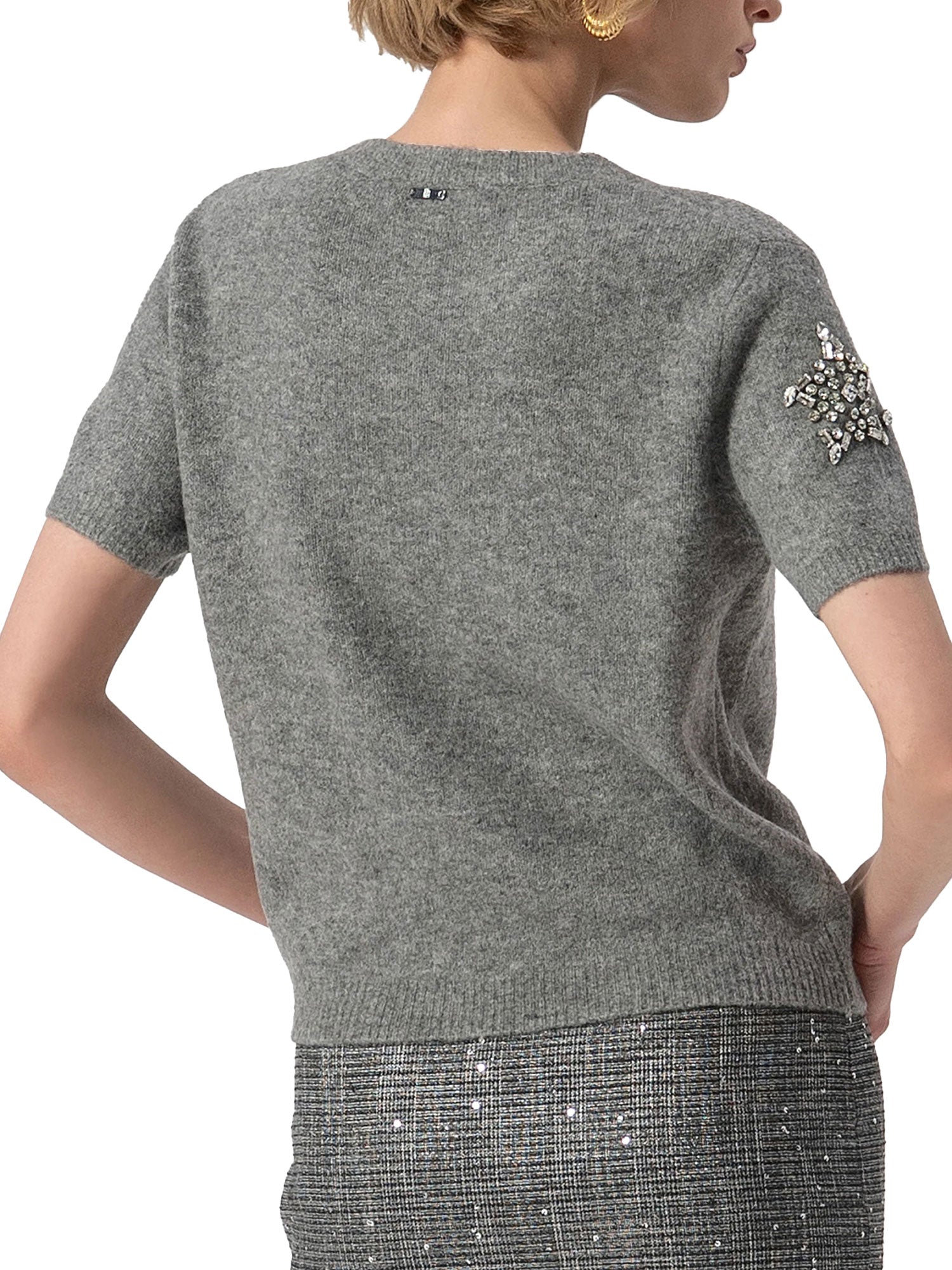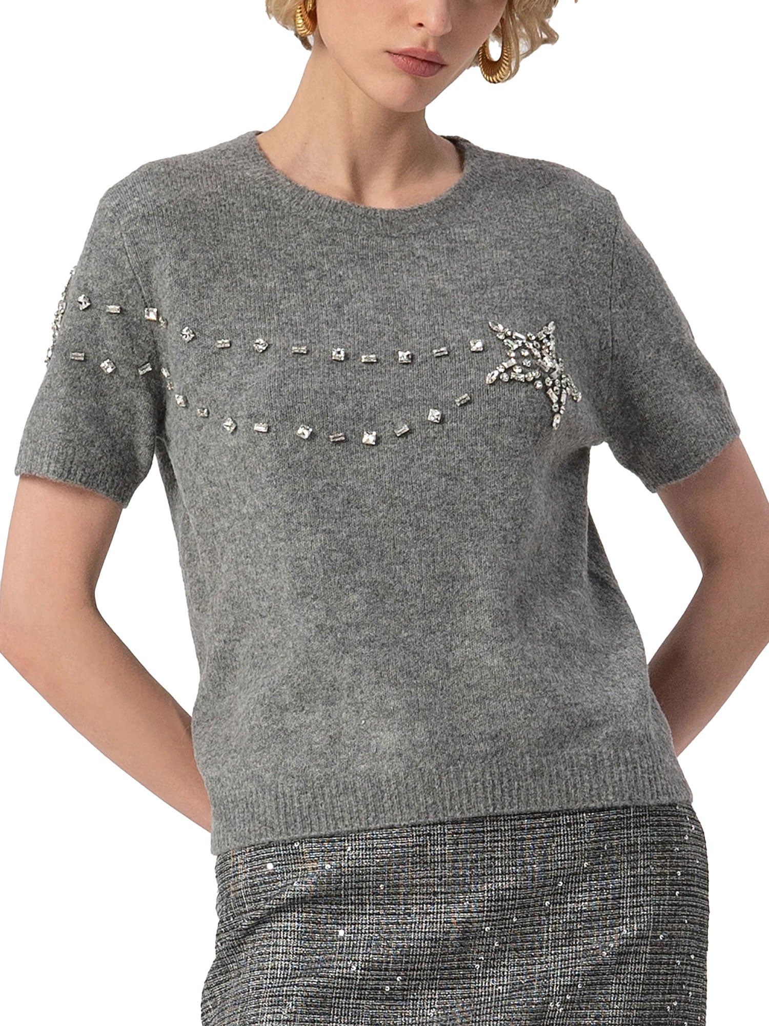 Girocollo Fracomina donna manica corta crop applicazione strass grigio