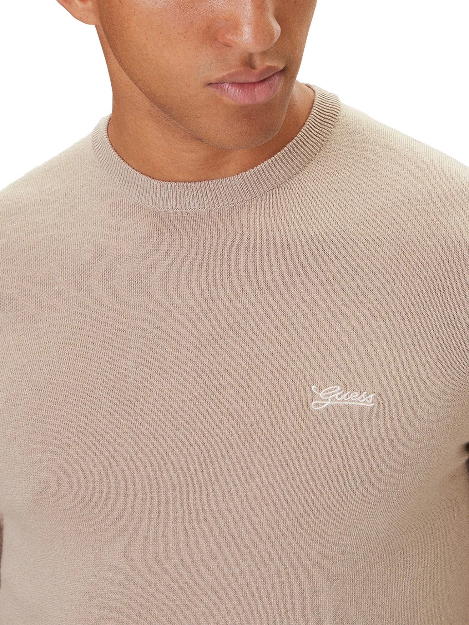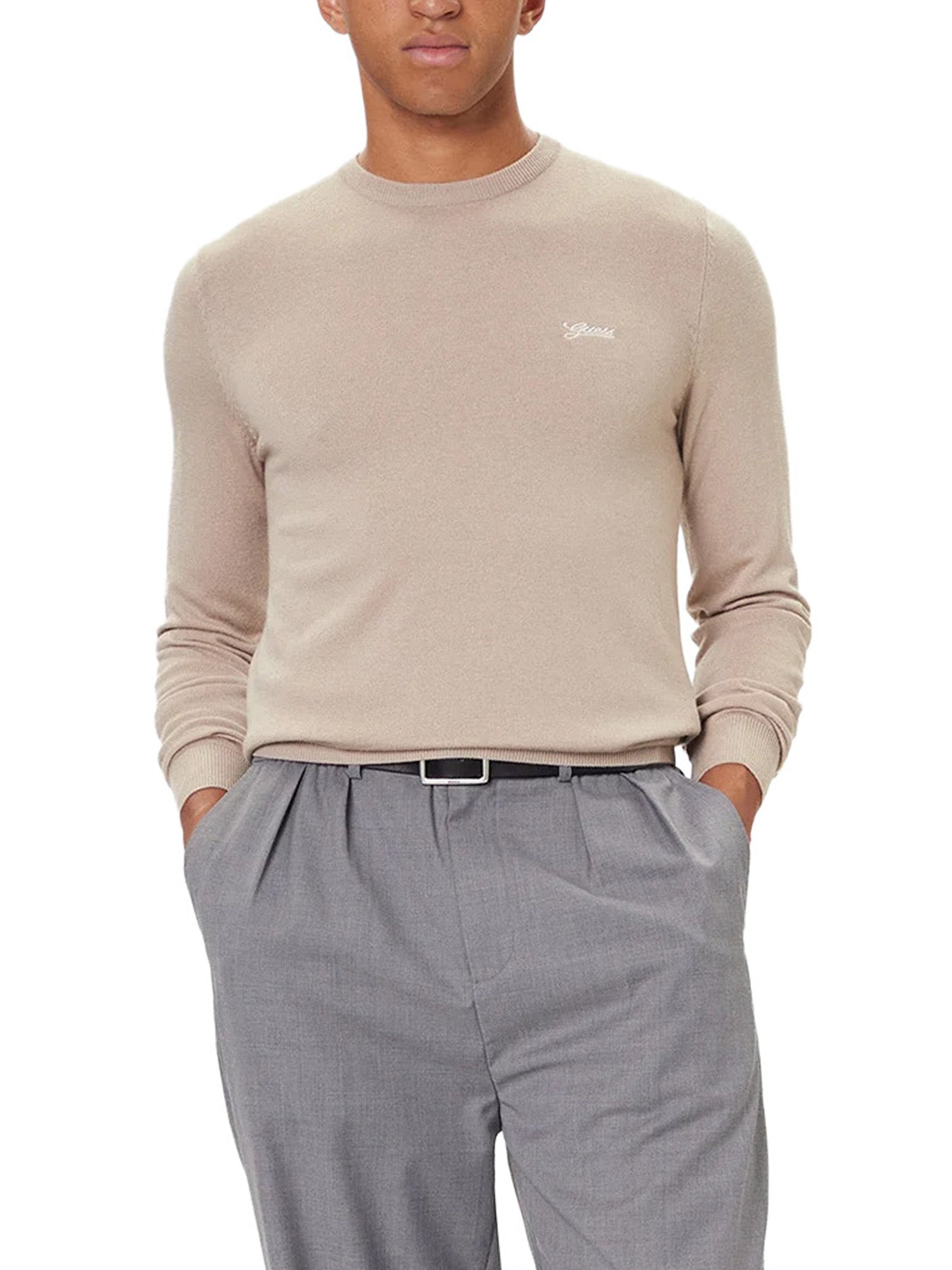 Maglione girocollo Guess uomo logo su petto ml basic daniel beige