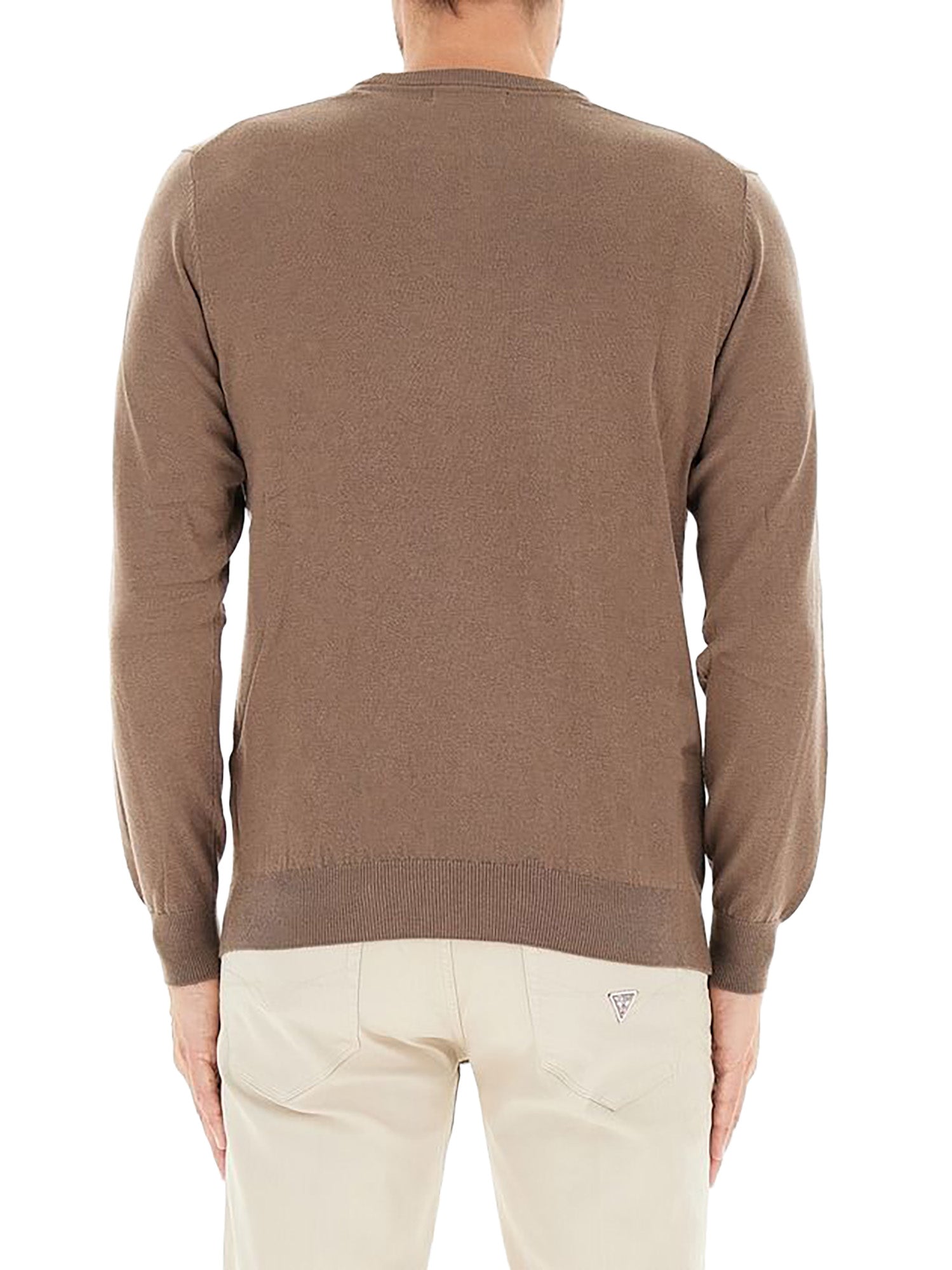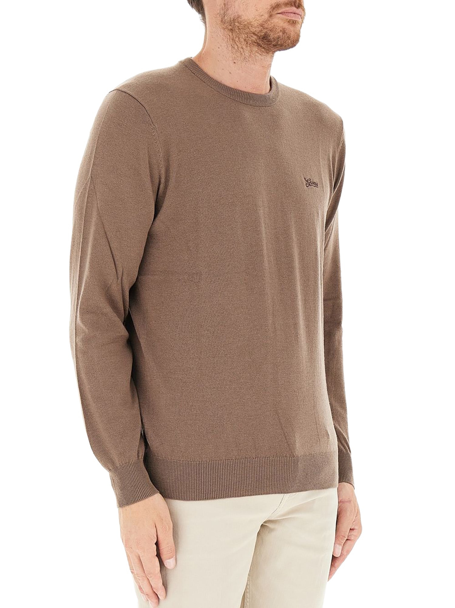 Maglione girocollo Guess uomo logo su petto ml basic daniel marrone