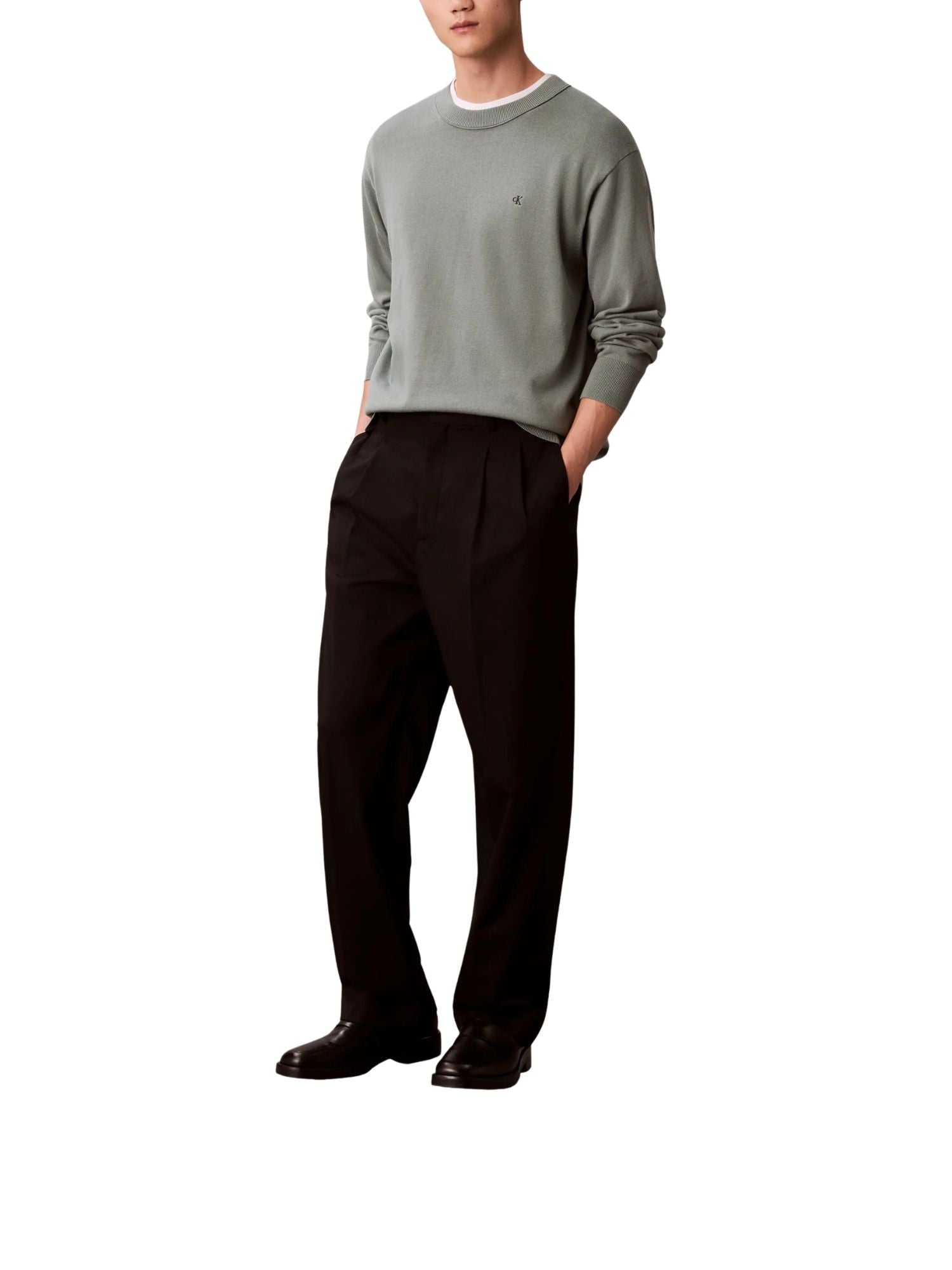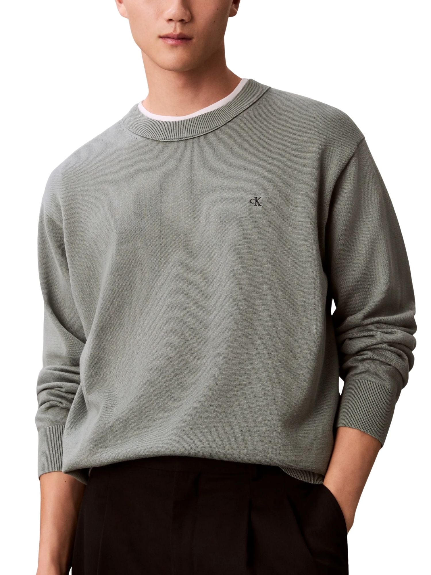 Maglia a girocollo con maniche lunghe Calvin Klein Jeans modello cotton verde