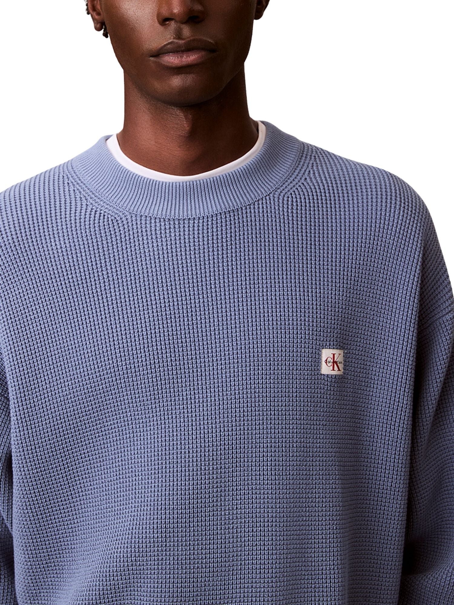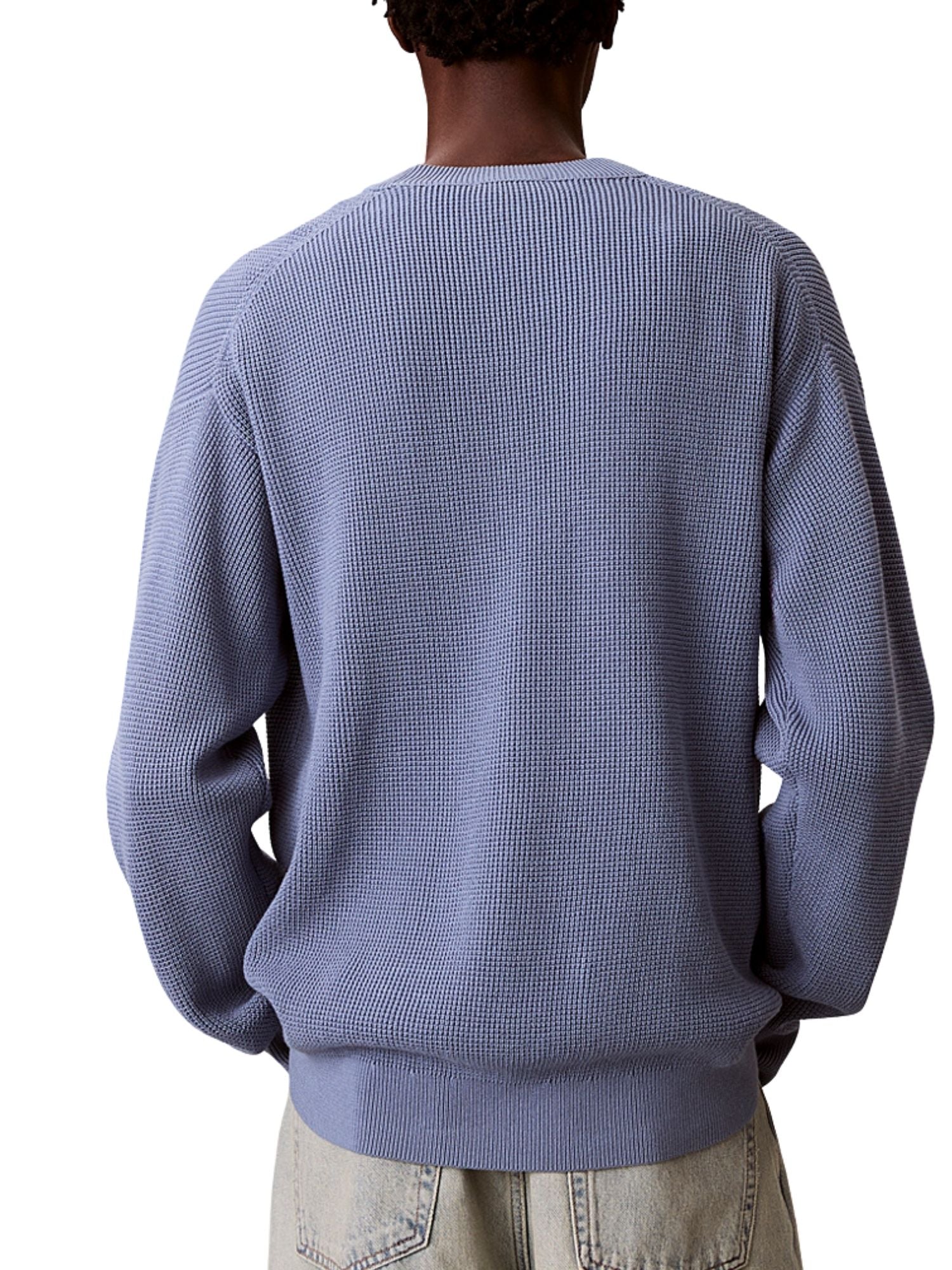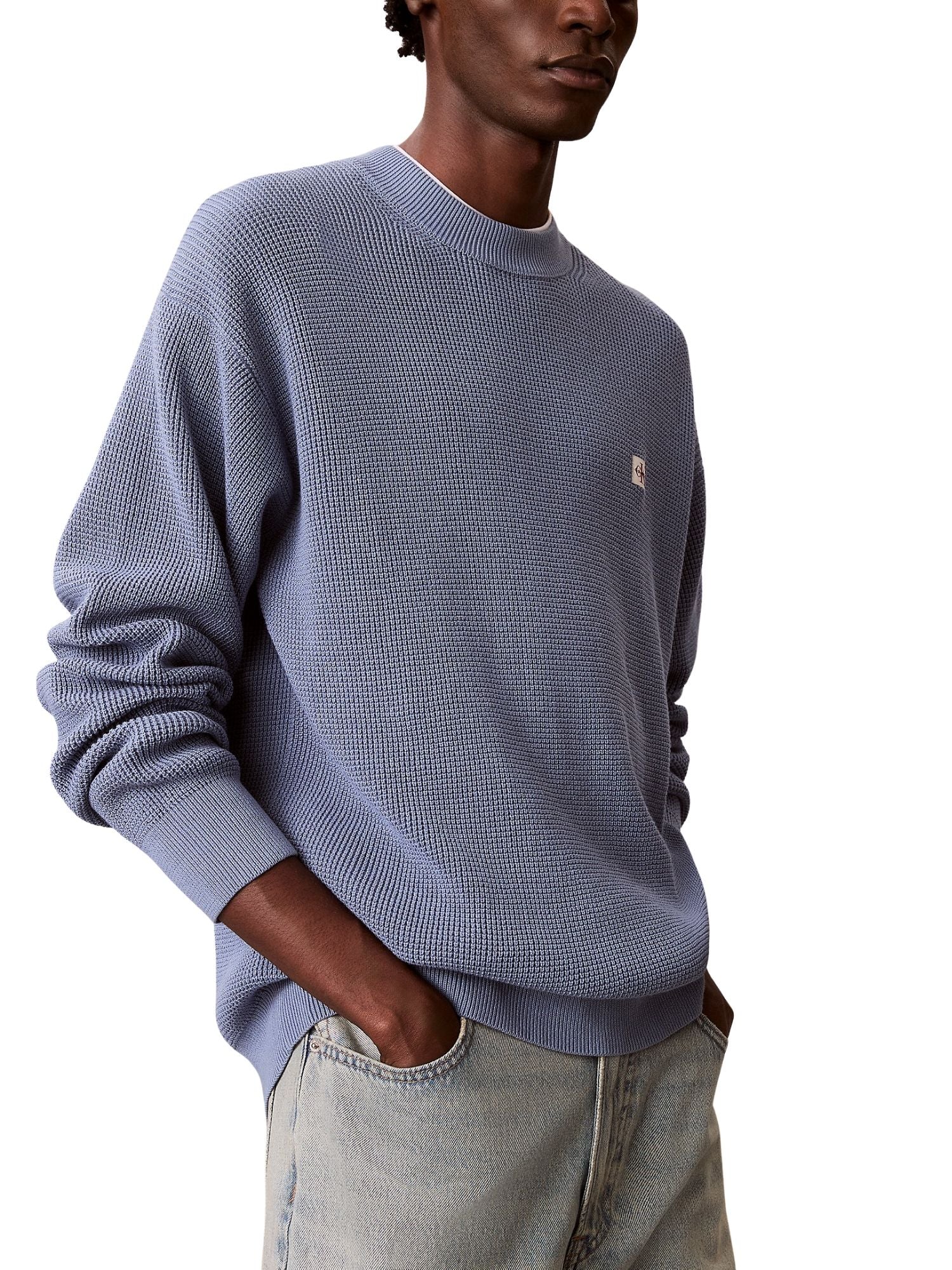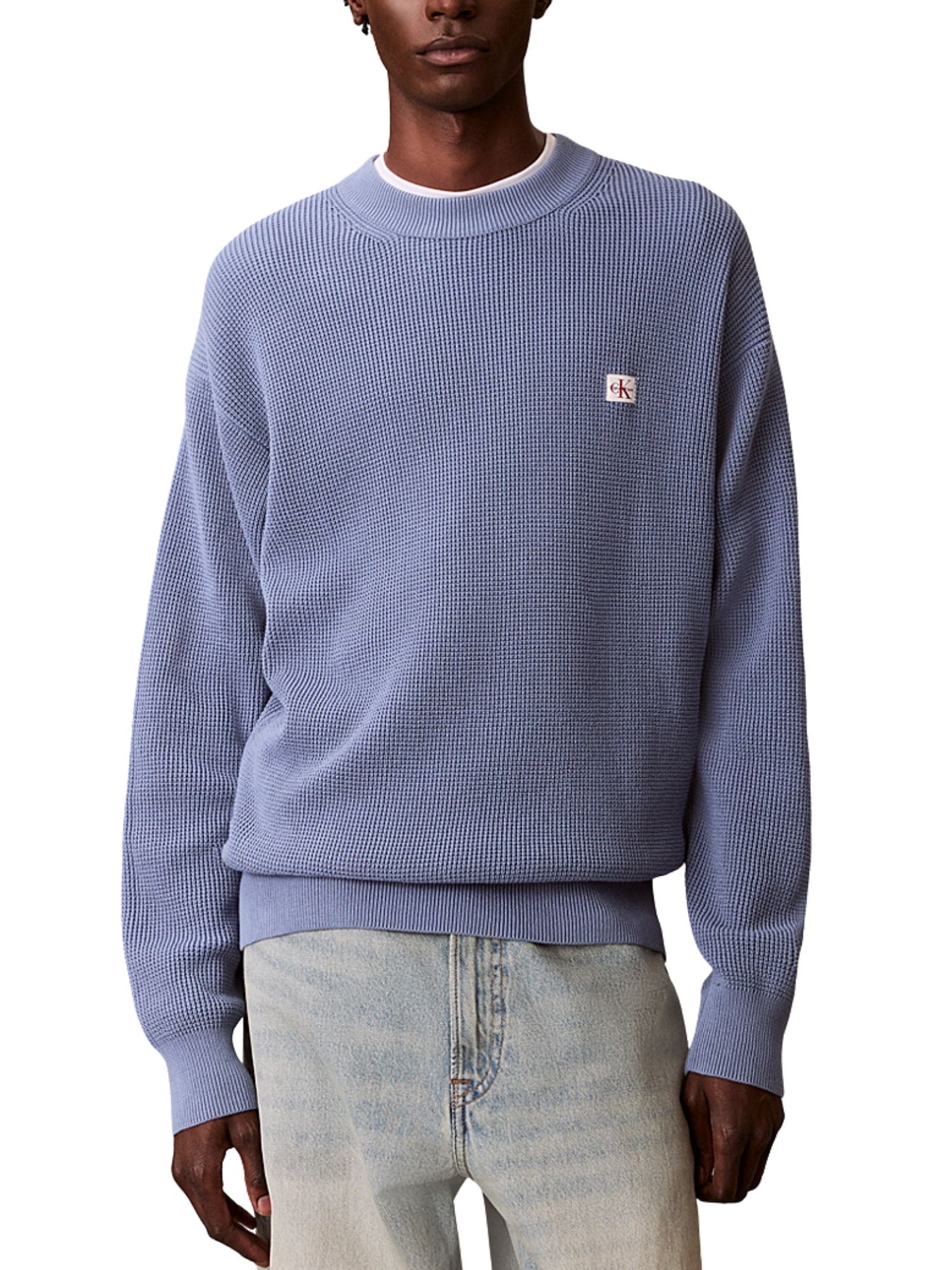 Maglia a girocollo con maniche lunghe Calvin Klein Jeans modello cotton waffle celeste