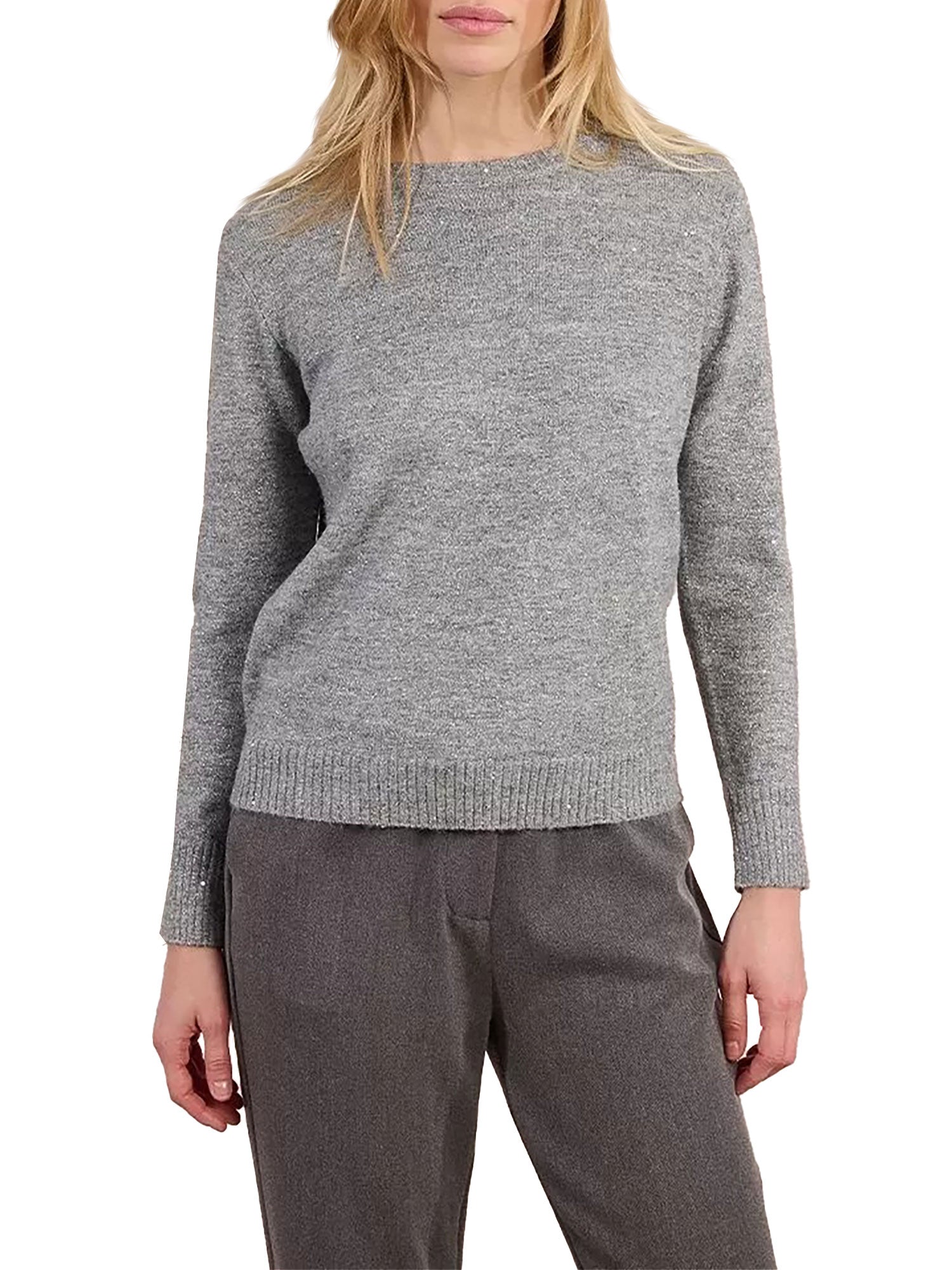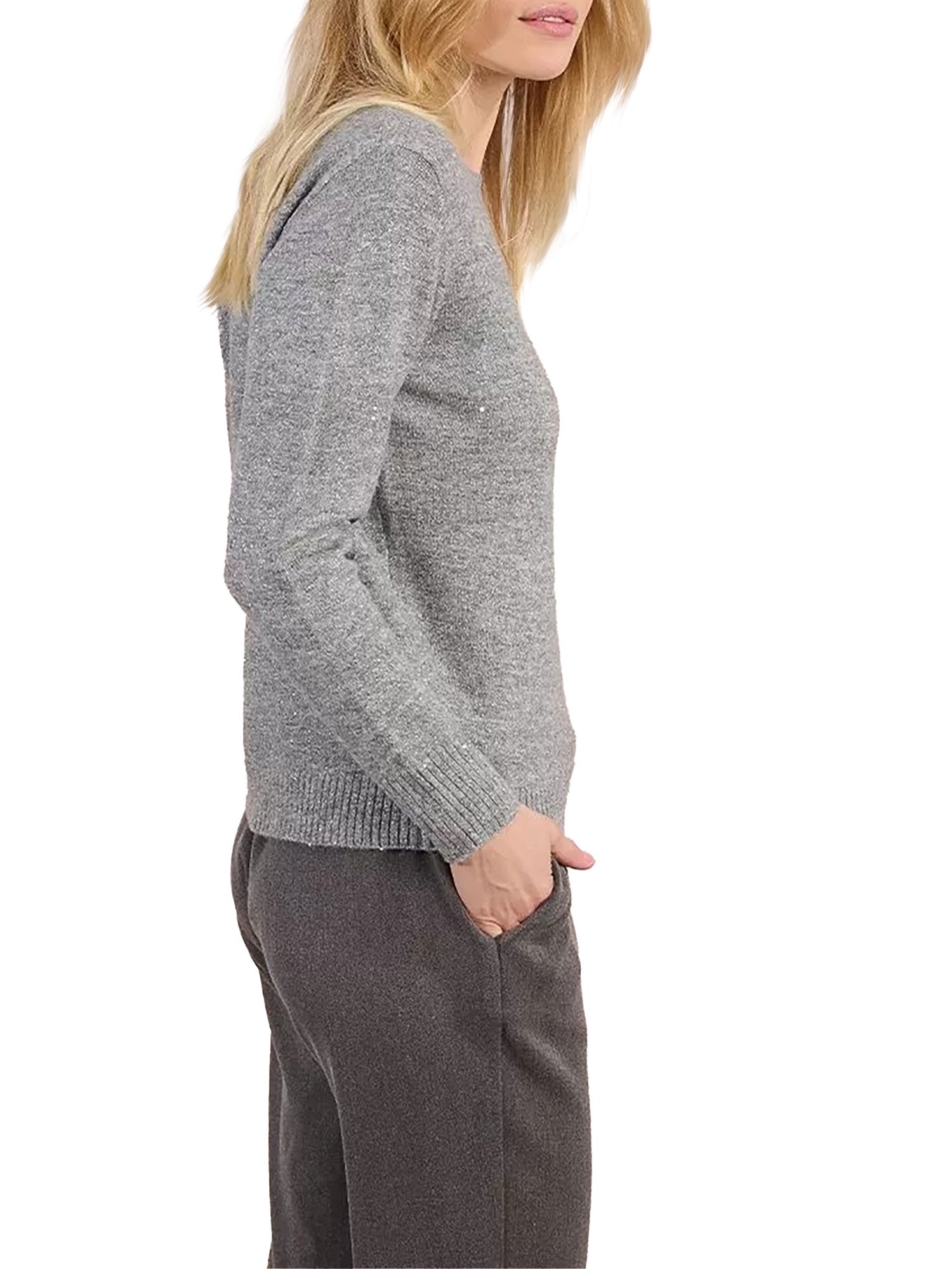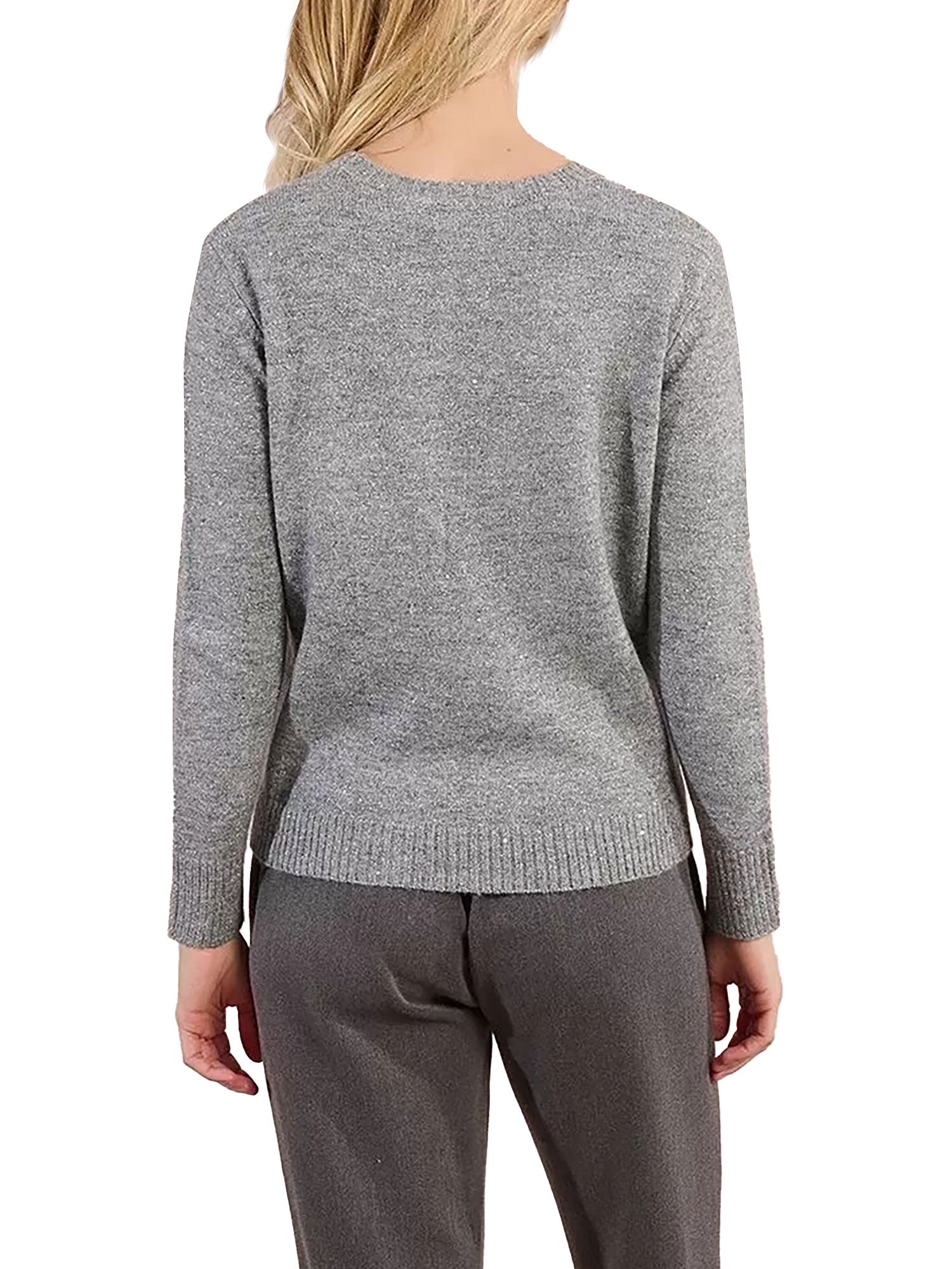 Girocollo Molly Bracken donna manica lunga con inserti paillettes grigio