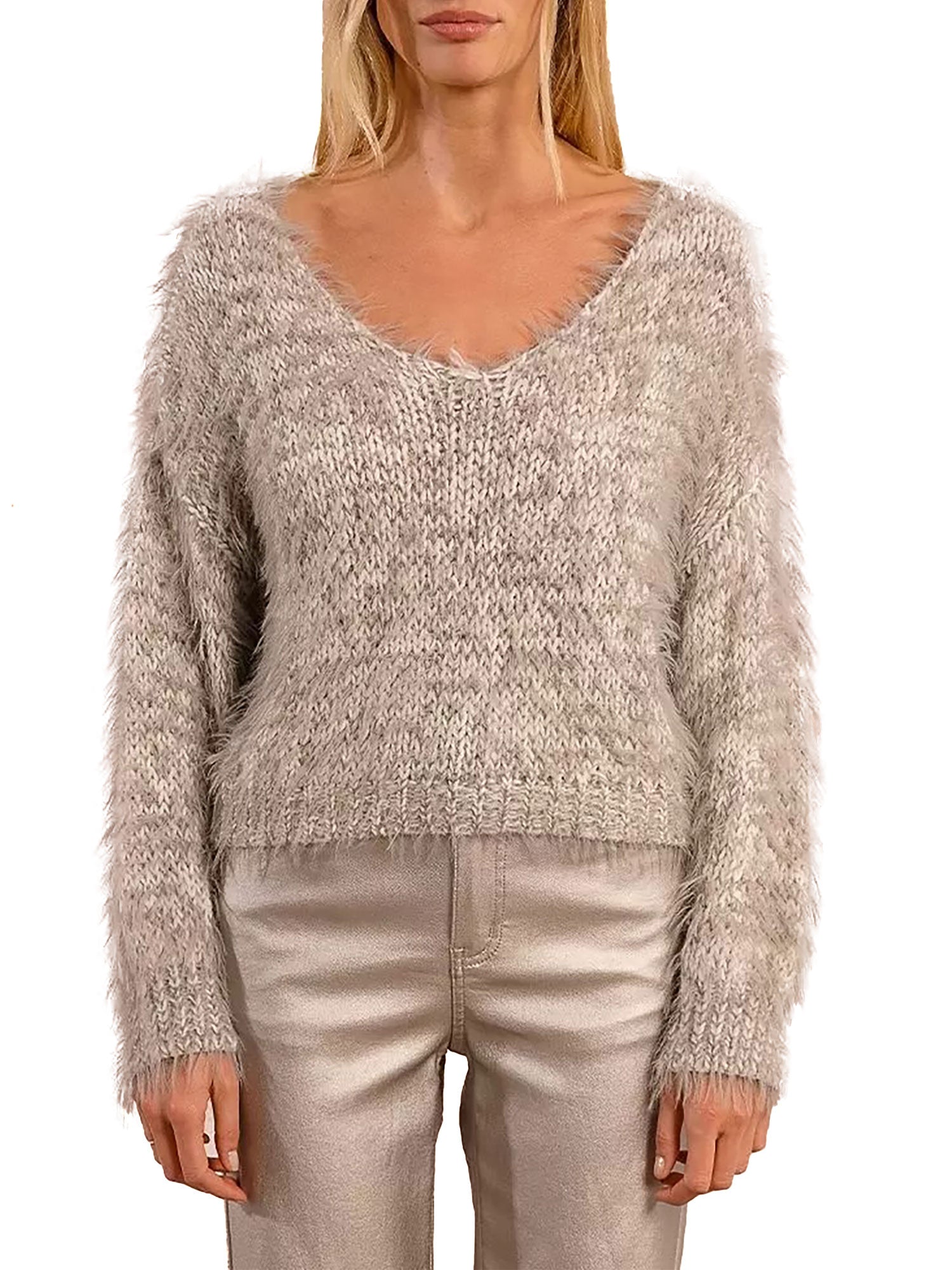 Girocollo Molly Bracken donna manica lunga knitted grigio