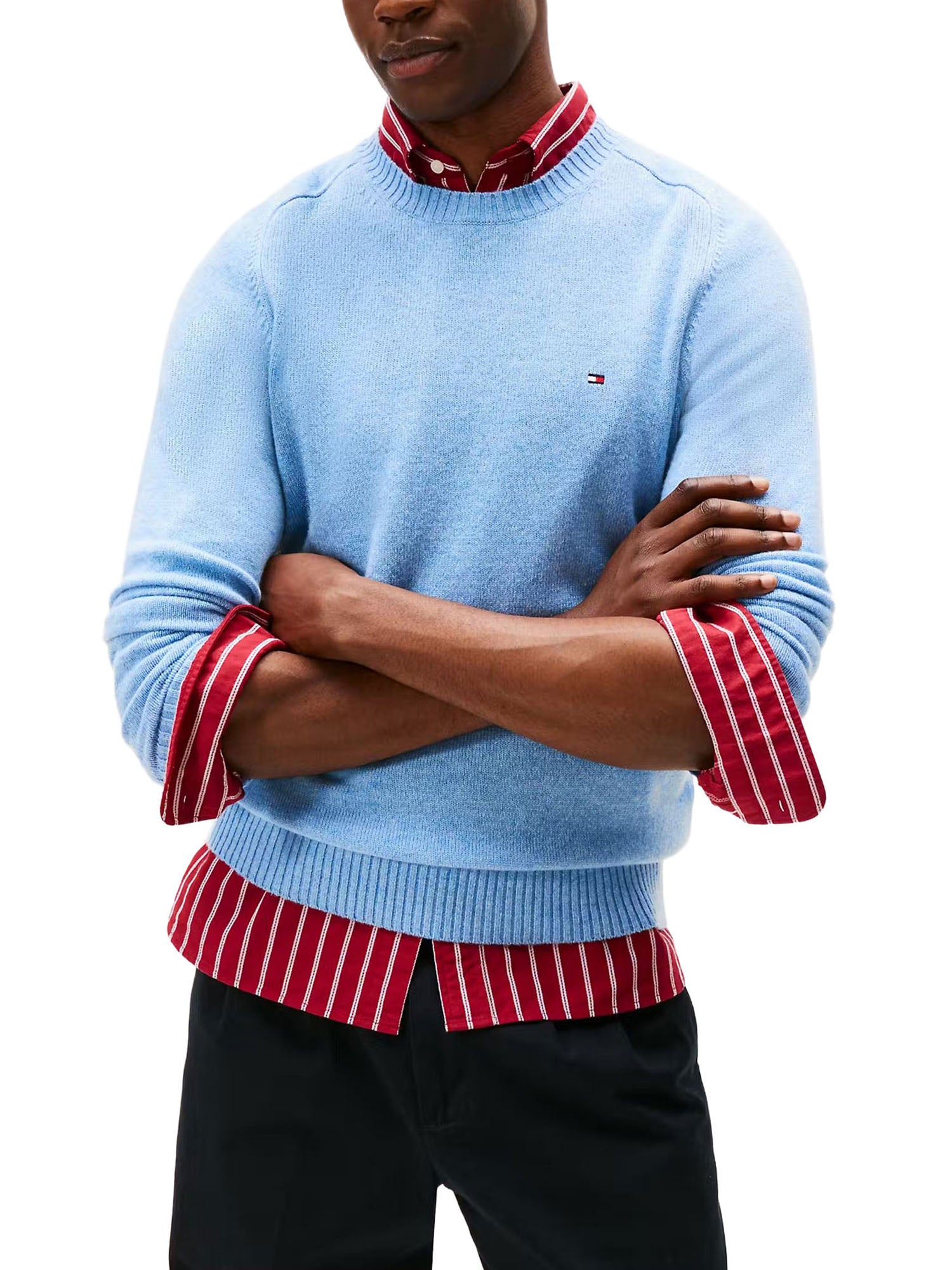 Maglione girocollo Tommy Hilfiger uomo in lambswool celeste