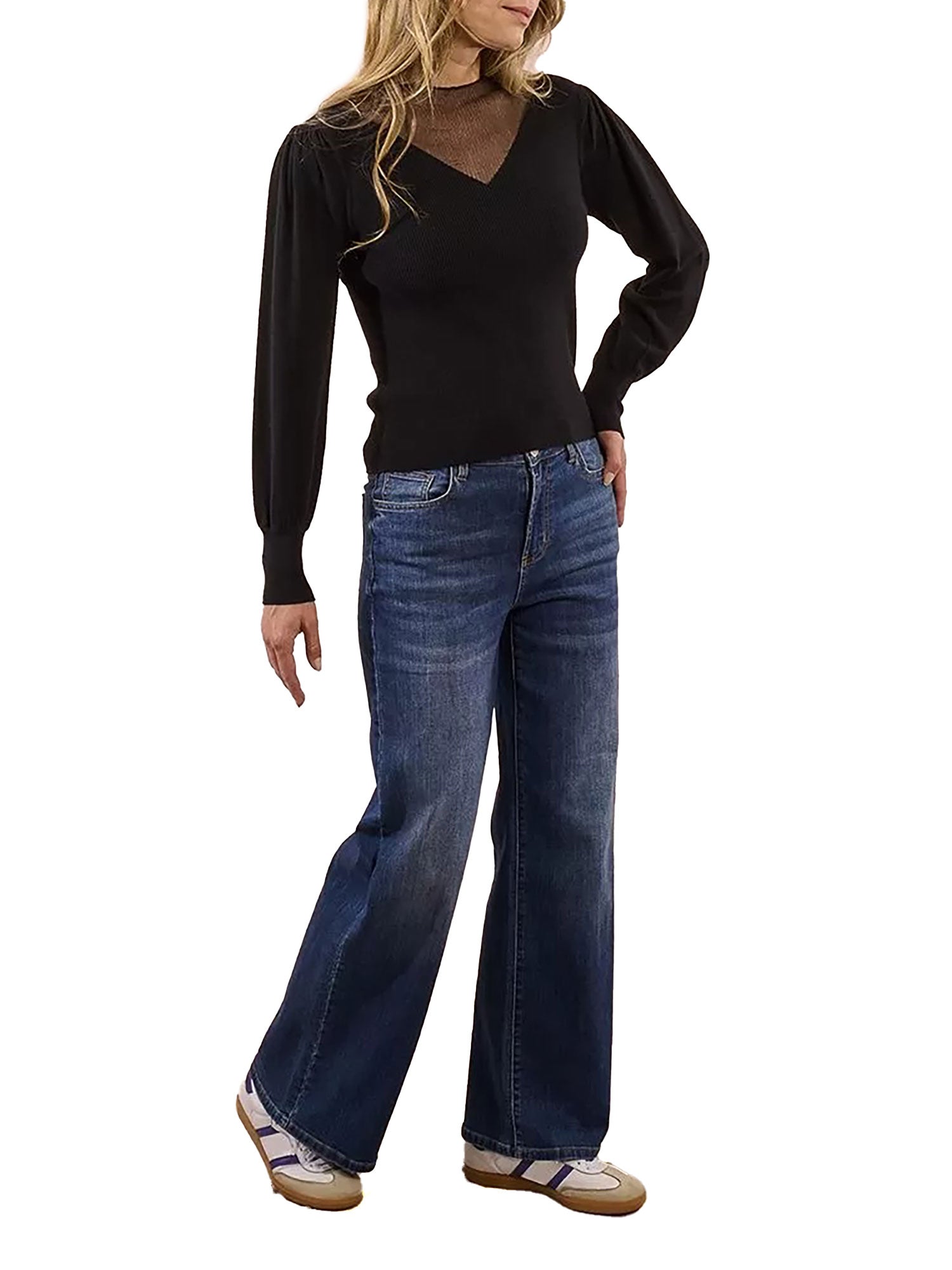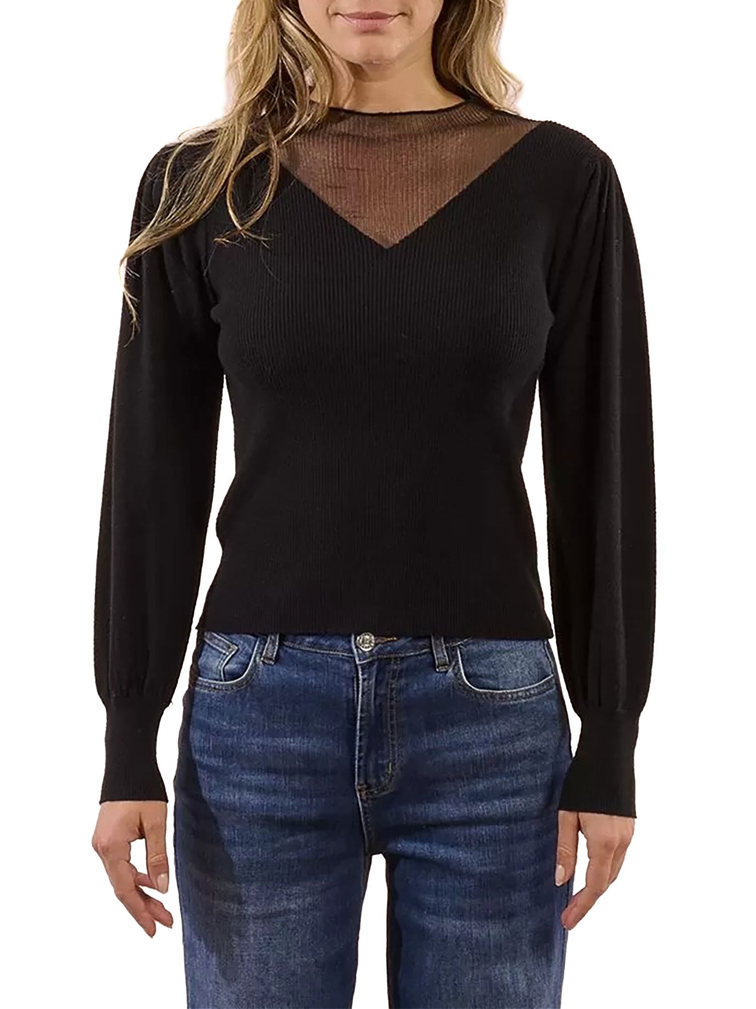 Girocollo Molly Bracken donna manica lunga manica a palloncino nero