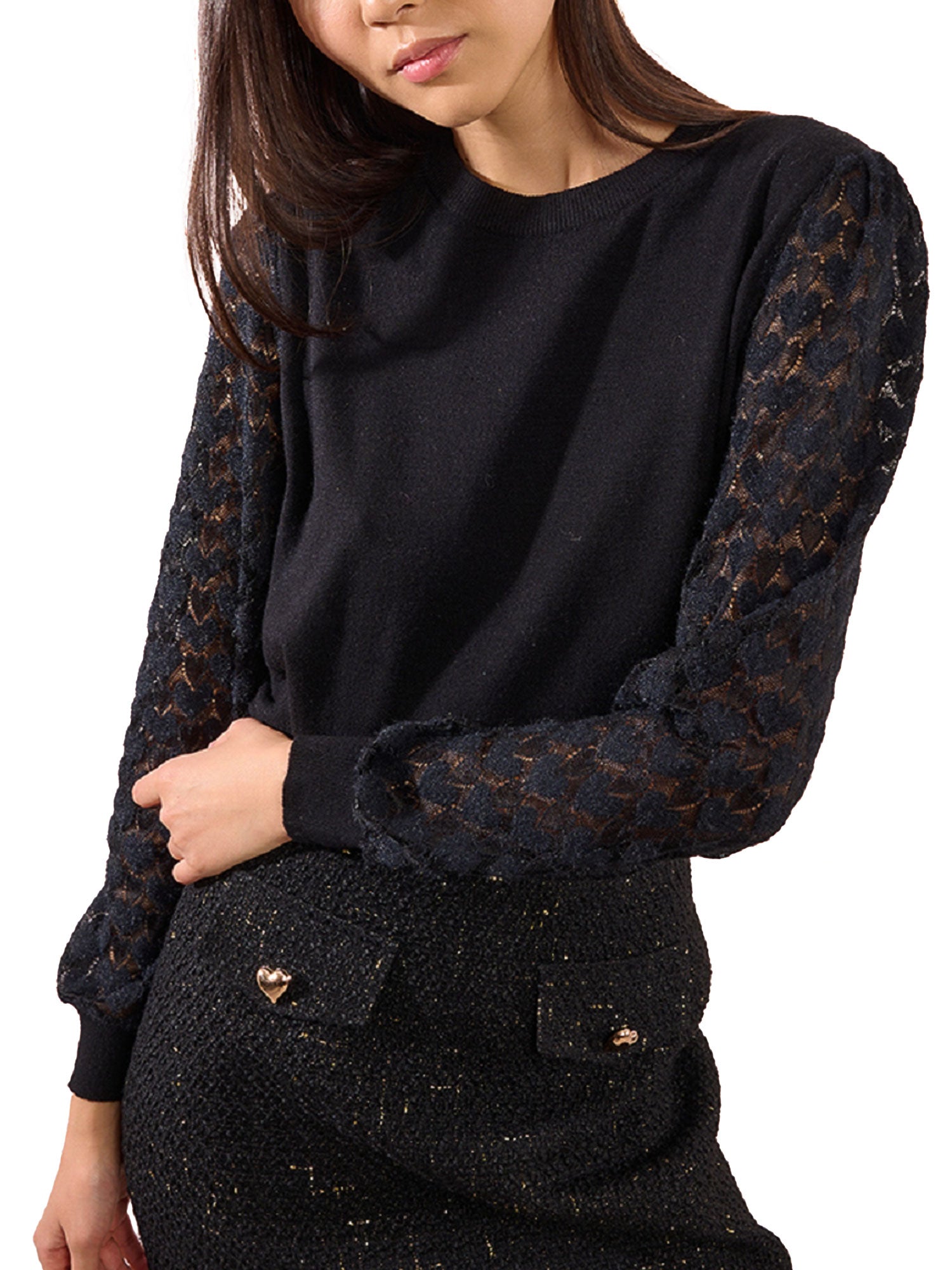 Girocollo Molly Bracken donna manica lunga ricamo nero