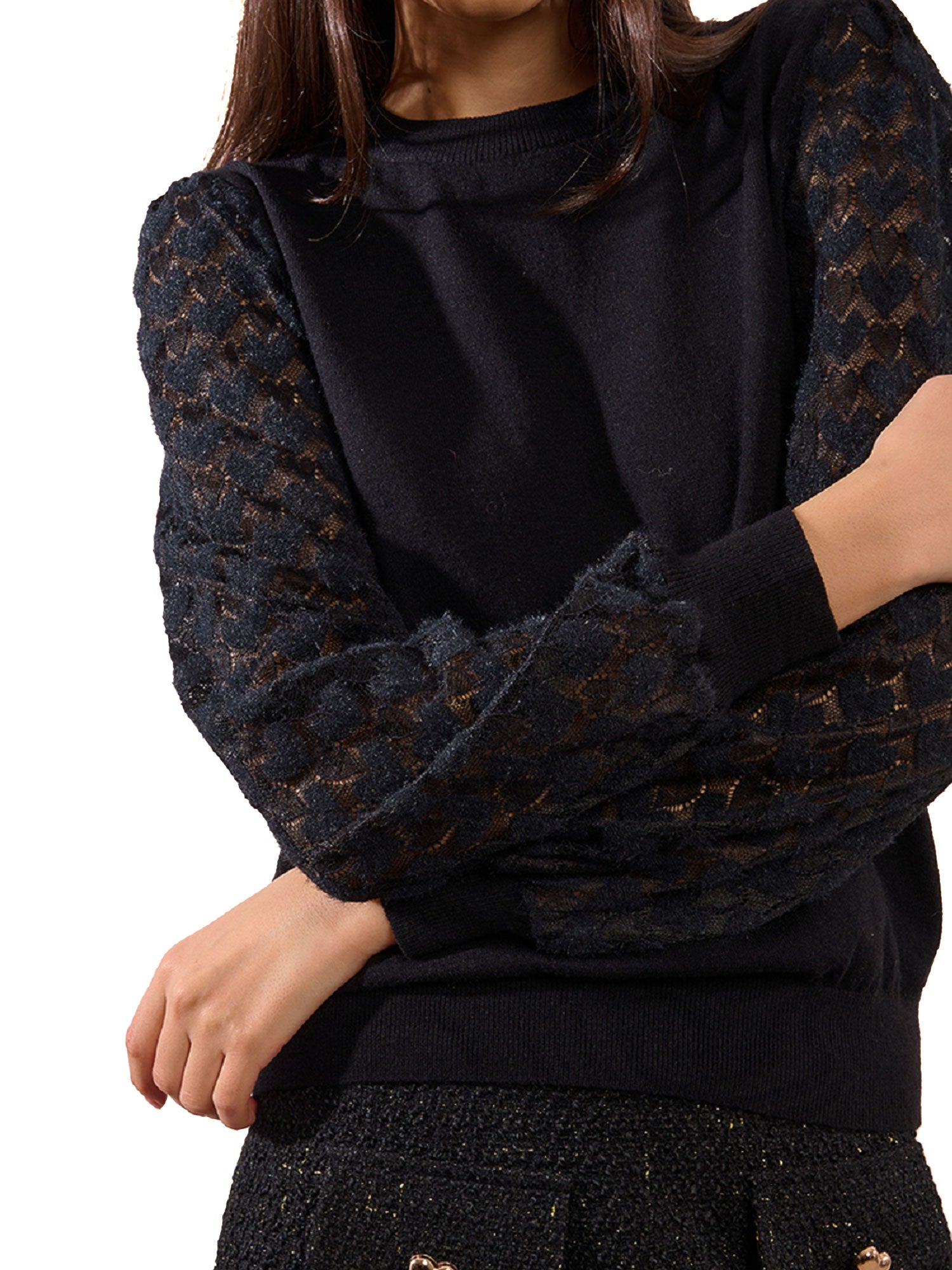 - Maniche lunghe in pizzo semitrasparente con motivo geometrico