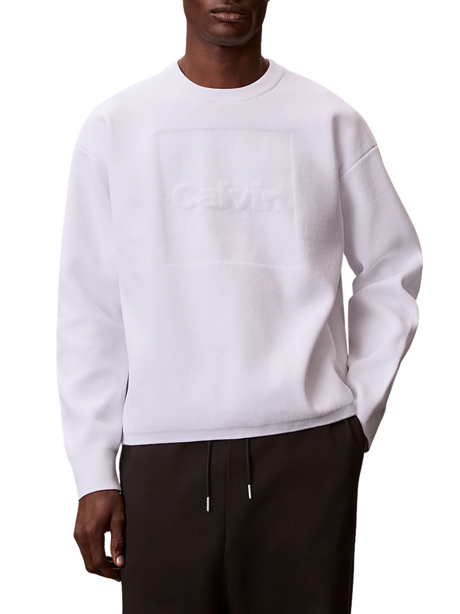 Maglia a girocollo con maniche lunghe Calvin Klein Jeans modello cotton modern 3d chest logo bianco