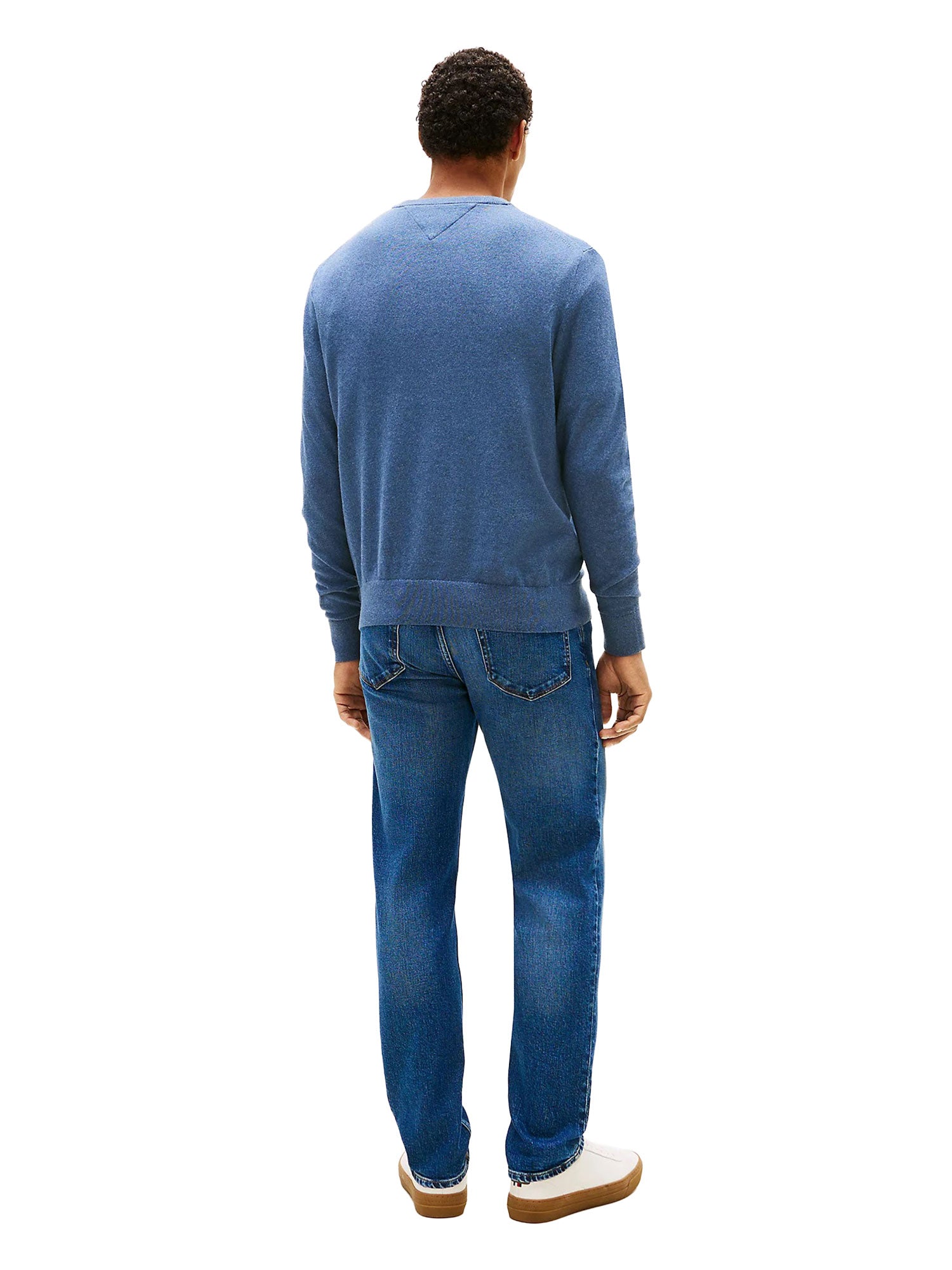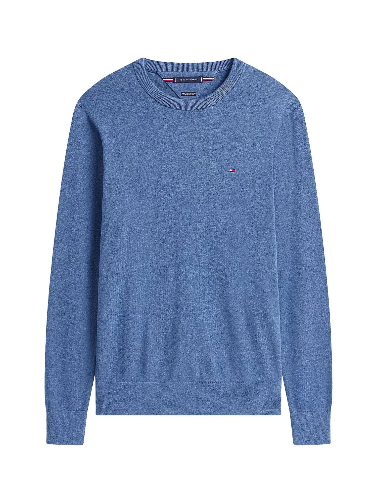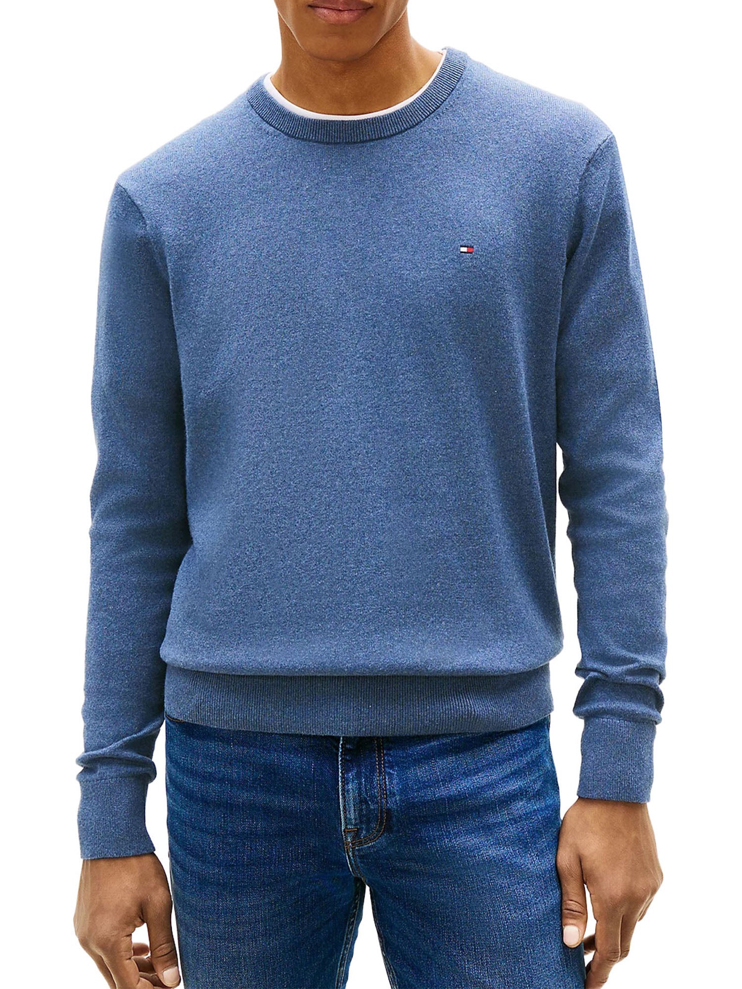 Maglione girocollo Tommy Hilfiger pima cotton cashmere semolice con logo sul petto celeste