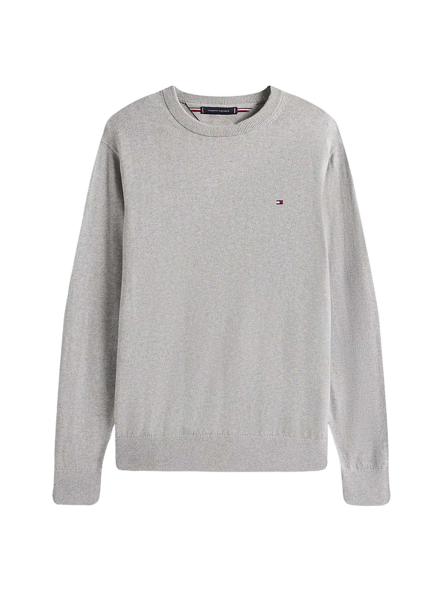 Maglione girocollo Tommy Hilfiger pima cotton cashmere semolice con logo sul petto grigio
