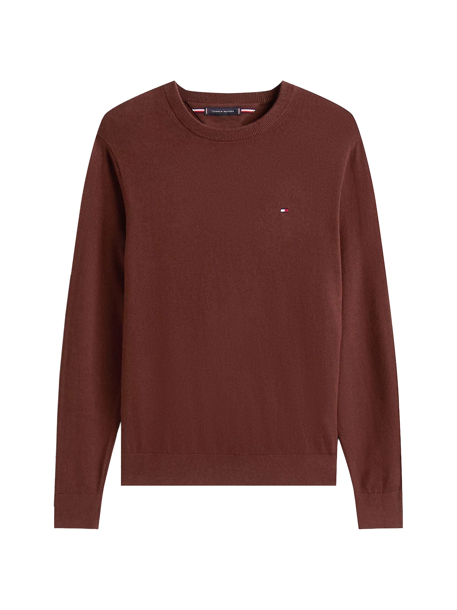 Home > > Maglione girocollo Tommy Hilfiger pima cotton cashmere semolice con logo sul petto marrone